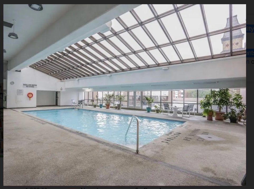 • Building amenities include a renovated indoor pool, sauna, and fitness room.