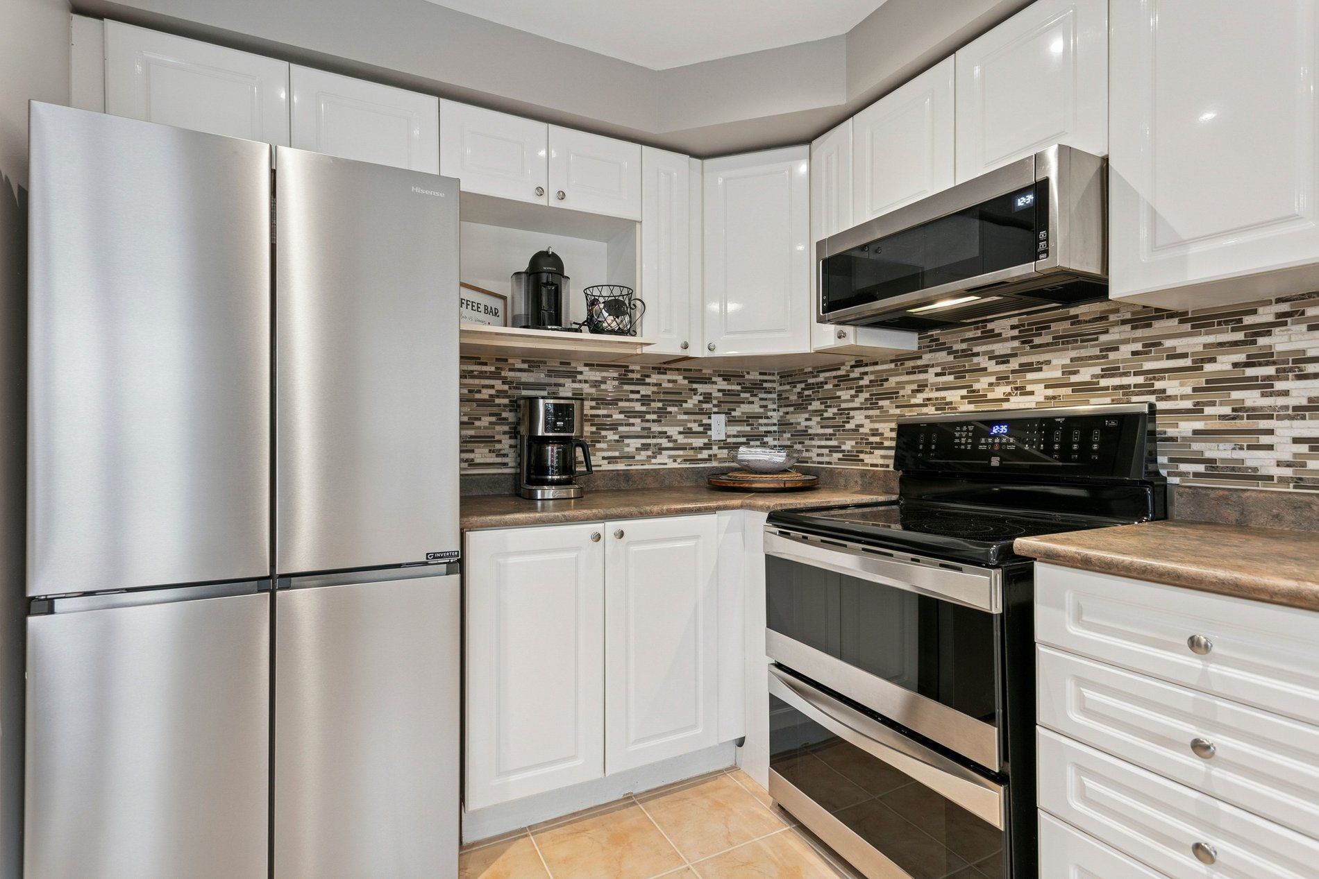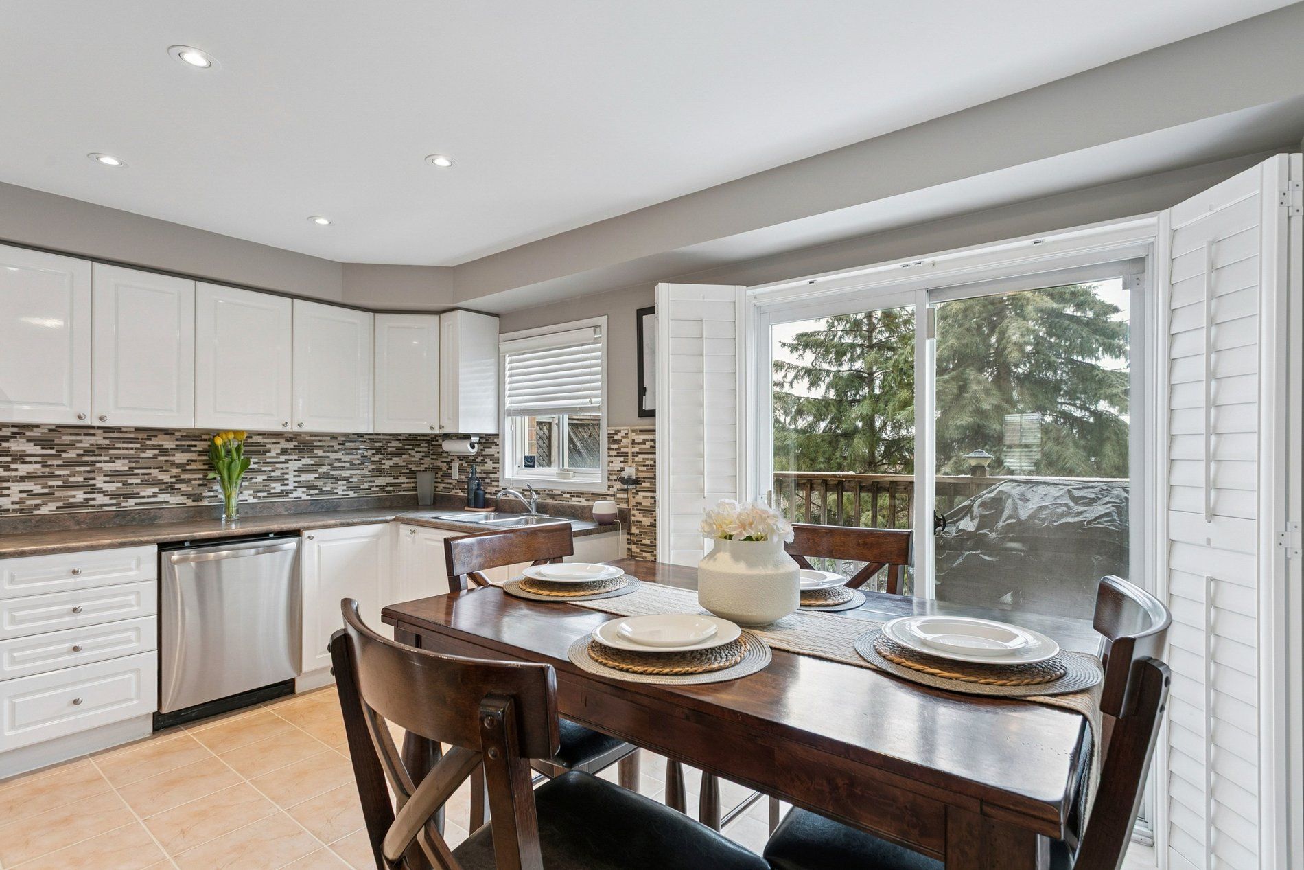 Welcome to this beautifully maintained freehold townhome in oakville's desirable wedgewood creek neighbourhood, offering approximately 1,800 sq ft of comfortable, well-designed living space. The main floor features inviting living and dining areas with upgraded flooring and stylish california shutters. The bright eat-in kitchen overlooks the ravine and opens to a private deck-perfect for morning coffee or relaxed outdoor dining. Upstairs, three generous bedrooms are complemented by updated bathrooms (2022) and newer carpeting (2018) for added comfort. The lower level provides interior garage access, excellent storage, and flexible space ideal for a home office or children's play area. Major updates include a new roof (2019) and furnace and central air (2020), ensuring low-maintenance living. Backing onto a tranquil ravine and set on a quiet, friendly street, this move-in-ready home is close to parks, trails, top-rated schools, shopping, transit, and major routes including dundas st e, trafalgar rd, and hwy 403. Enjoy freehold living in one of oakville's most convenient and sought-after communities.