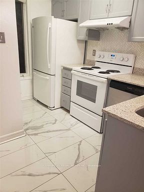 • Modern kitchen with quartz countertops and easy-to-clean laminate flooring.