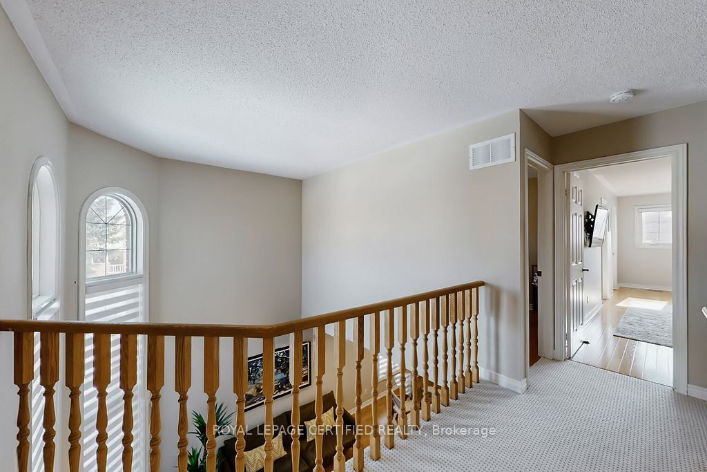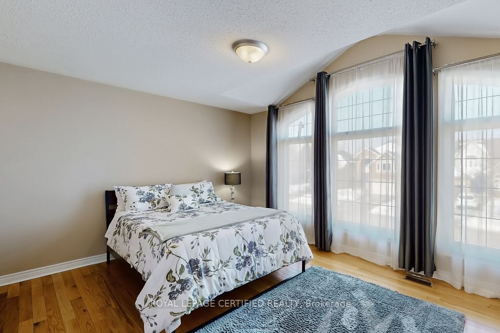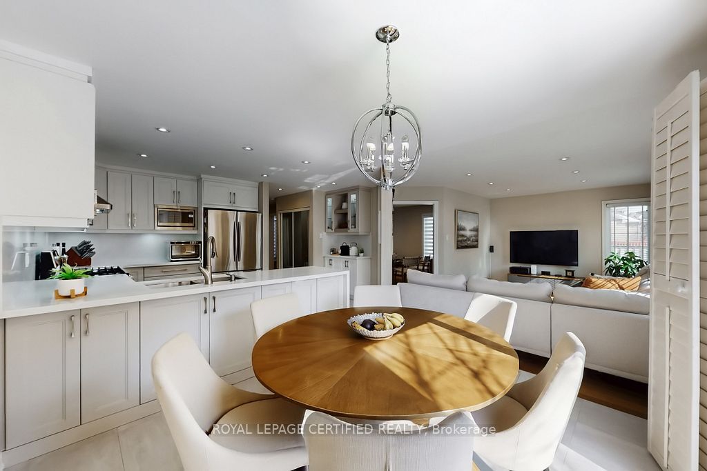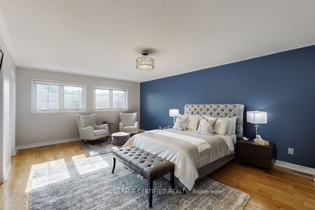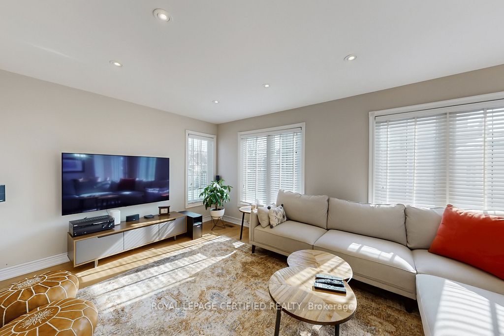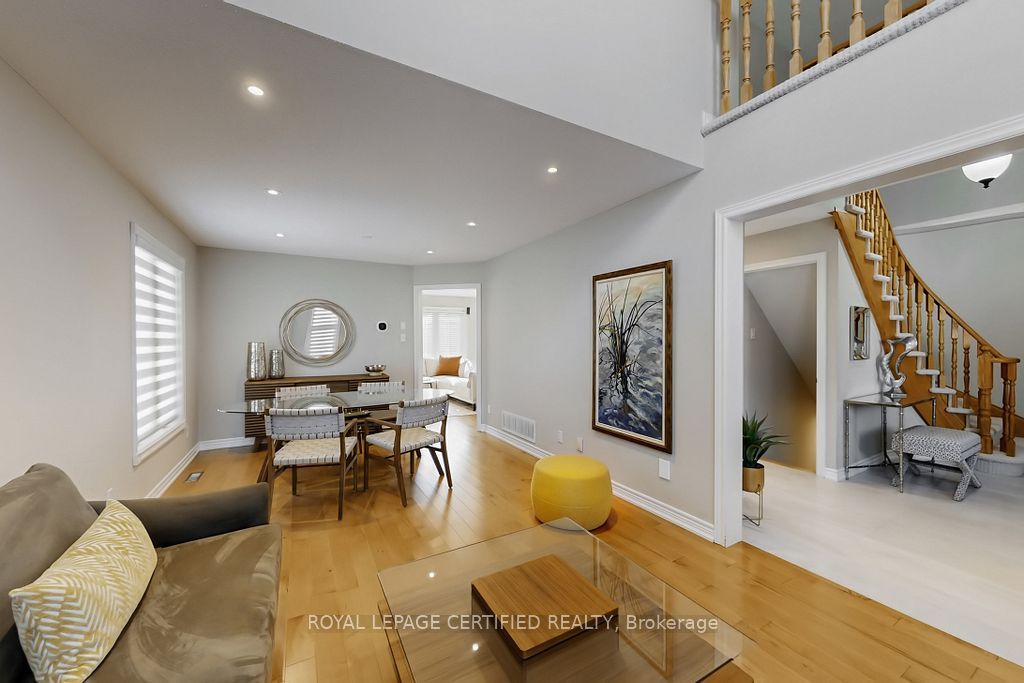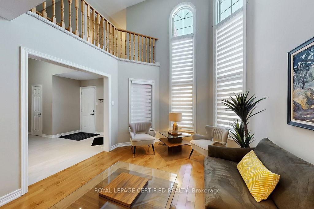 A prestigious subdivision with only two entry points, this rare corner estate offers exceptional privacy, architectural presence, and around 3400 sq. Ft. Of refined, designer-upgraded living space. Situated on a premium lot (almost 50'x105') with three distinct outdoor living areas, the professionally landscaped grounds - enhanced with elegant patterned concrete and a full sprinkler system - create a private outdoor sanctuary ideal for upscale entertaining or serene relaxation. Inside, timeless elegance meets modern sophistication. Rich hardwood flooring flows across the main level, highlighted by a dramatic living room with cathedral ceilings and custom blinds that elevate both light and scale. Formal dining, an expansive family room designed for memorable gatherings, and a beautifully renovated chef-inspired kitchen with walk-out access to the backyard deliver seamless indoor-outdoor living. Upstairs, the primary suite serves as a luxurious retreat, featuring custom motorized blinds and a spa-inspired renovated ensuite. An updated staircase and fresh carpeting add polish and cohesion throughout the upper level. The fully finished lower level offers impressive flexibility with two additional bedrooms, a spacious recreation lounge, a full bathroom, and abundant storage - perfectly suited for family living, extended guests, or a sophisticated executive work-from-home environment significant investments include a high-efficiency furnace and heat pump (2024), renovated ensuite and laundry room (2024) with custom cabinets, upgraded attic insulation, professional landscaping and sprinkler system (2021), central vac, a double garage with 50-amp outlet for ev, and a rare second rear driveway with garden shed. Close to parks, schools, highways, and amenities. A well-maintained, move-in-ready home in a desirable neighbourhood. Option for separate entrance being a corner lot.