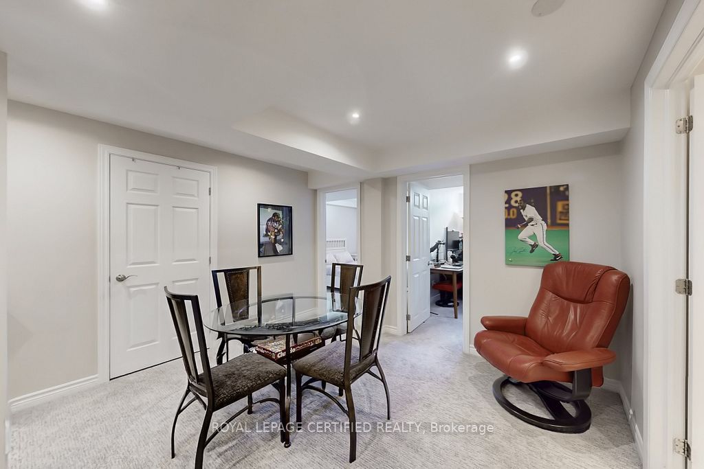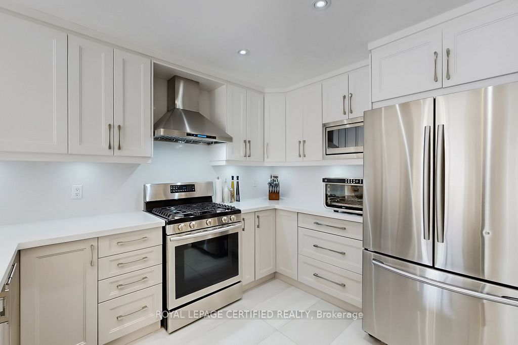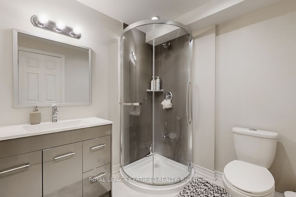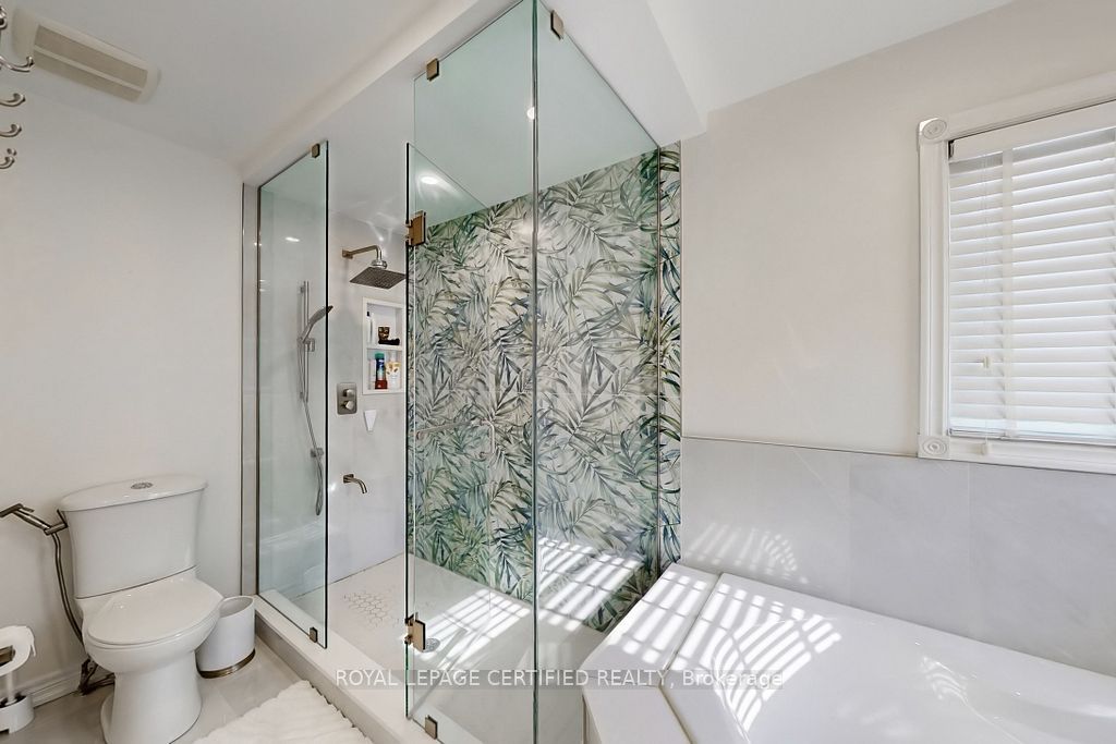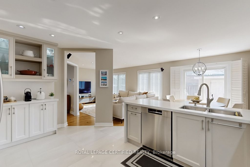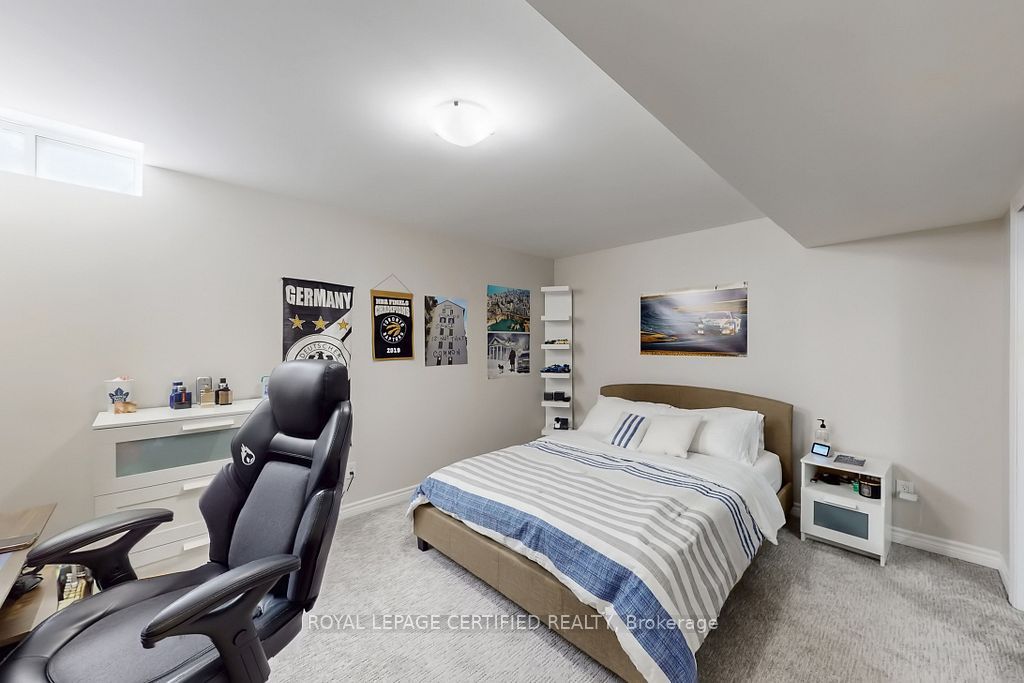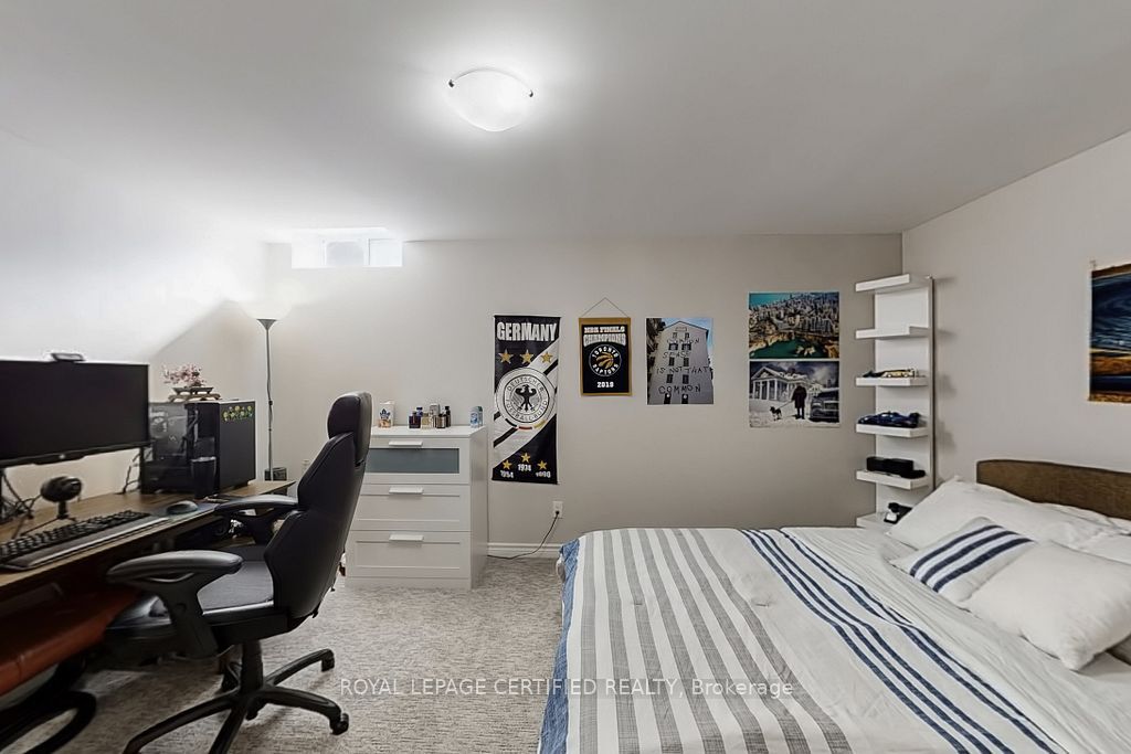 A prestigious subdivision with only two entry points, this rare corner estate offers exceptional privacy, architectural presence, and around 3400 sq. Ft. Of refined, designer-upgraded living space. Situated on a premium lot (almost 50'x105') with three distinct outdoor living areas, the professionally landscaped grounds - enhanced with elegant patterned concrete and a full sprinkler system - create a private outdoor sanctuary ideal for upscale entertaining or serene relaxation. Inside, timeless elegance meets modern sophistication. Rich hardwood flooring flows across the main level, highlighted by a dramatic living room with cathedral ceilings and custom blinds that elevate both light and scale. Formal dining, an expansive family room designed for memorable gatherings, and a beautifully renovated chef-inspired kitchen with walk-out access to the backyard deliver seamless indoor-outdoor living. Upstairs, the primary suite serves as a luxurious retreat, featuring custom motorized blinds and a spa-inspired renovated ensuite. An updated staircase and fresh carpeting add polish and cohesion throughout the upper level. The fully finished lower level offers impressive flexibility with two additional bedrooms, a spacious recreation lounge, a full bathroom, and abundant storage - perfectly suited for family living, extended guests, or a sophisticated executive work-from-home environment significant investments include a high-efficiency furnace and heat pump (2024), renovated ensuite and laundry room (2024) with custom cabinets, upgraded attic insulation, professional landscaping and sprinkler system (2021), central vac, a double garage with 50-amp outlet for ev, and a rare second rear driveway with garden shed. Close to parks, schools, highways, and amenities. A well-maintained, move-in-ready home in a desirable neighbourhood. Option for separate entrance being a corner lot.