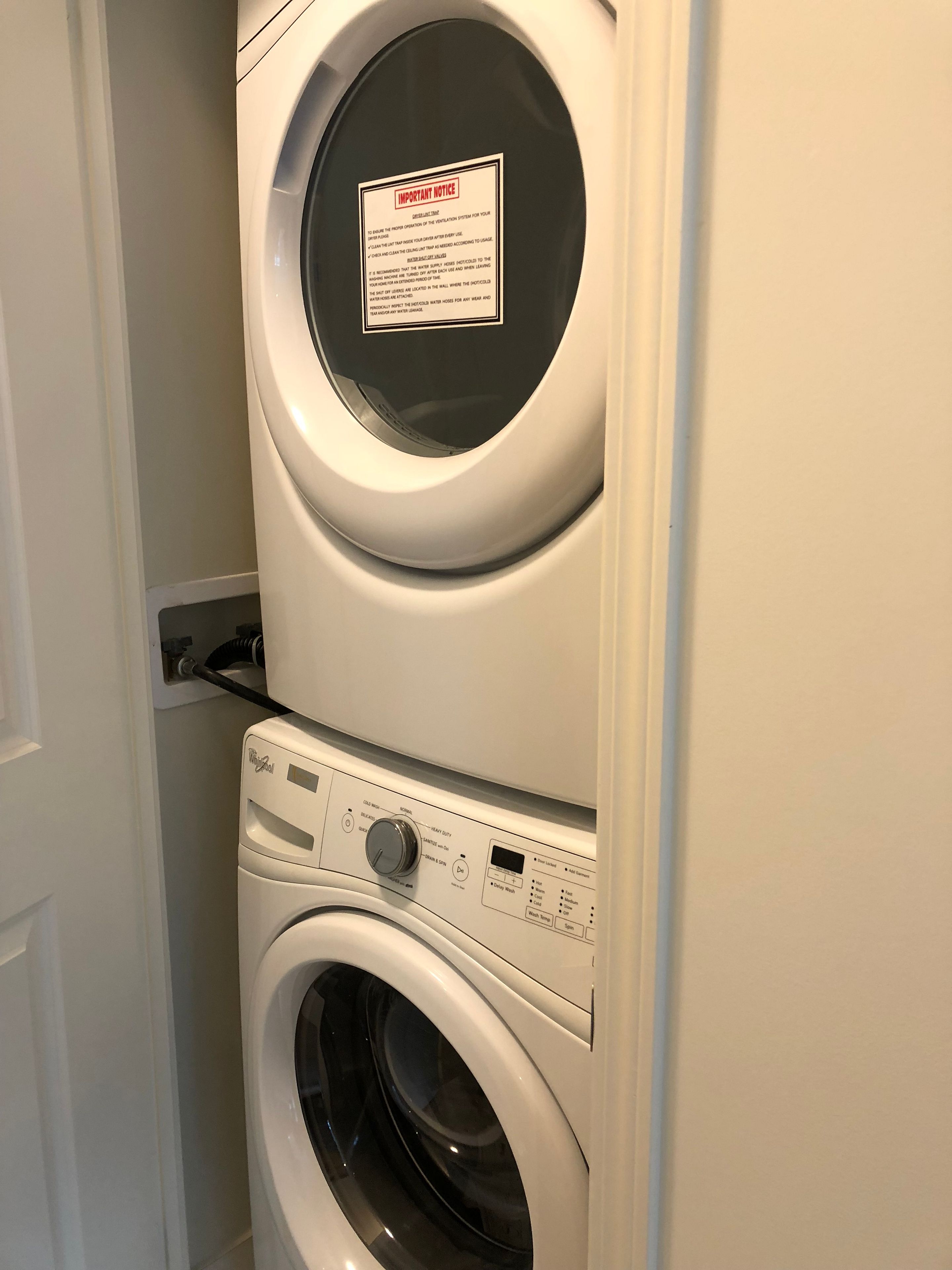 • Modern kitchen with stainless steel appliances and quartz counters.