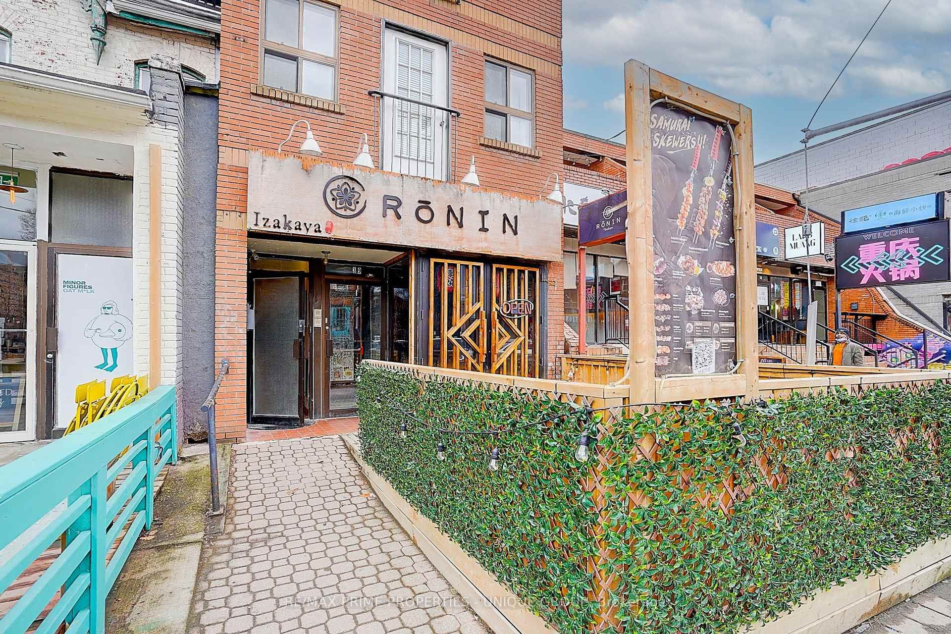 Rare down town opportunity to own a 3 story prime commercial property in vibrant baldwin village, one of the most unique streets in toronto. The street is lined with cafes, coffee shops and restaurants. The building was constructed in 1988 with the first floor restaurant of approx:1600 sq ft plus a lot of storage in the basement approx.: 1600 sq . And 2 residential units above (1000 sq ft/each unit ) with 3 bedrm &1 bath in each unit. Both units are fully rented for $7200, total sq ft approx.: 3600 + 1600 sq. Ft in basement. Fully liquor licensed with approx. 75 seats also seating at patio. 2 parking spaces at rear thru lane way. Suitable for both investors and owner operated restaurant. The area is close to u of t; 4 major teaching hospitals, government offices, major ttc. Commercial tenant negotiating has a new lease possibly 4 + 5 years option to renew.