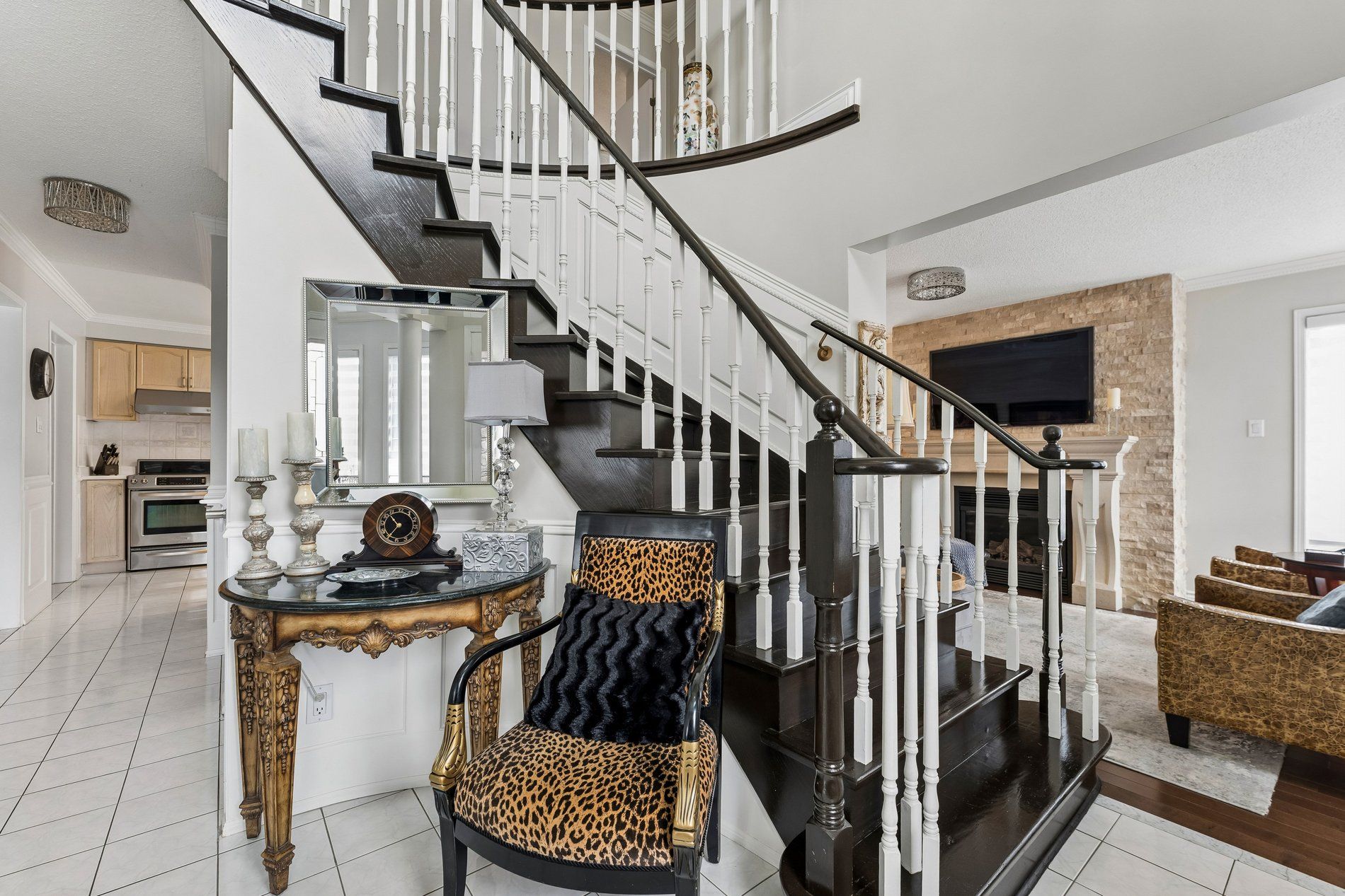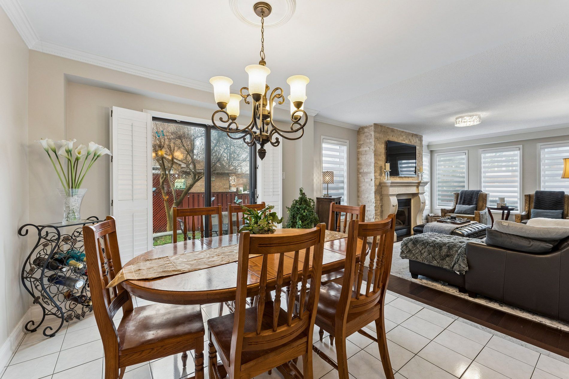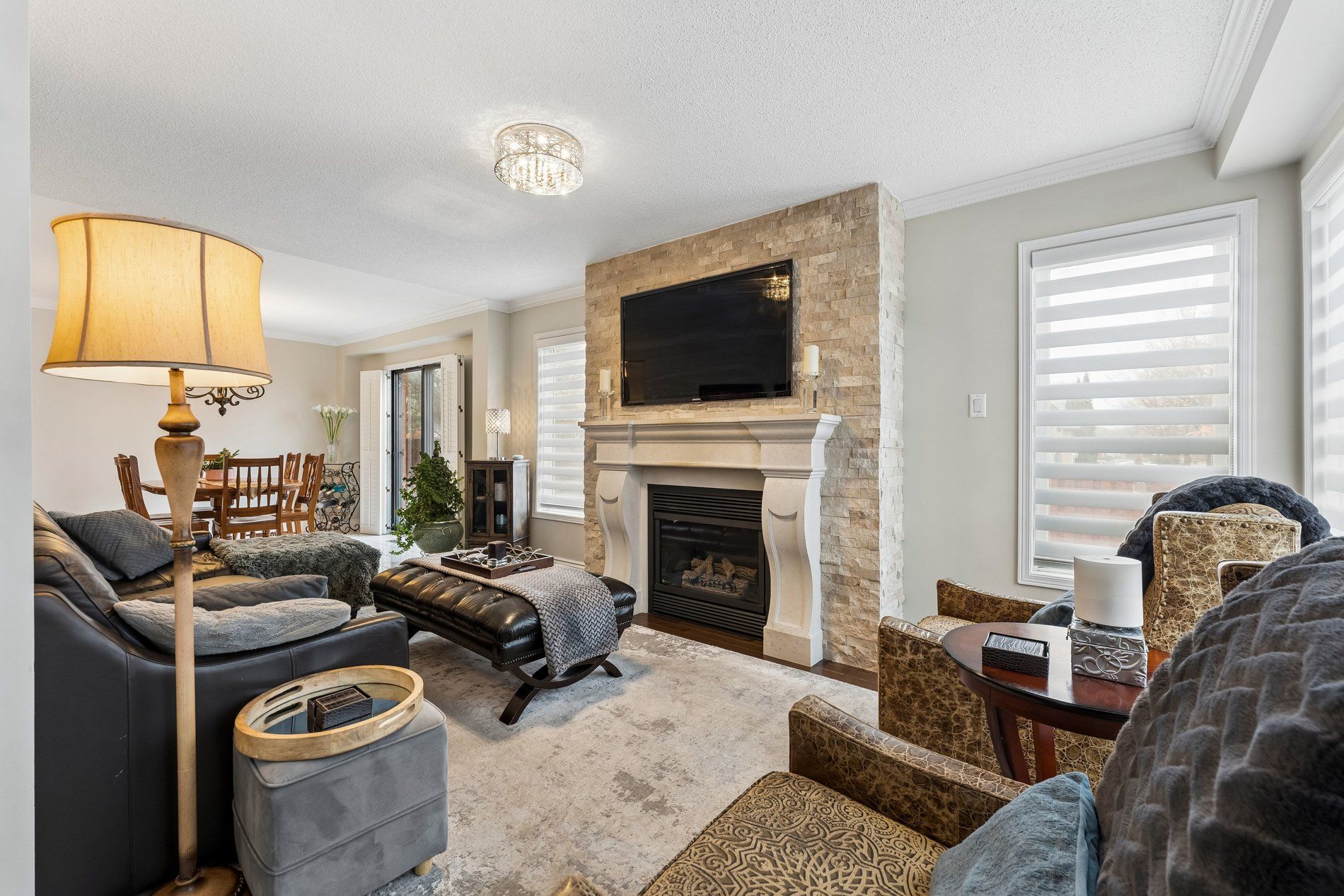• Main living area features a warm gas fireplace with a custom mantle.