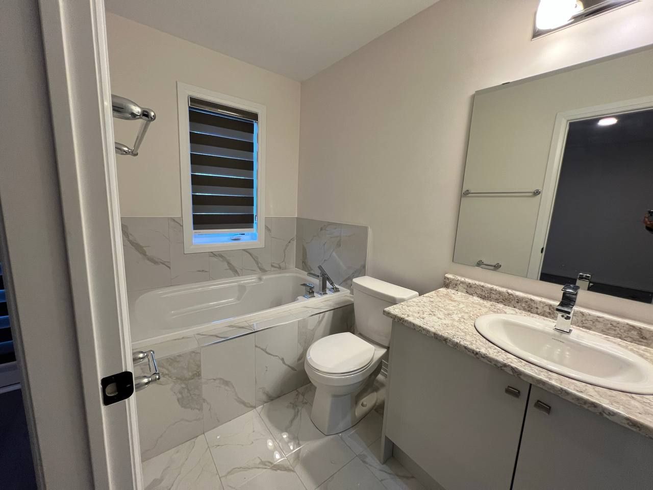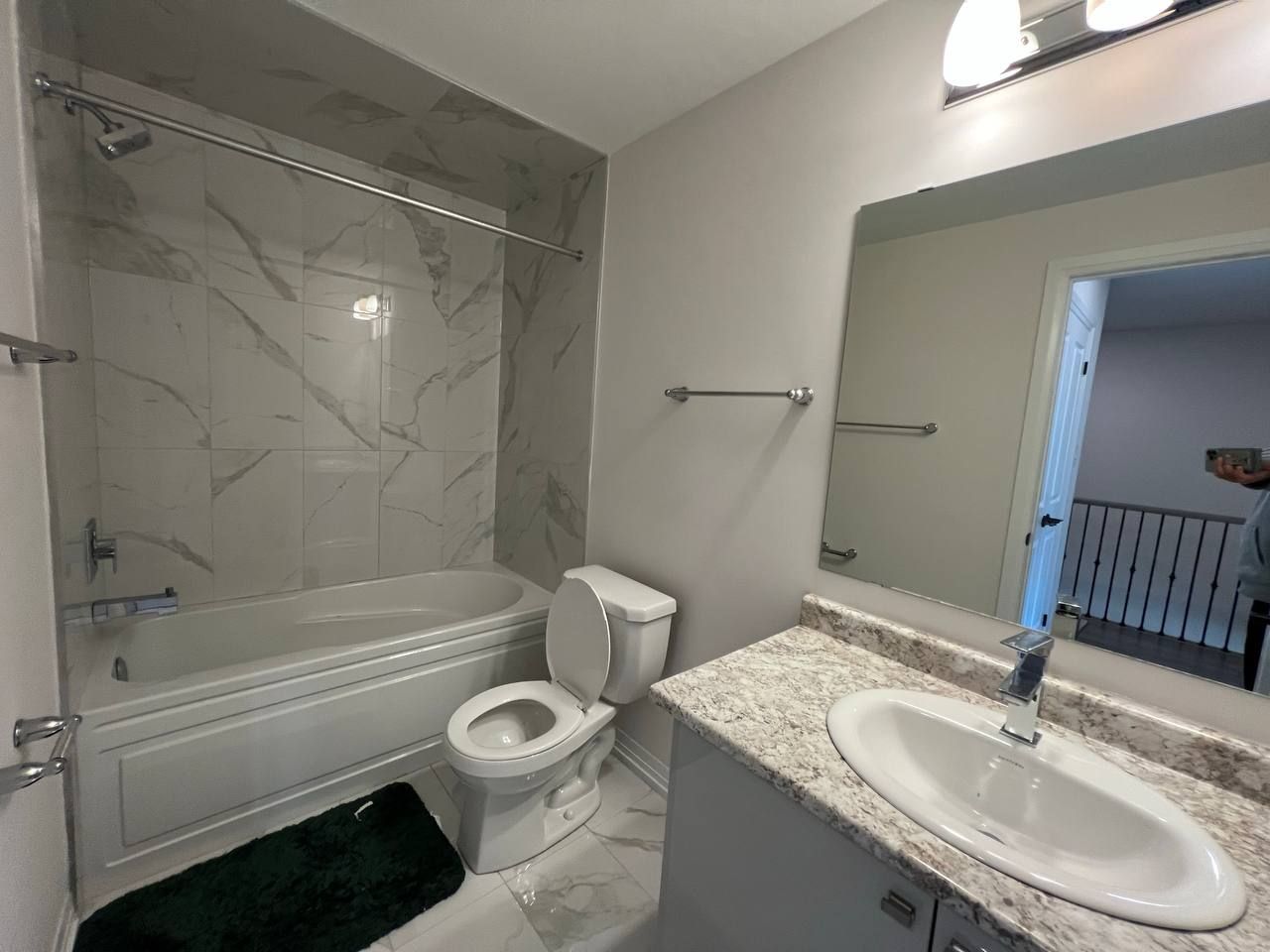 Welcome to this beautifully upgraded executive-style freehold townhome offering over 1,700 sq. Ft. Of bright, functional living space plus an unfinished basement. Located in a desirable family-friendly community at the southeast corner of scugog st. And concession rd. 3, this home is just steps from schools, parks, grocery stores, and more. The main floor features a spacious living room, powder room, coat closet, and inside access to a deep one-car garage ideal for storage or longer vehicles. The second floor offers a large family room with a walkout to a private balcony, a second powder room, and a modern kitchen with a breakfast area. Appliances include a fridge, stove, and dishwasher. The third floor features a primary bedroom with a walk-in closet and a 5-piece ensuite including a soaker tub, separate shower, and built-in shower bench. Two additional bedrooms and a full 4-piece bath complete the upper level. The basement is unfinished and includes a cold cellar and laundry area with washer and dryer. Highlights include no carpet, high-quality flooring throughout, a backyard with a deck, parking for two vehicles including one in the garage and one in the driveway, and guest parking available. This is a rare opportunity to own a spacious and well-maintained townhome in a prime bowmanville location.