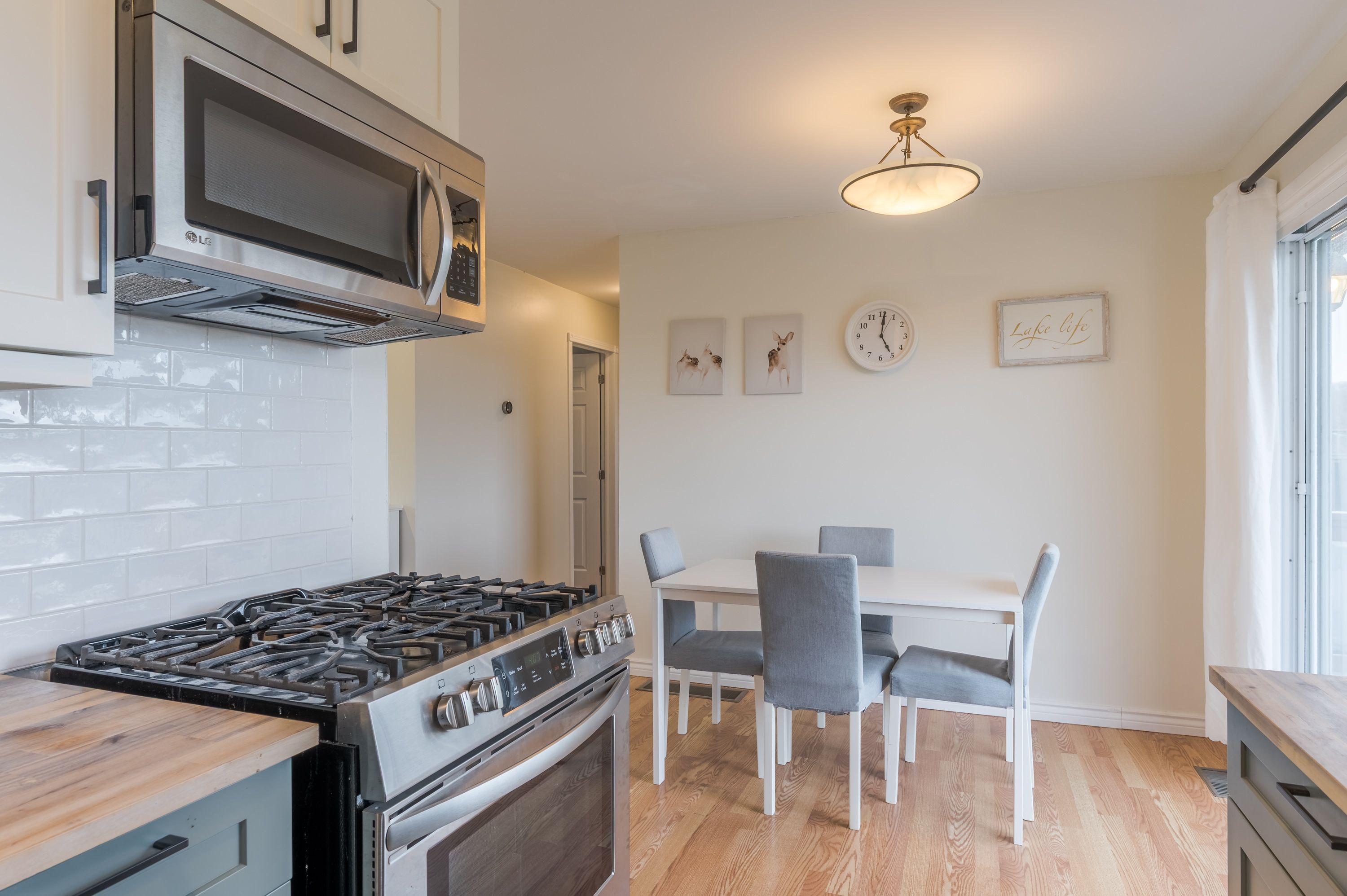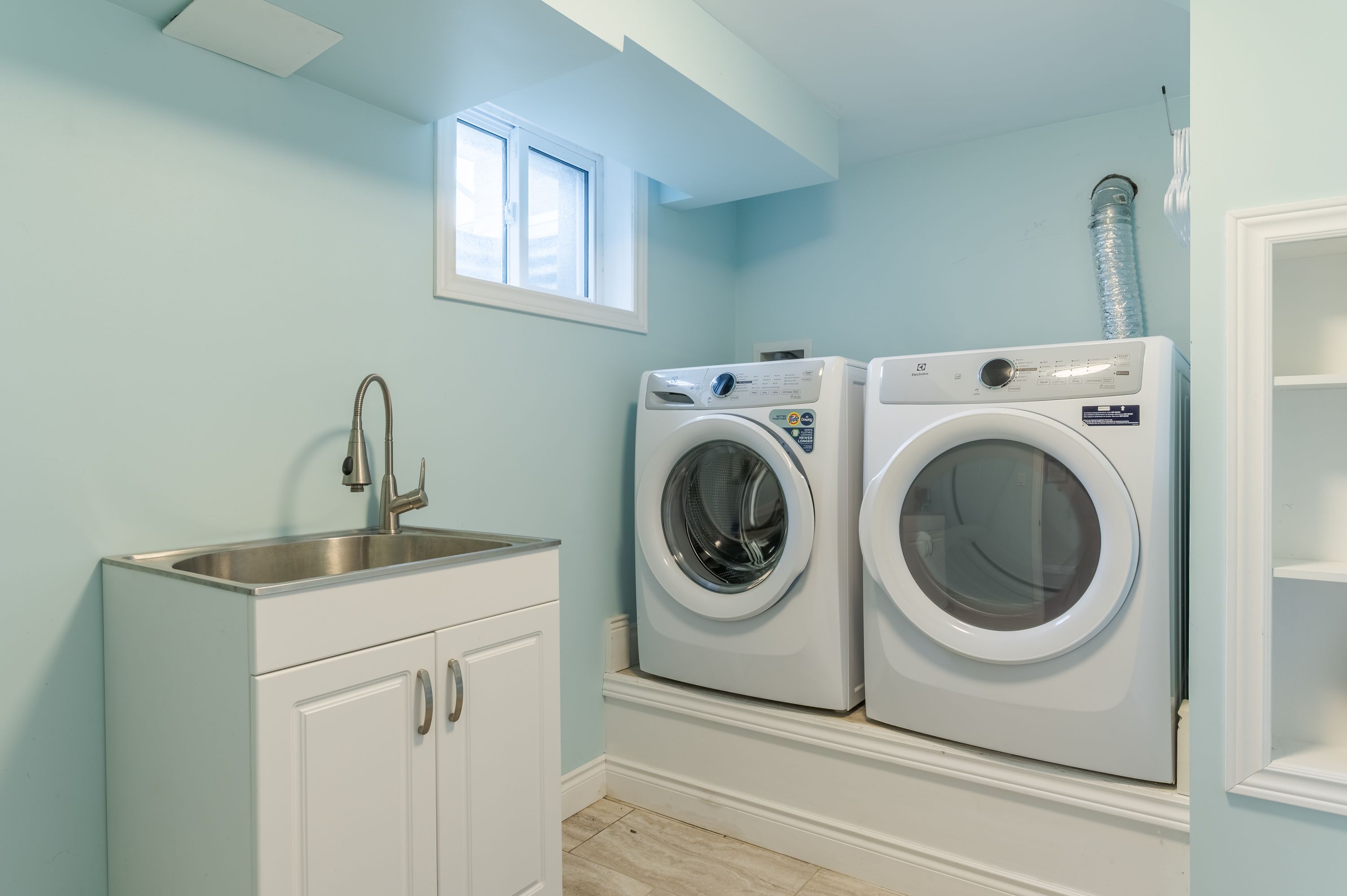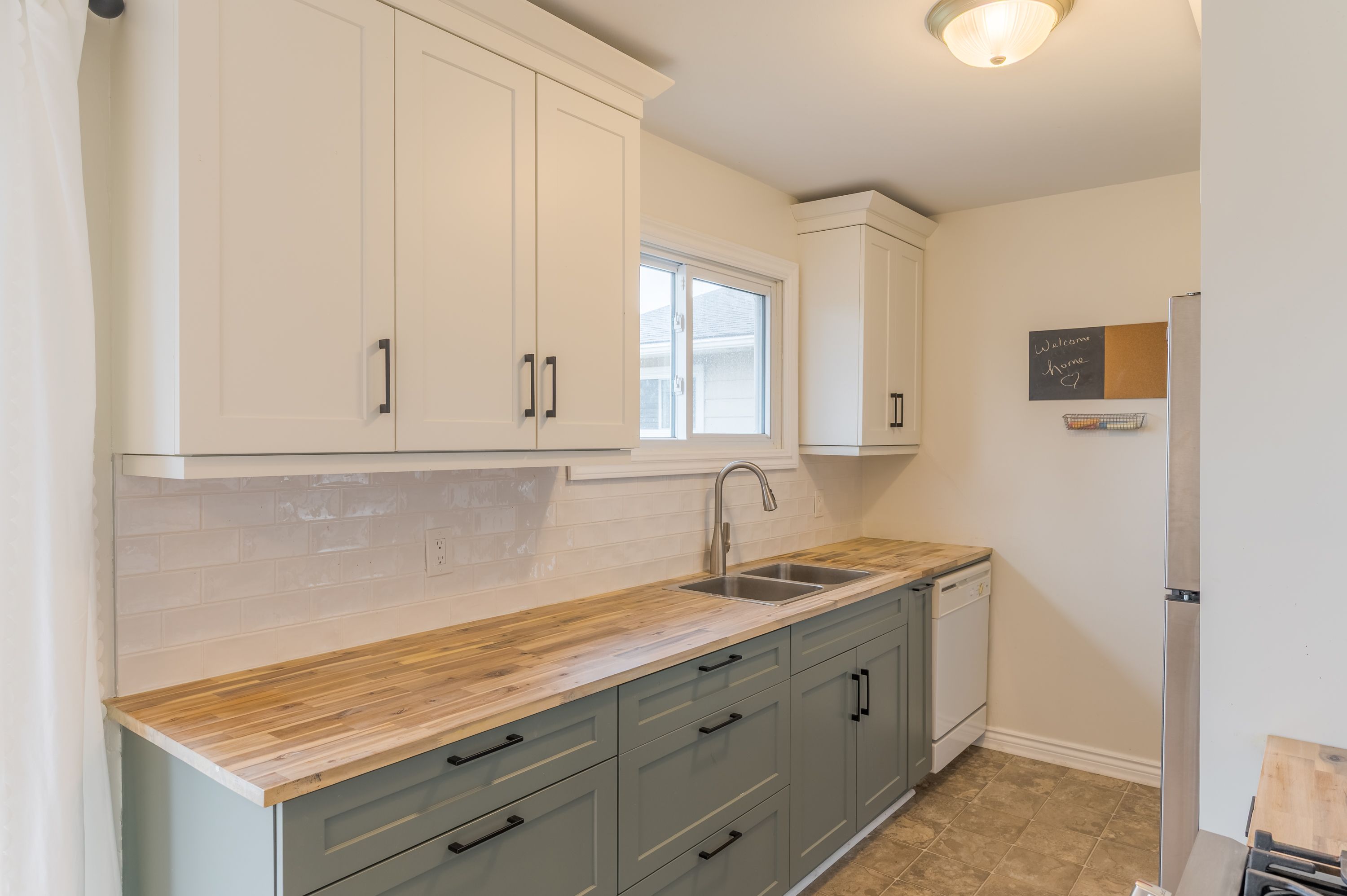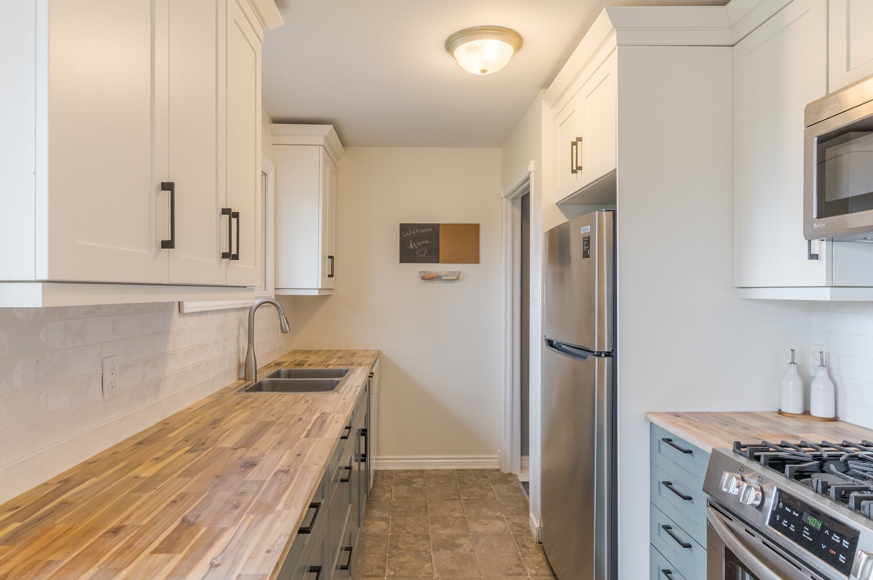 • Modern kitchen with gas stove and renovated washroom for convenience.