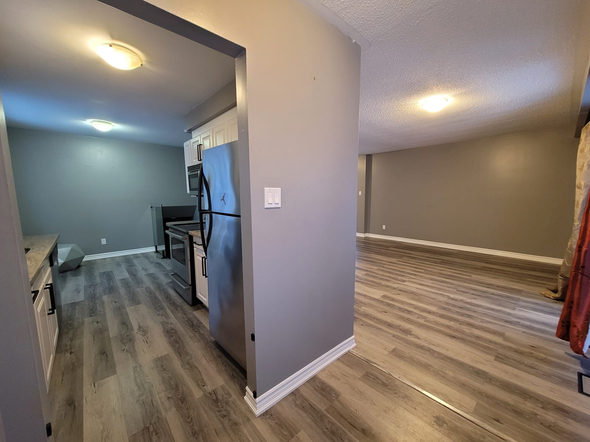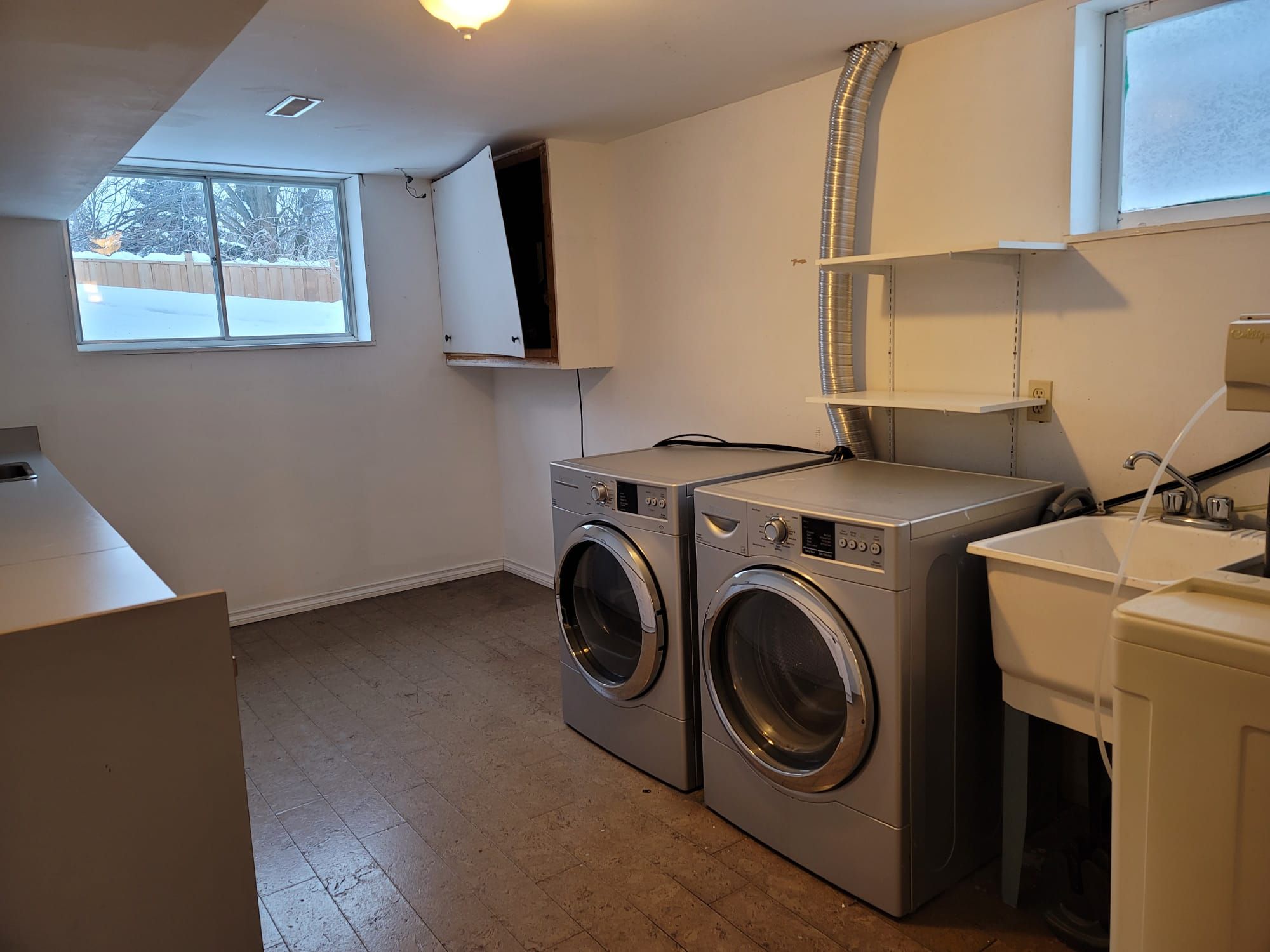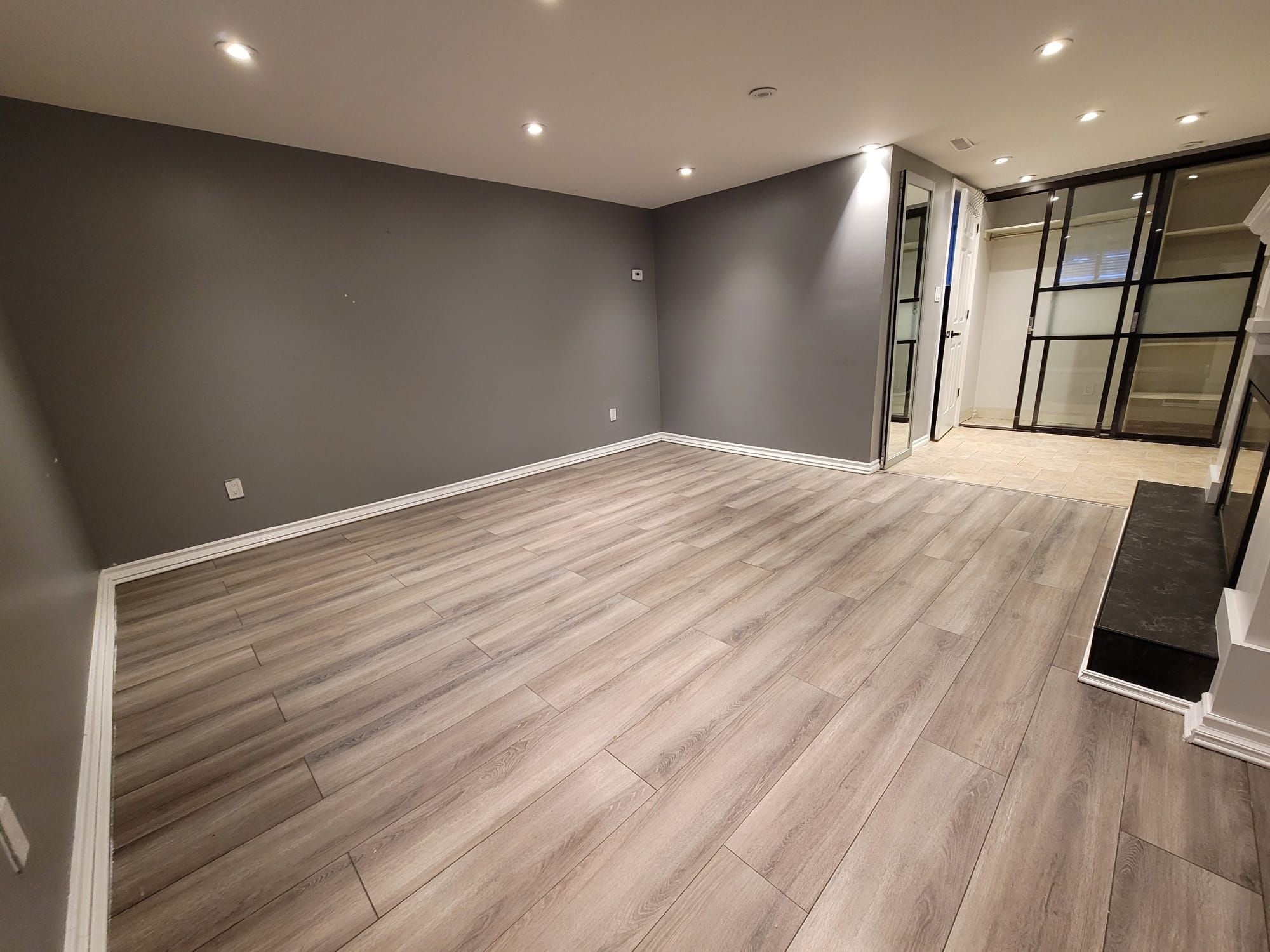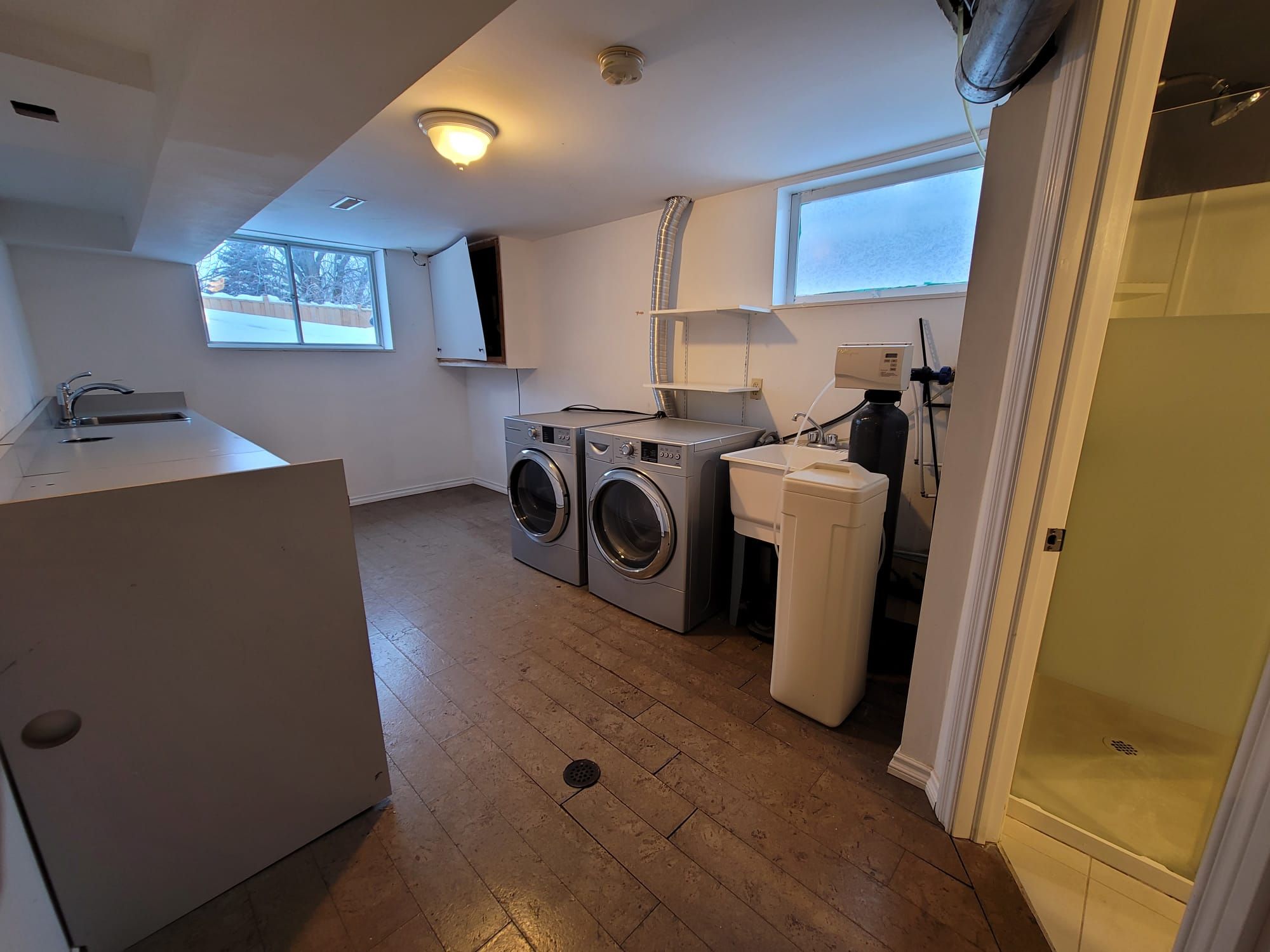 • Lower level with large windows offers flexible space for various needs.