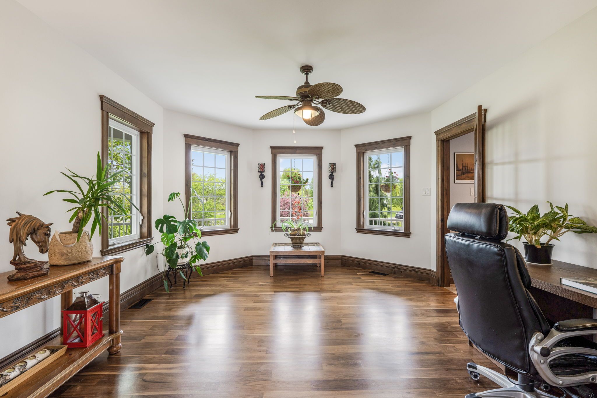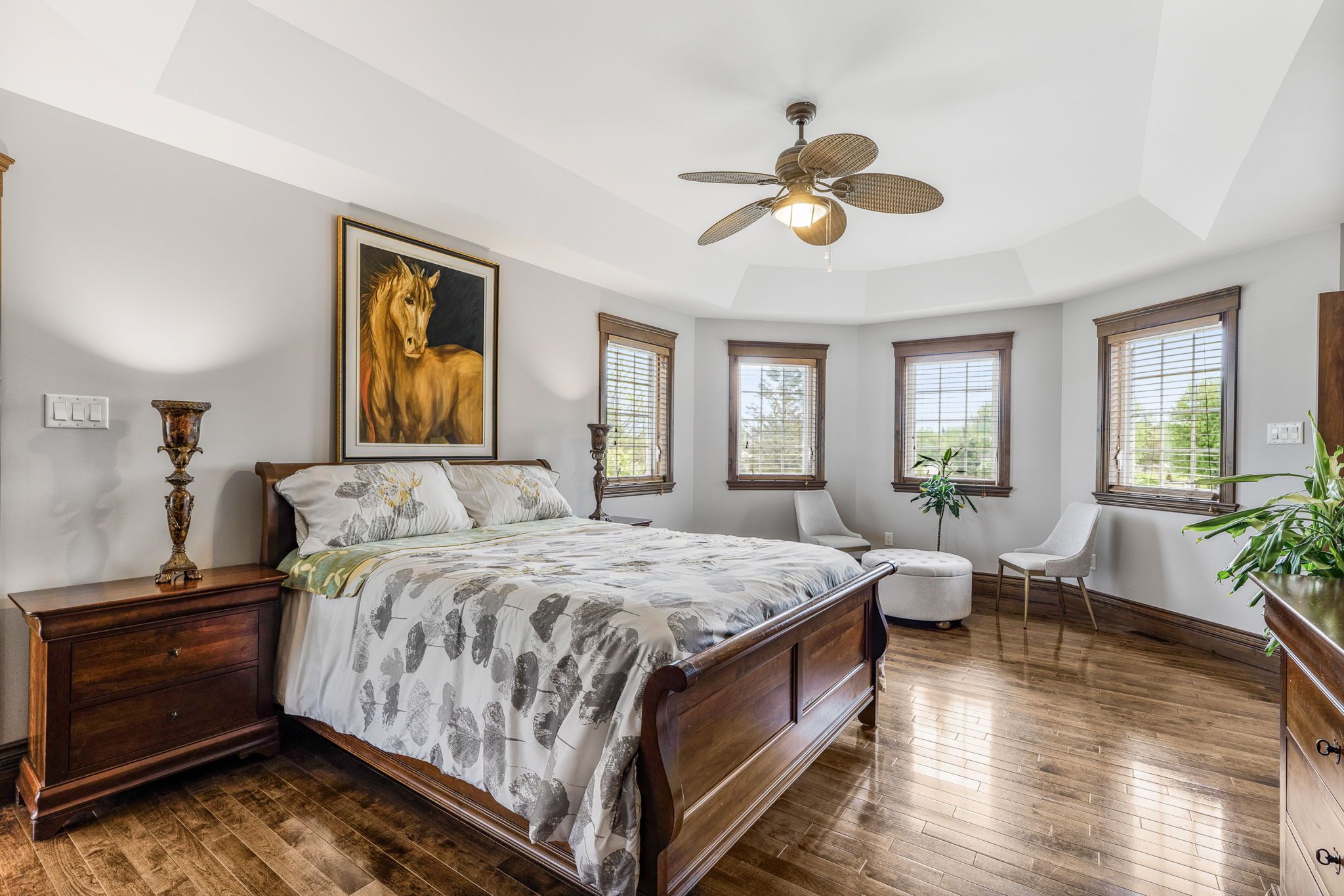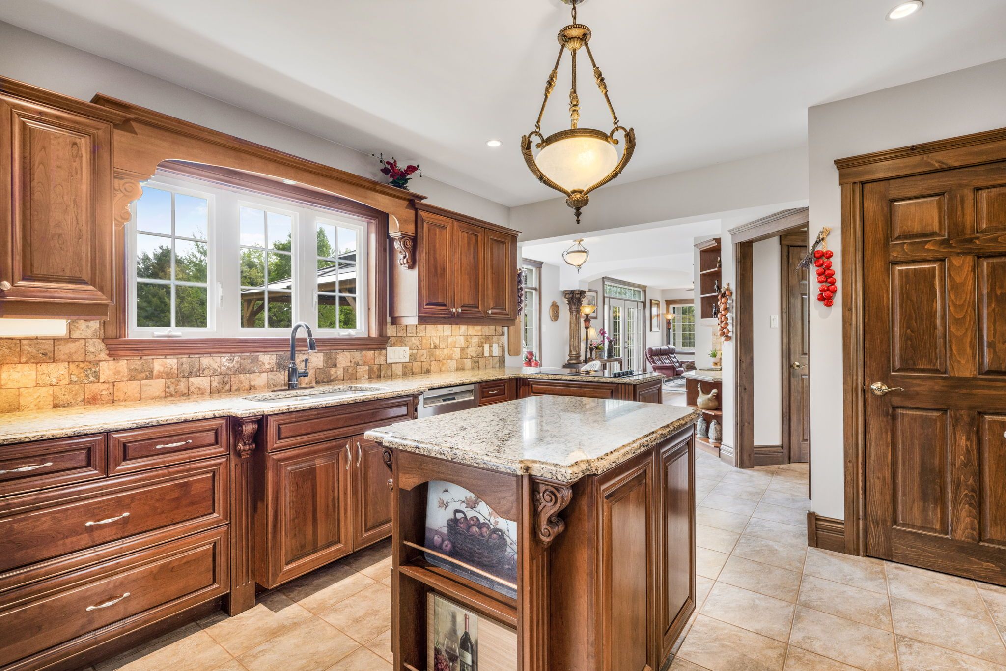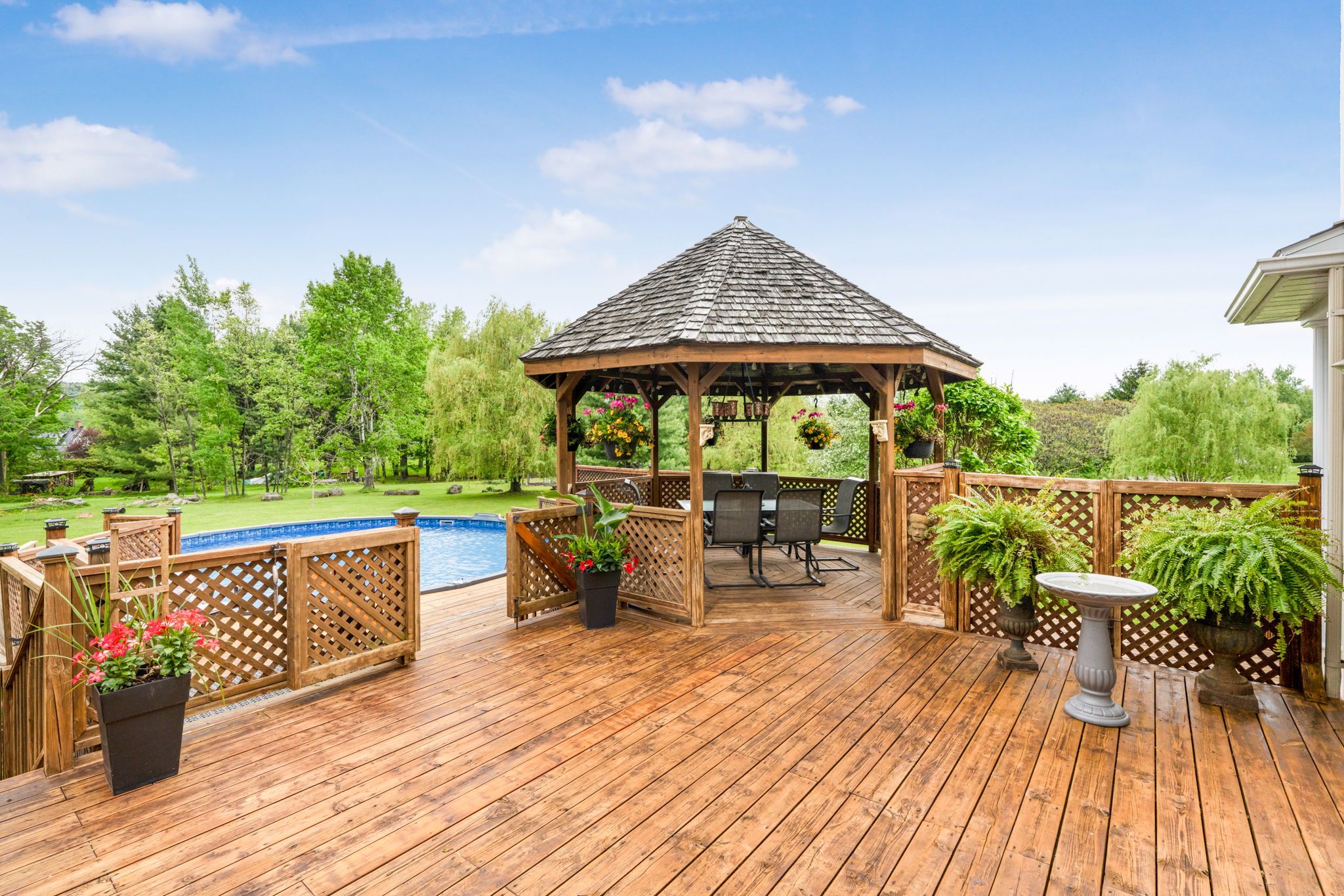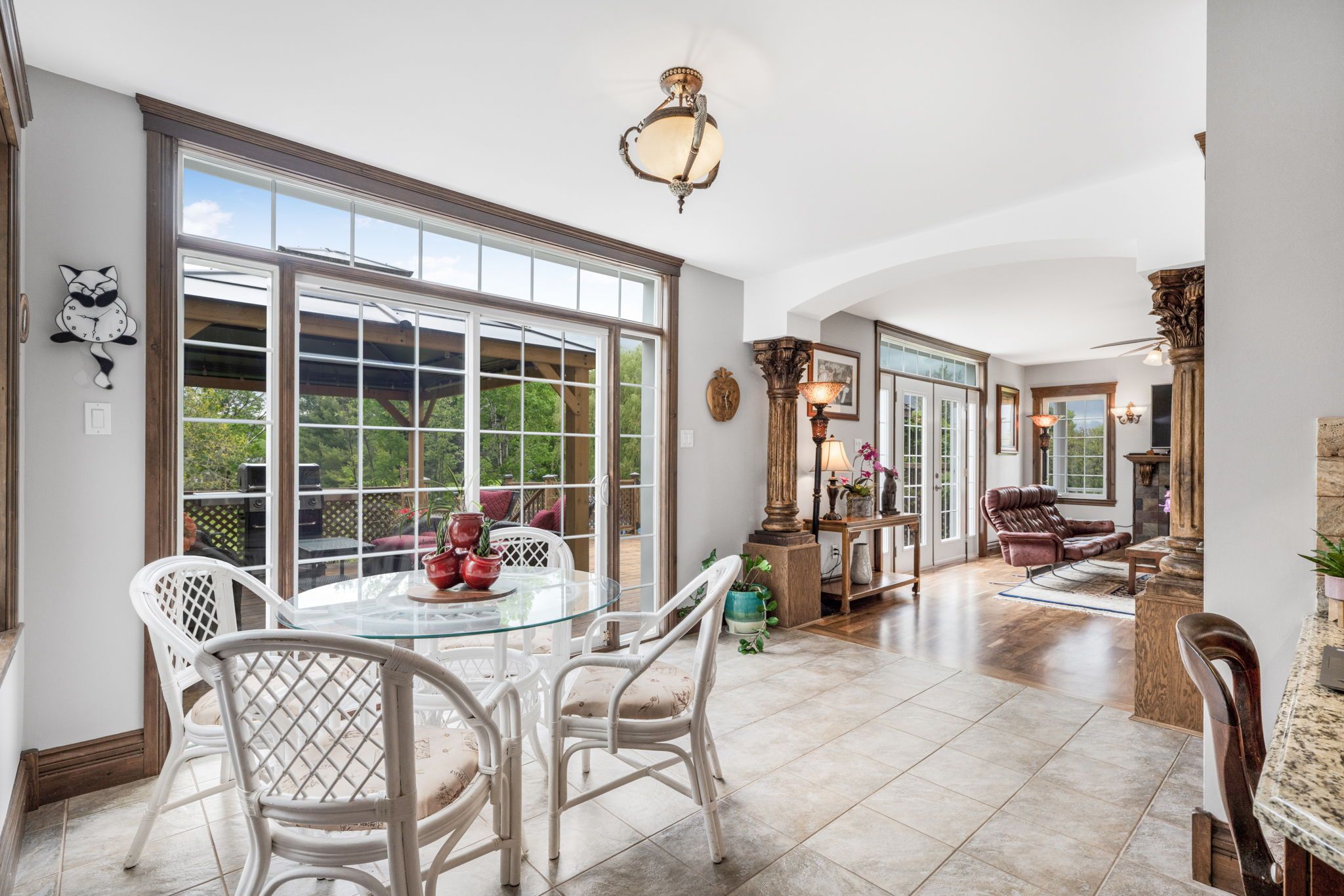 Stunning, custom-built, 4,500+ sq ft home, 5 bedrooms, 5 bathrooms on 2. 58 acres in the prestigious heritage estates, l'orignal. Kitchen is highlighted with cherry wood cabinets, granite countertops, marble backsplash. Family room includes a slate-faced cast iron gas fireplace, french doors open onto a porch, deck, 2 gazebos and heated resin pool. Formal foyer with a majestic solid cherry staircase, located between the dining room and den/office, both rooms with french doors. 5 large bedrooms upstairs, 3 bathrooms and laundry area. Luxurious primary suite is a private oasis with 9-foot tray ceiling, walk-in closet and 4-piece en-suite bathroom. Two of the bedrooms have en-suite bathrooms. Throughout large windows overlook the yard, with the ottawa river and laurentian foothills beyond. A secondary front entrance opens onto a second formal staircase and accesses all the bedrooms including a primary/in-law suite. Fully finished basement features a large home theatre, a billiard room, a recreation area, a 3-piece bathroom, storage closet and utility room. Oversized garage, 10-foot-high ceiling and commercial-grade gas heater. Garage fits 3-4 cars, a workbench and storage. Professionally landscaped garden with its mature trees is an oasis to be enjoyed from the deck, pool, porch and inside the house. A huge wraparound porch makes this house a home! Built to engineering standards, the home is constructed with 9-foot-high foundation walls, steel support beams, hardwood and porcelain flooring and solid wood doors and trim throughout. The replacement cost of this unique property is approximately $2 million. The home has been meticulously maintained. Sasha's park is just a short walk away with a splash pad and fully accessible play structures. L'orignal beach park and marina are close by. Excellent schools, recreation and shopping in the area. This unique property must be seen to be fully appreciated.