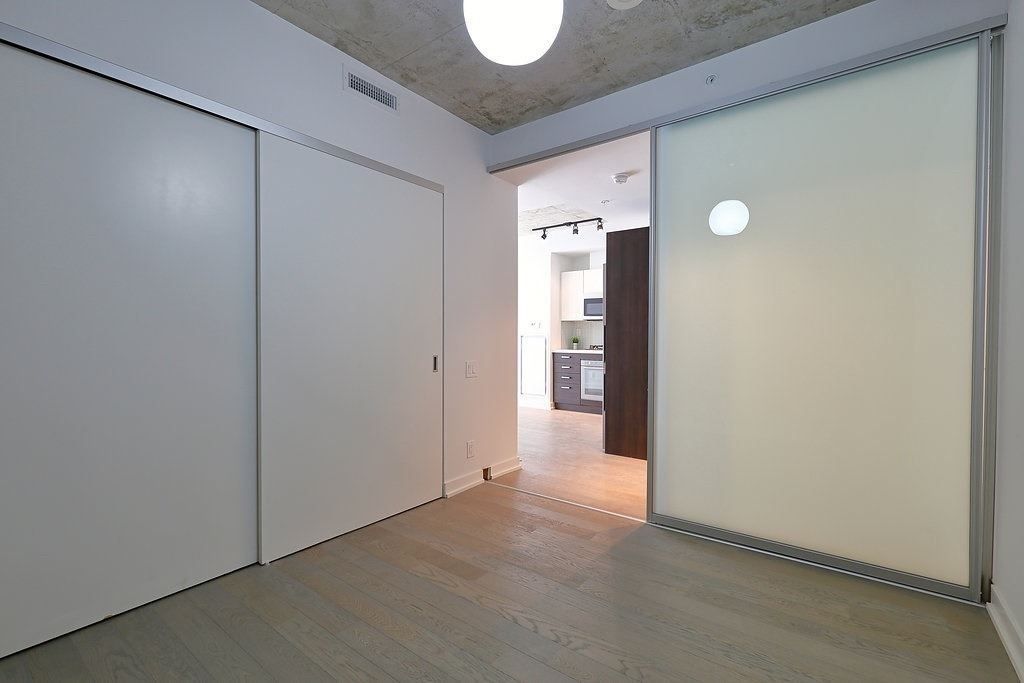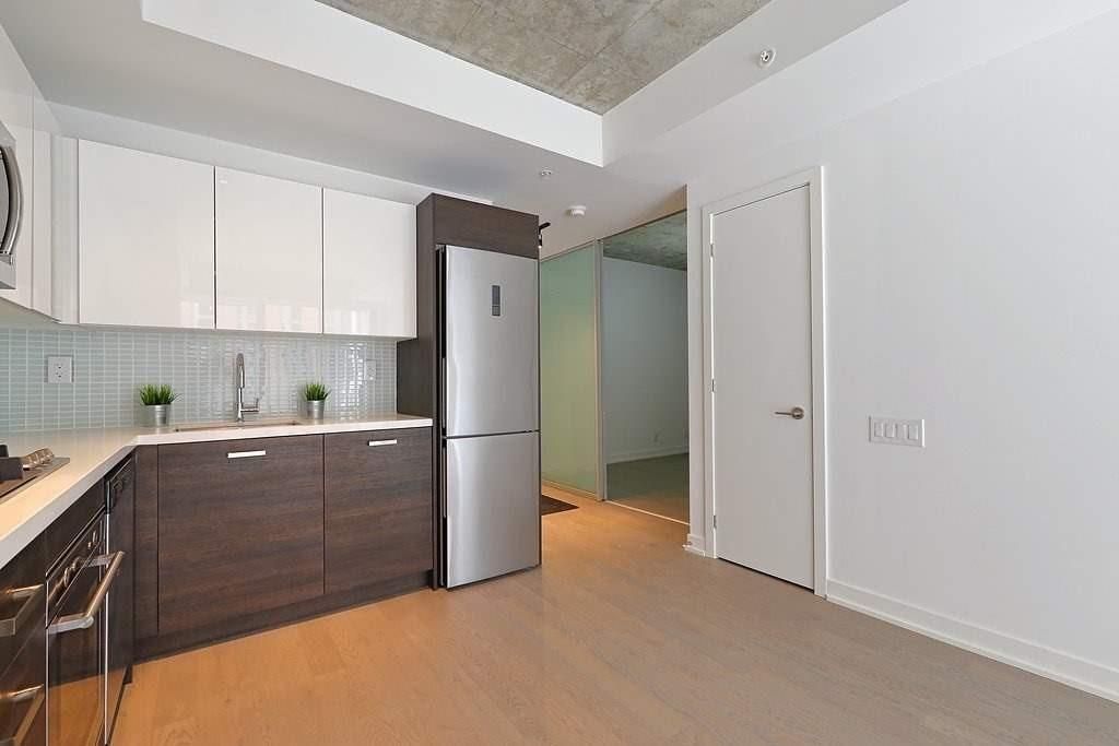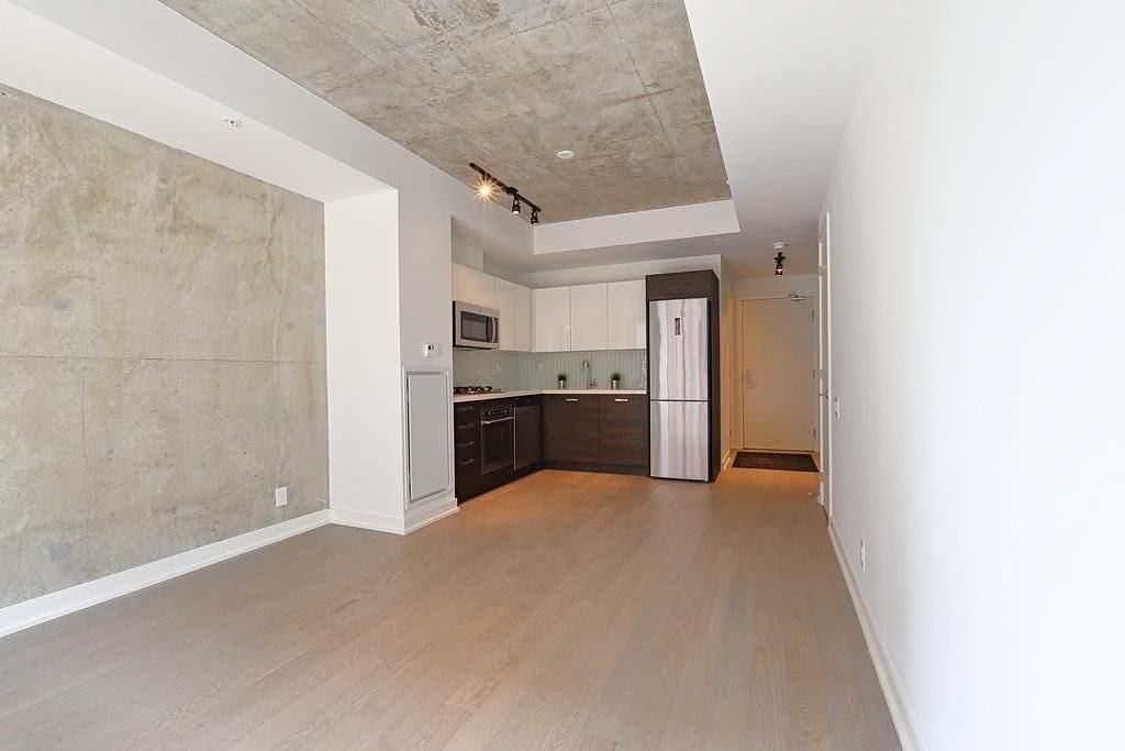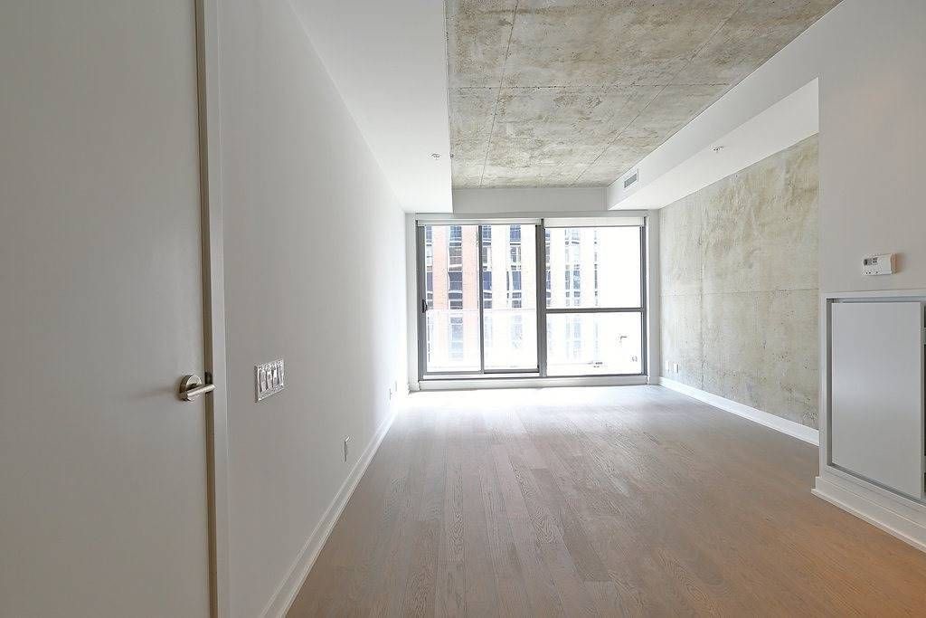 Welcome to brant street lofts! This bright and trendy one bedroom with exposed concrete walls features an open concept living/dining/kitchen. Perfect pied a terre in toronto's lively king/queen west neighbourhood. St. Andrew's park across the street. Steps to streetcars, shopping, cafes, restaurants and entertainment. Open balcony with south views.