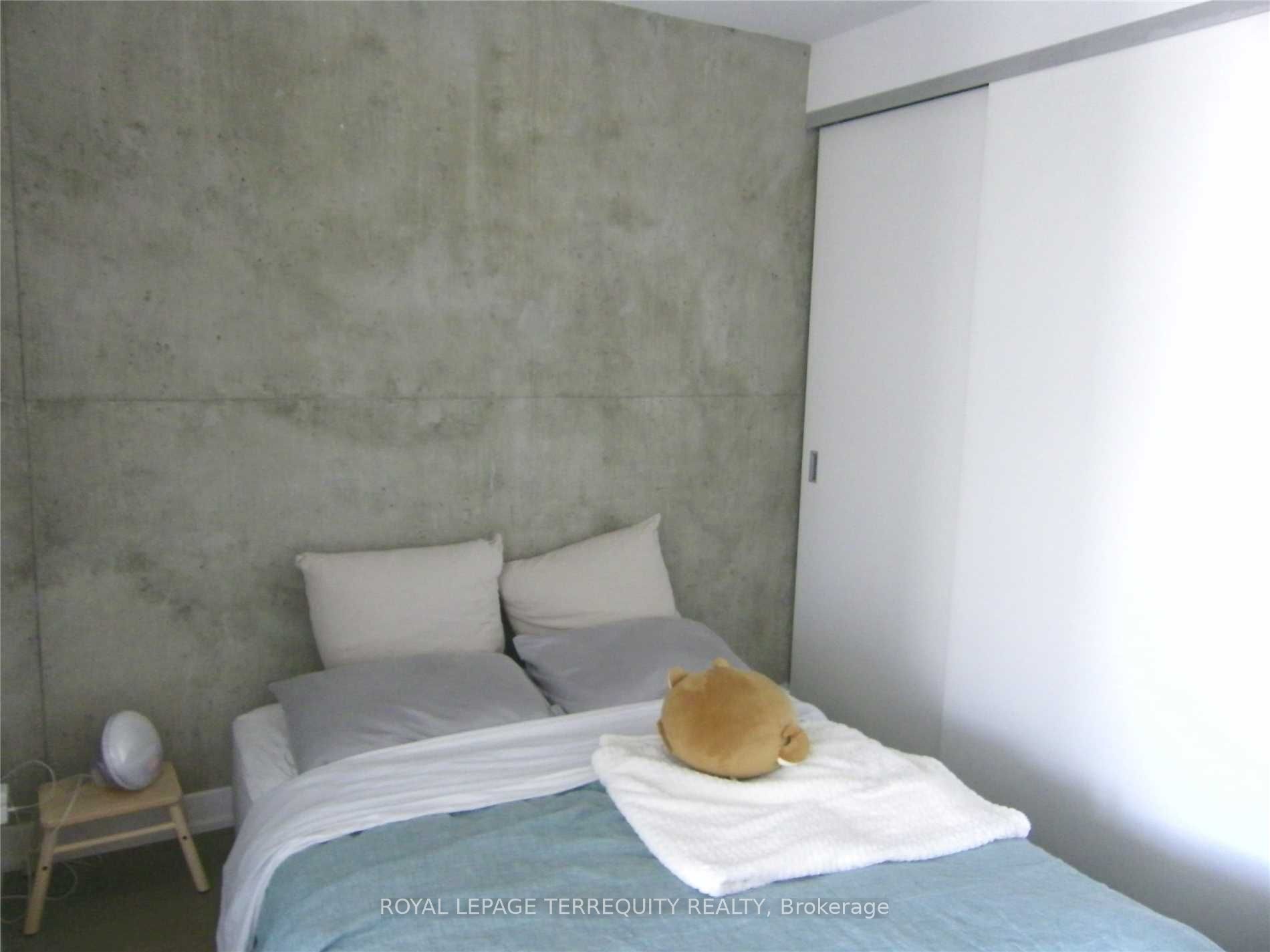 A spacious modern luxury loft style rare corner unit in the brant park condo. Soaring 9 ft concrete ceilings, freshly painted, new flooring, partial concrete walls. Full size cooks kitchen w/gas range, quartz counters, s/s appliances. W/ ample room for breakfast table. Spacious living/dining. Floor to ceiling windows, open balcony w/gas bbq hook up. Deep soaker tub in bathroom. 2 front hall closets. Close to entertainment, fashion and financial district. Directly across from the park.