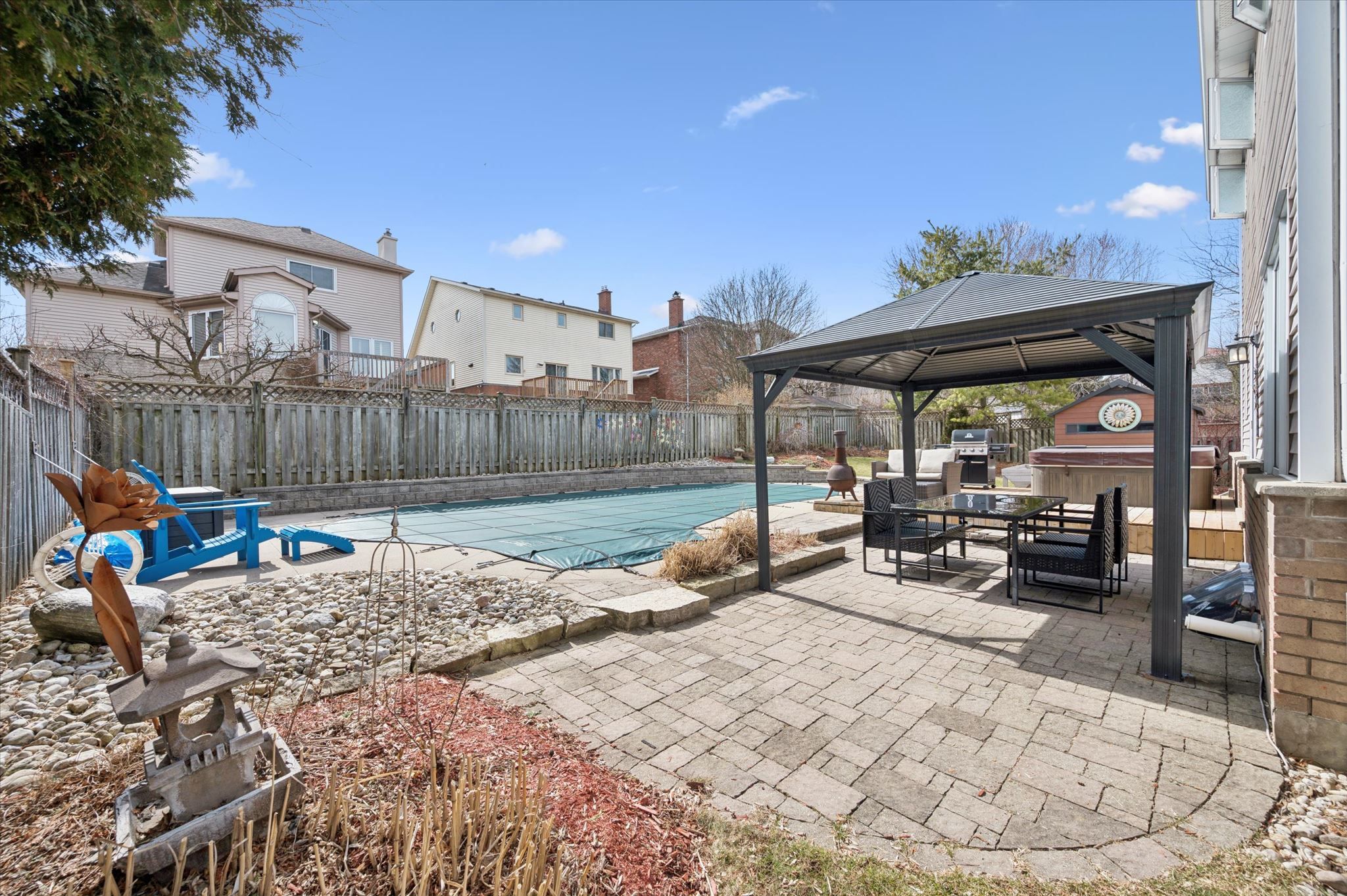 Located on a quiet crescent, this four-bedroom home with an inground pool is in search of its next family! Centrally located adjacent to old university with easy highway access, yet surrounded by beautiful parks and walking trails along the river that lead right to downtown guelph. Built by thomasfield homes, the front has great curb-appeal with its double car garage and stamped asphalt driveway. The backyard is pie shaped and has a 32x17 ft inground pool with concrete and interlock surround, a hot tub, plus ample grass for the kids or pets to play. The main floor has an updated kitchen and appliances including gas stove (2017), formal living room and dining room with hardwood flooring, a main level family room with gas fireplace, 2-piece bathroom plus a very convenient mudroom from the garage that also has hookups ready for main level laundry should you desire. Upstairs has four bedrooms and two bathrooms that were both updated in 2020. If you need more space, the basement is also finished with a large family room. Other notable updates: roof and eaves (2024), most windows, flooring and carpet (2017), pool equipment and liner (2014), hot tub, patio door, gas fireplace (2013), furnace and ac (2009). You won't find many four-bedroom homes with inground pools in this price point, schedule a private viewing today!