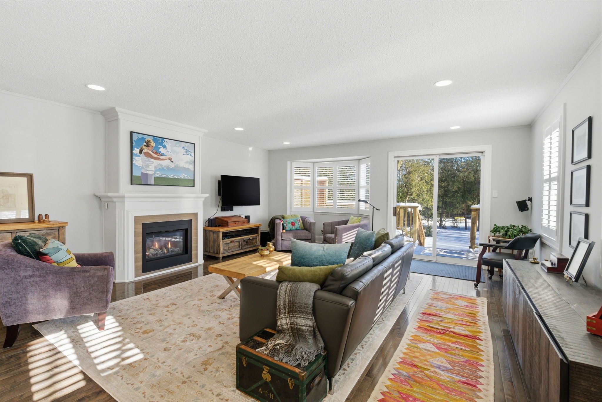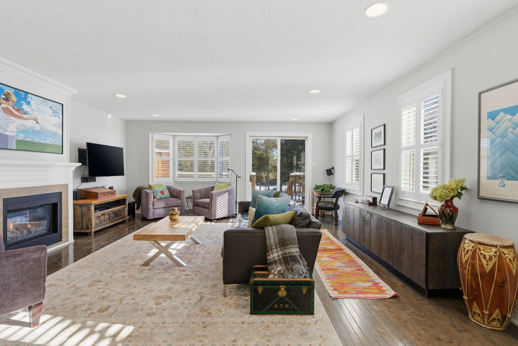 • Inviting family room with fireplace and murphy bed for extra guests.