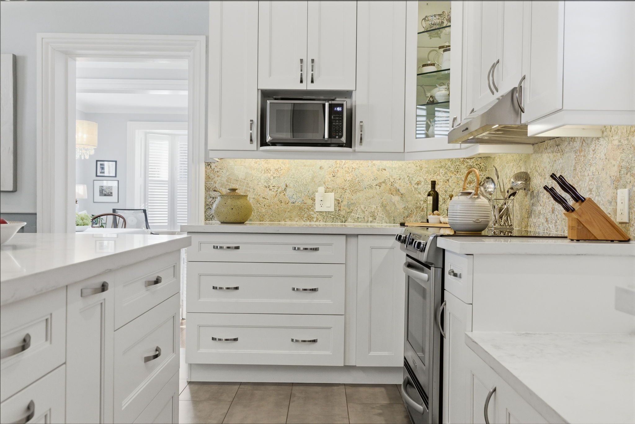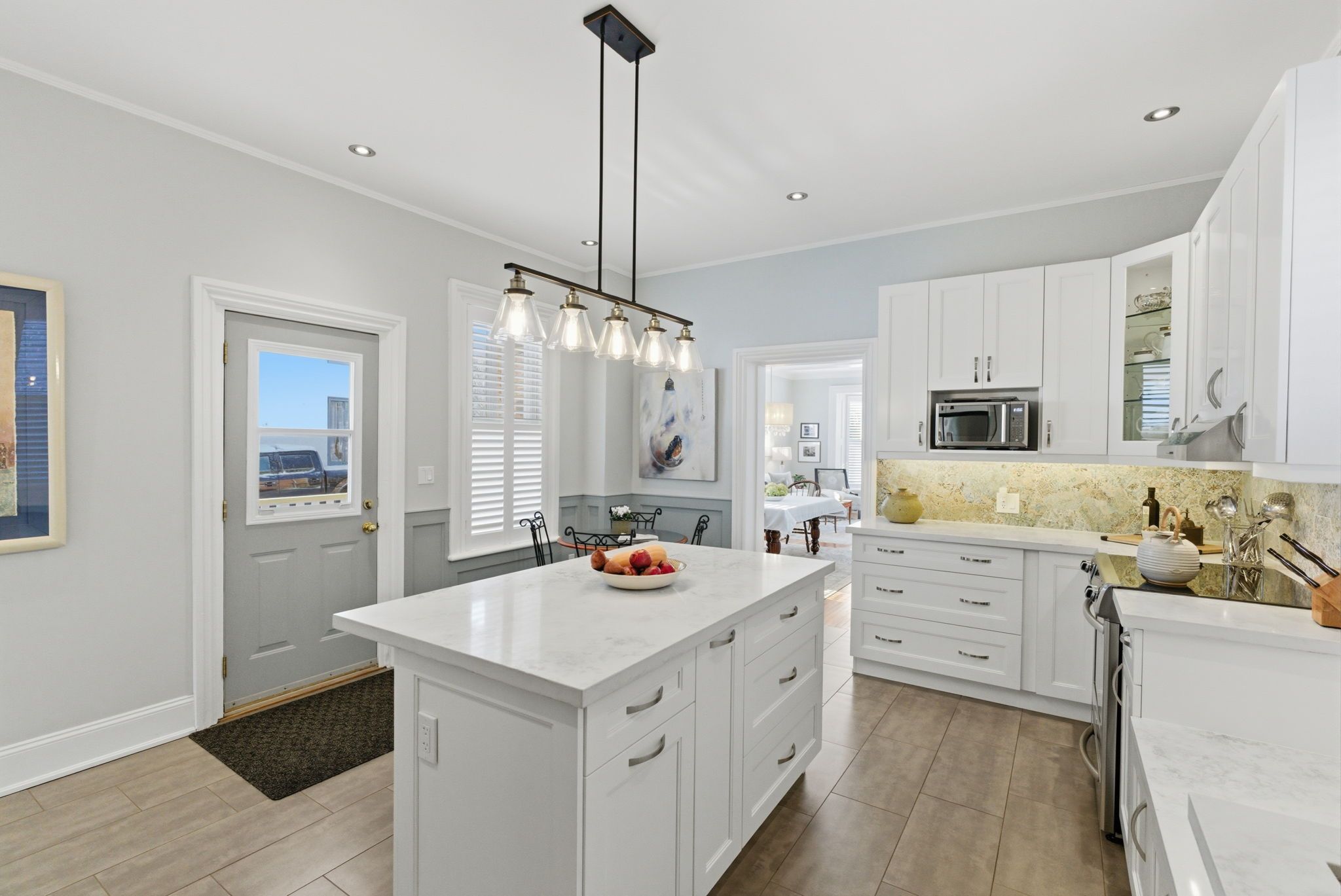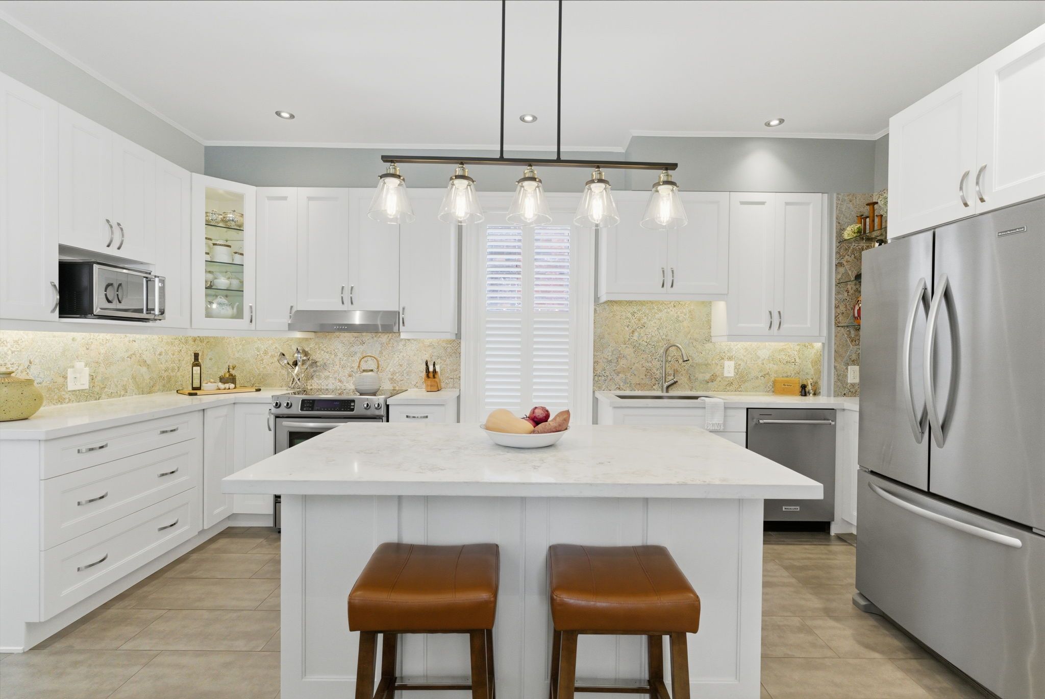 • New custom kitchen and California shutters added for contemporary comfort.