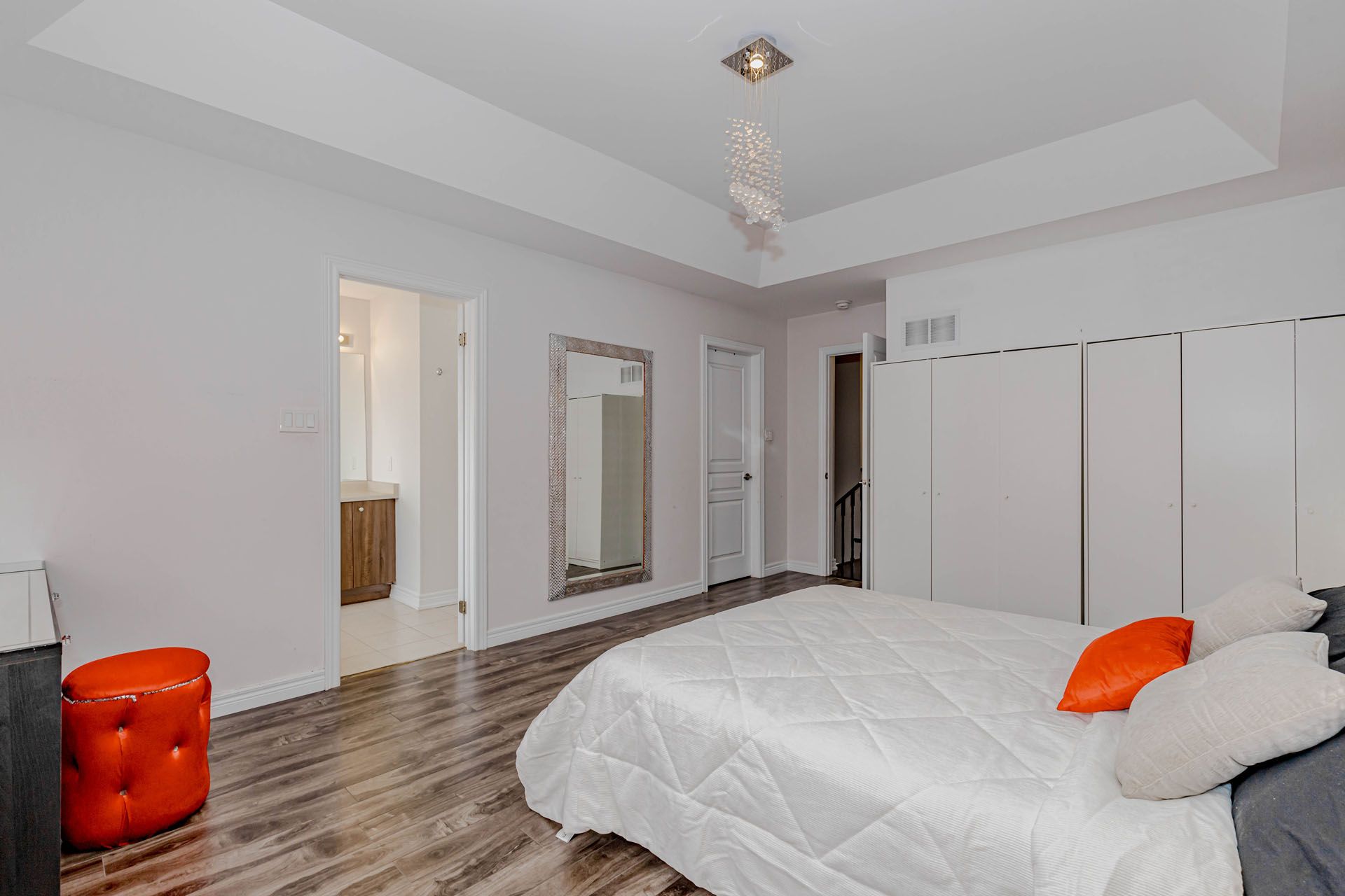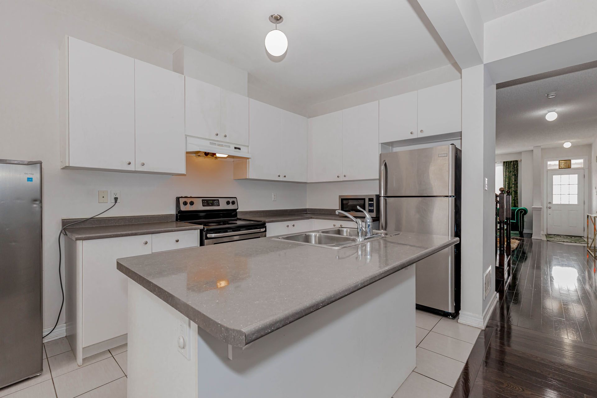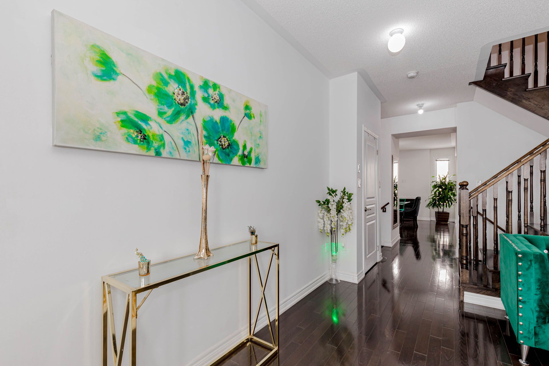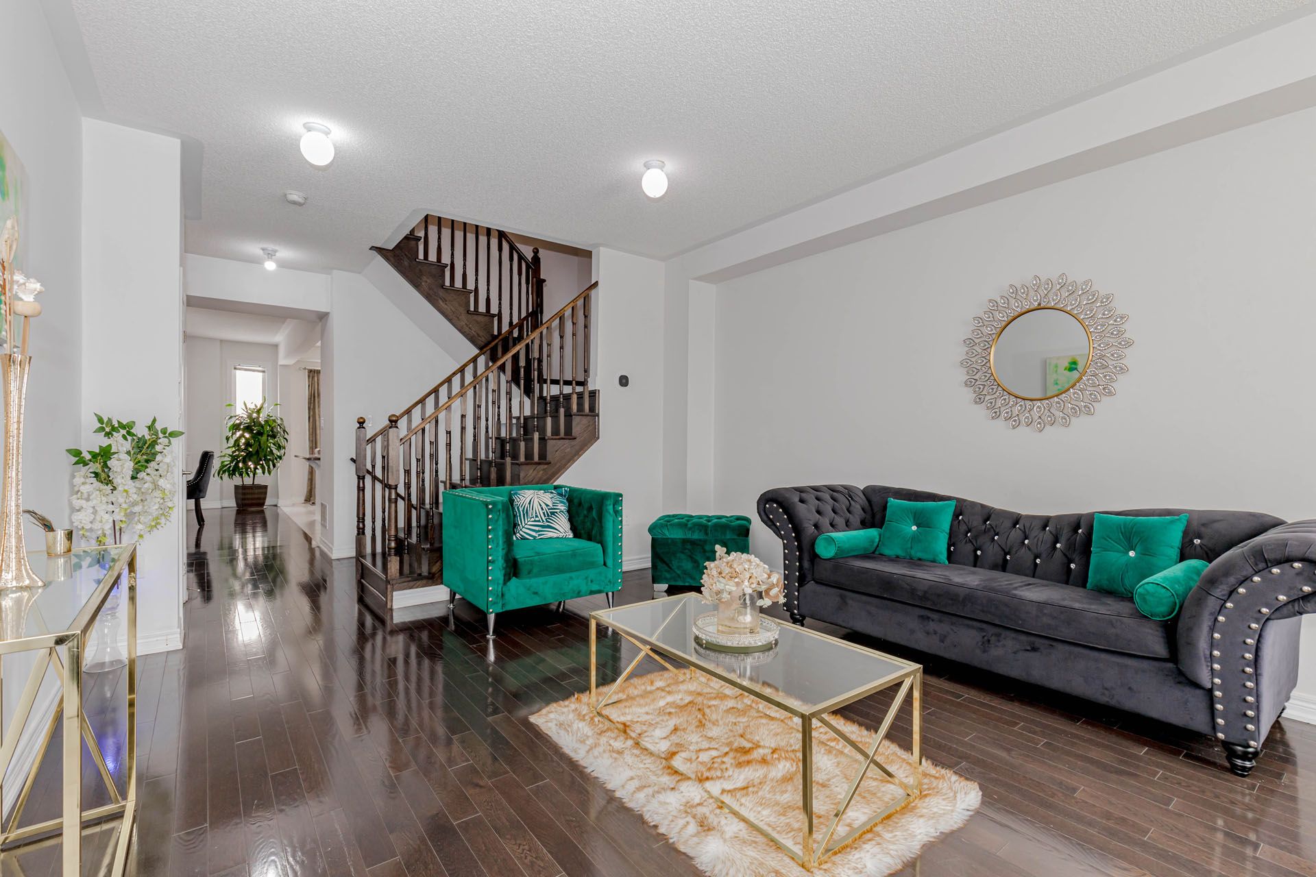 • Open-concept layout with modern hardwood flooring and 9-ft ceilings.