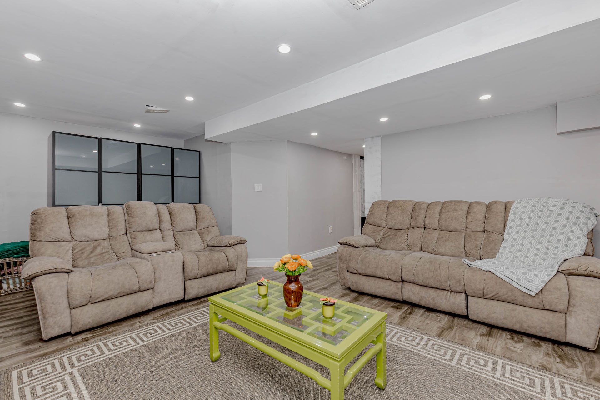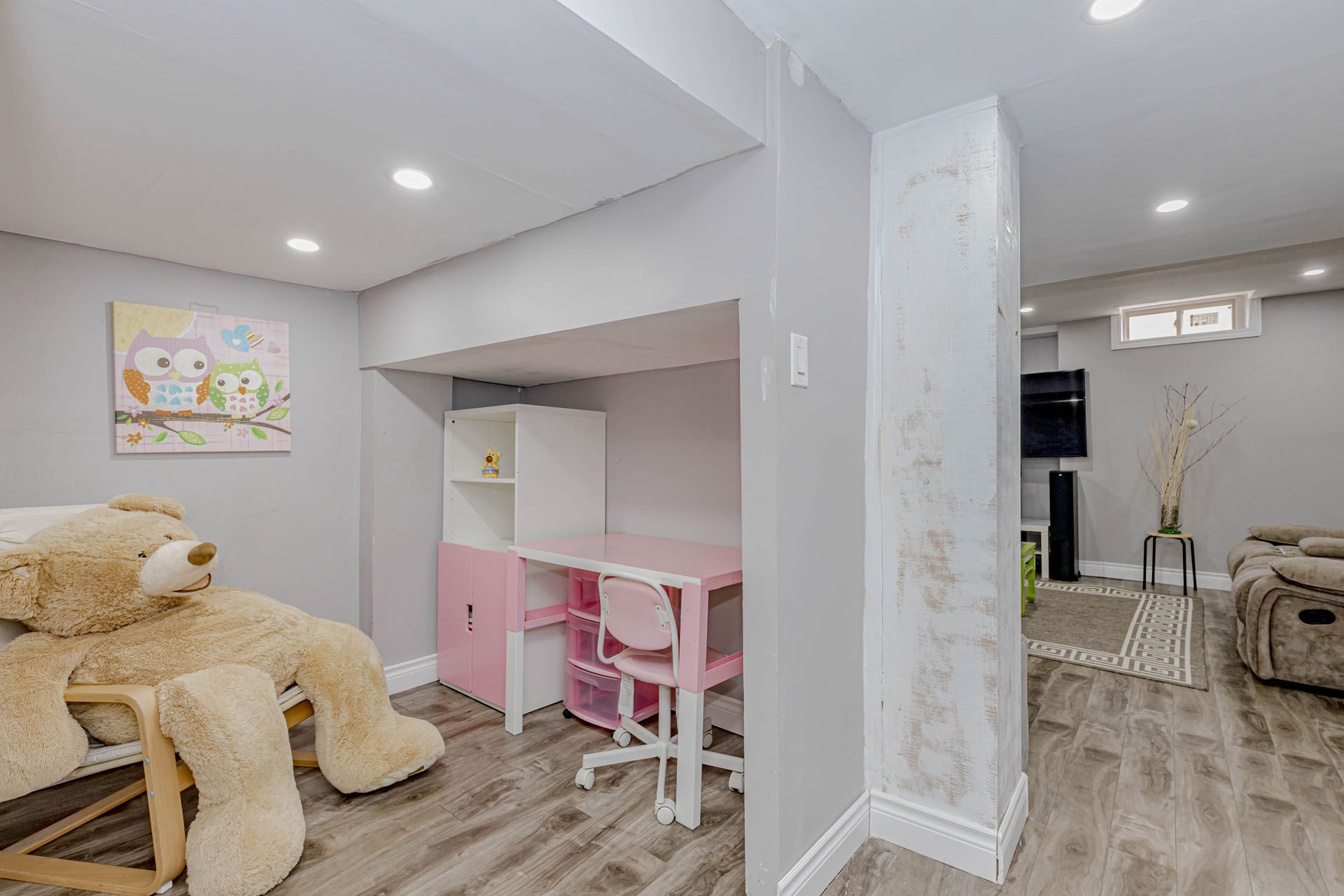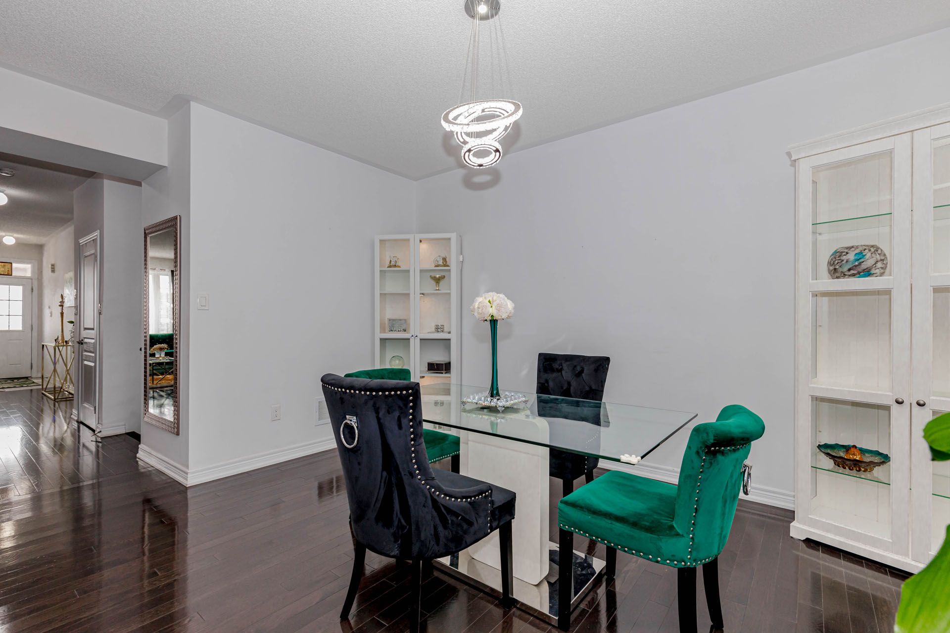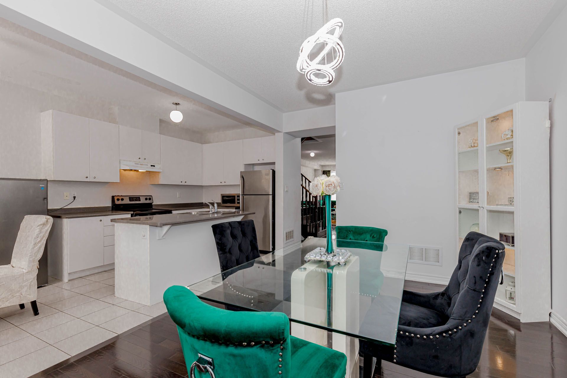 • Open-concept layout with modern hardwood flooring and 9-ft ceilings.