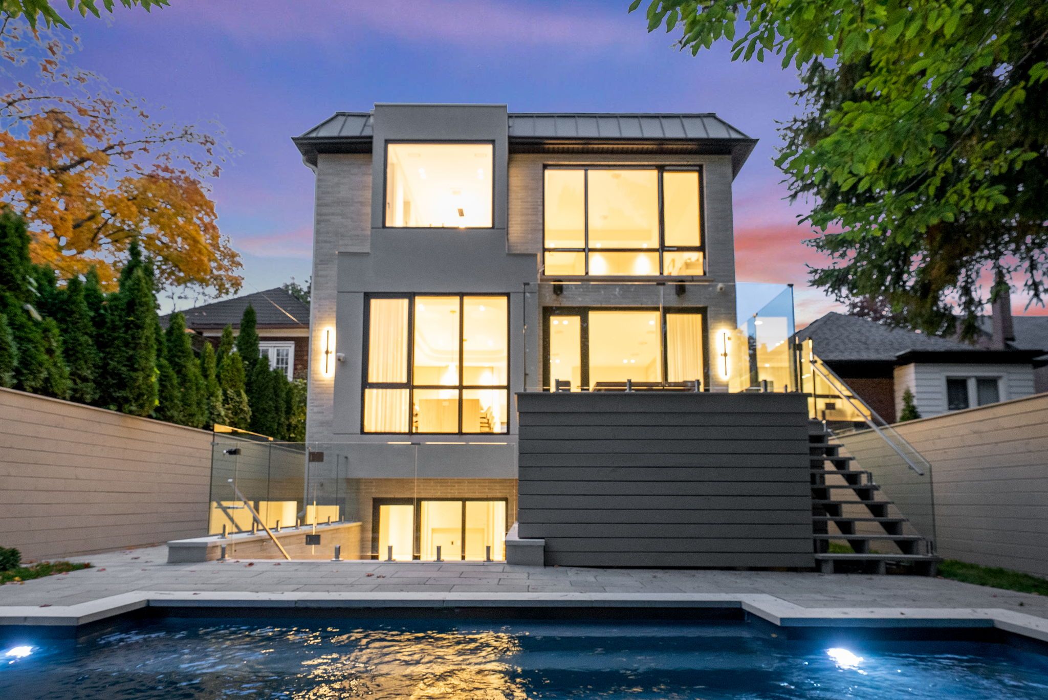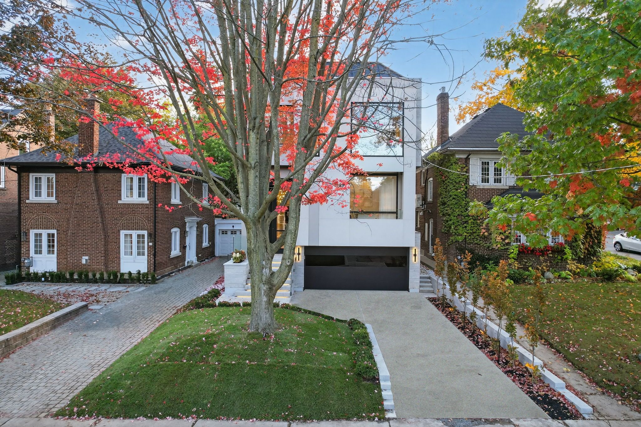 A breathtaking two-story custom built residence, an incredible achievement in modern luxury. Impeccably curated finishes throughout combined with coveted control4 automation. Imposing modern exterior includes snow-melting 3-car private drive and custom floating concrete stairway entrance. Interior features soaring ceilings complemented by floor-to-ceiling windows throughout to flood every space in natural light, bespoke modern lighting and custom built-ins. Main floor boasts open concept living and dining room, office/library, stunning powder room, gourmet kitchen with walkout to rear oasis with salt water pool and impeccable landscaping, family room with gas fireplace and sweeping modern white oak and acrylic staircase with access to the 2nd floor and lower level. 2nd floor features 2nd floor laundry room, 3 spacious bedrooms with ensuites plus a luxurious primary bedroom suite with spa-like 7-piece ensuite and sprawling open concept dressing room. Lower mezzanine level mudroom provides access to built-in heated 2-car garage and stairway down to lower level complete with stunning wet bar with lounge and 2-sided gas fireplace, rec room with walk-up to rear garden, nanny suite, and lower level laundry. A truly masterfully planned residence designed for luxury and sophisticated comfort. Ideally located in the heart of prestigious lawrence park south near top-ranked schools and surrounded by the best of midtown toronto with the convenience of effortless commuting.
