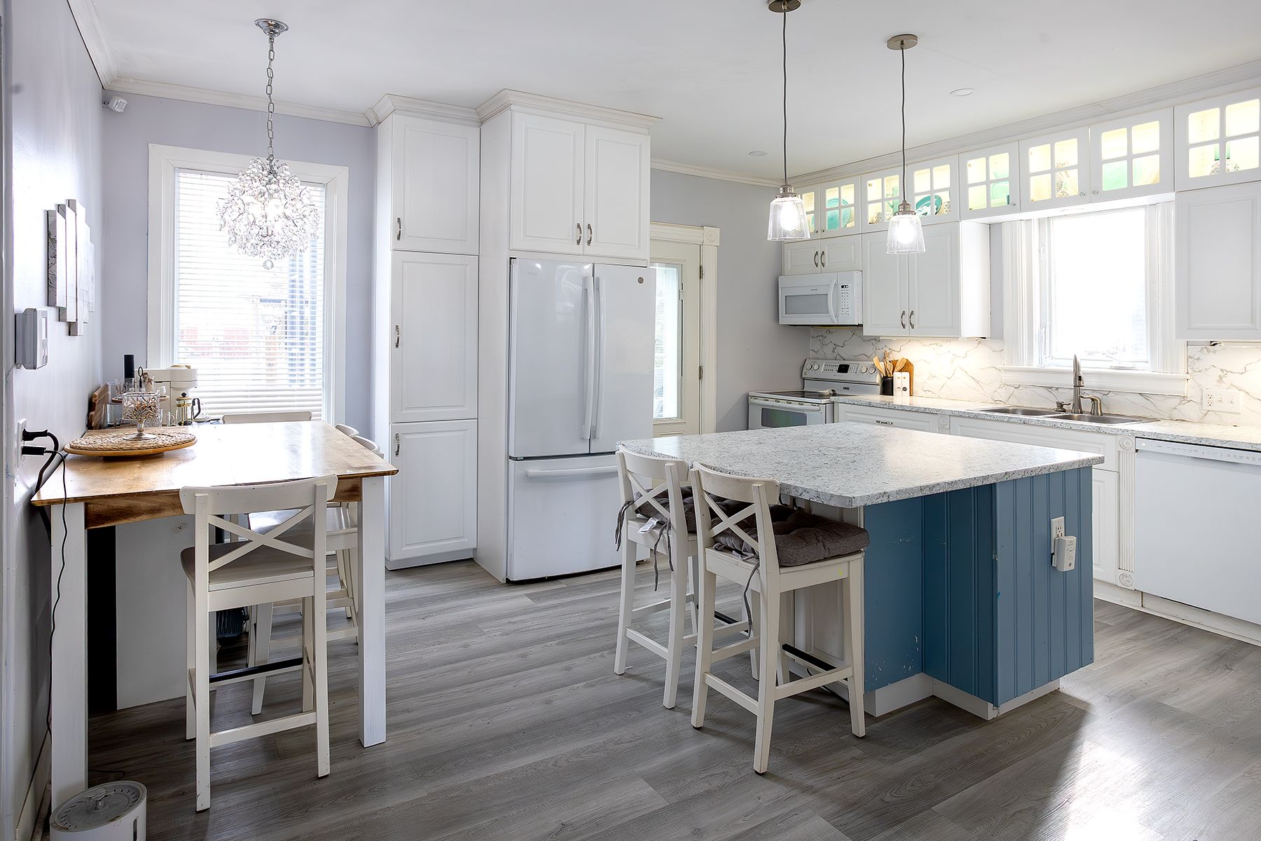 Step into timeless charm and spacious comfort in this beautiful victorian home offering a multitude of spacious rooms, soaring ceilings, and an abundance of windows that fill every space with natural light, creating a bright and cheerful atmosphere throughout. The character of the home is evident with original pine floors featured in many rooms, adding warmth and historic appeal that perfectly complements the classic architecture. The beautifully renovated kitchen provides a wonderful space for cooking and gathering, with convenient access to the backyard and bbq area-ideal for summer entertaining or relaxing with family and friends. Step outside to enjoy the large fenced yard, offering plenty of space for children, pets, gardening, or outdoor recreation. Inside, the home continues to impress with generous living areas, including a welcoming living room highlighted by a stunning bay window, bringing in natural light and adding to the home's character. The spacious primary bedroom also features its own bay window, creating a cozy yet airy retreat. Location is another wonderful advantage of this property. With recreation and the st. Lawrence river just one street over, you'll enjoy easy access to boating, swimming, and waterfront leisure, and the iroquois locks, making it perfect for those who love the outdoors and scenic surroundings. Combining historic beauty, thoughtful updates, and a fantastic location, this charming victorian home offers space, character, and lifestyle all in one property.