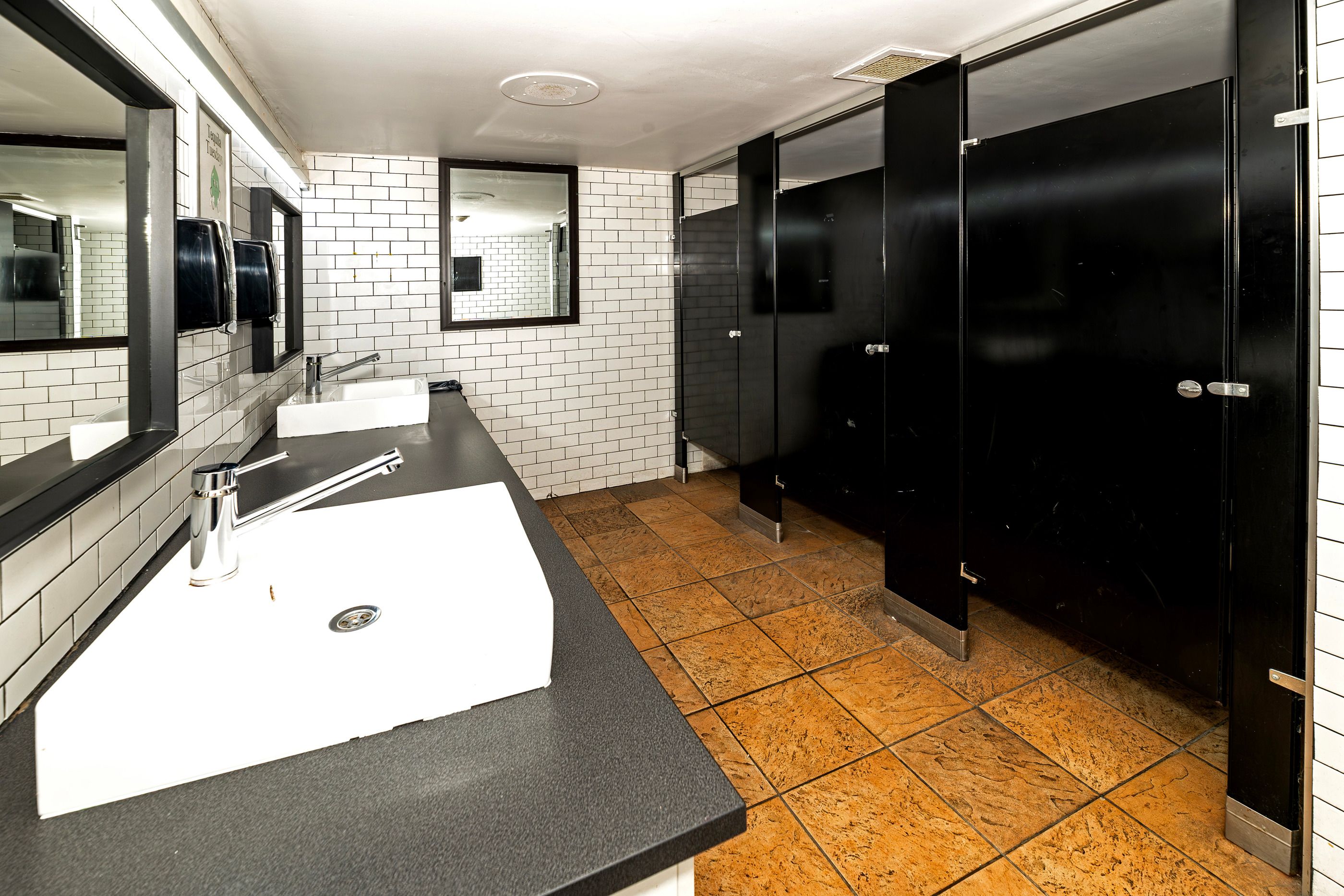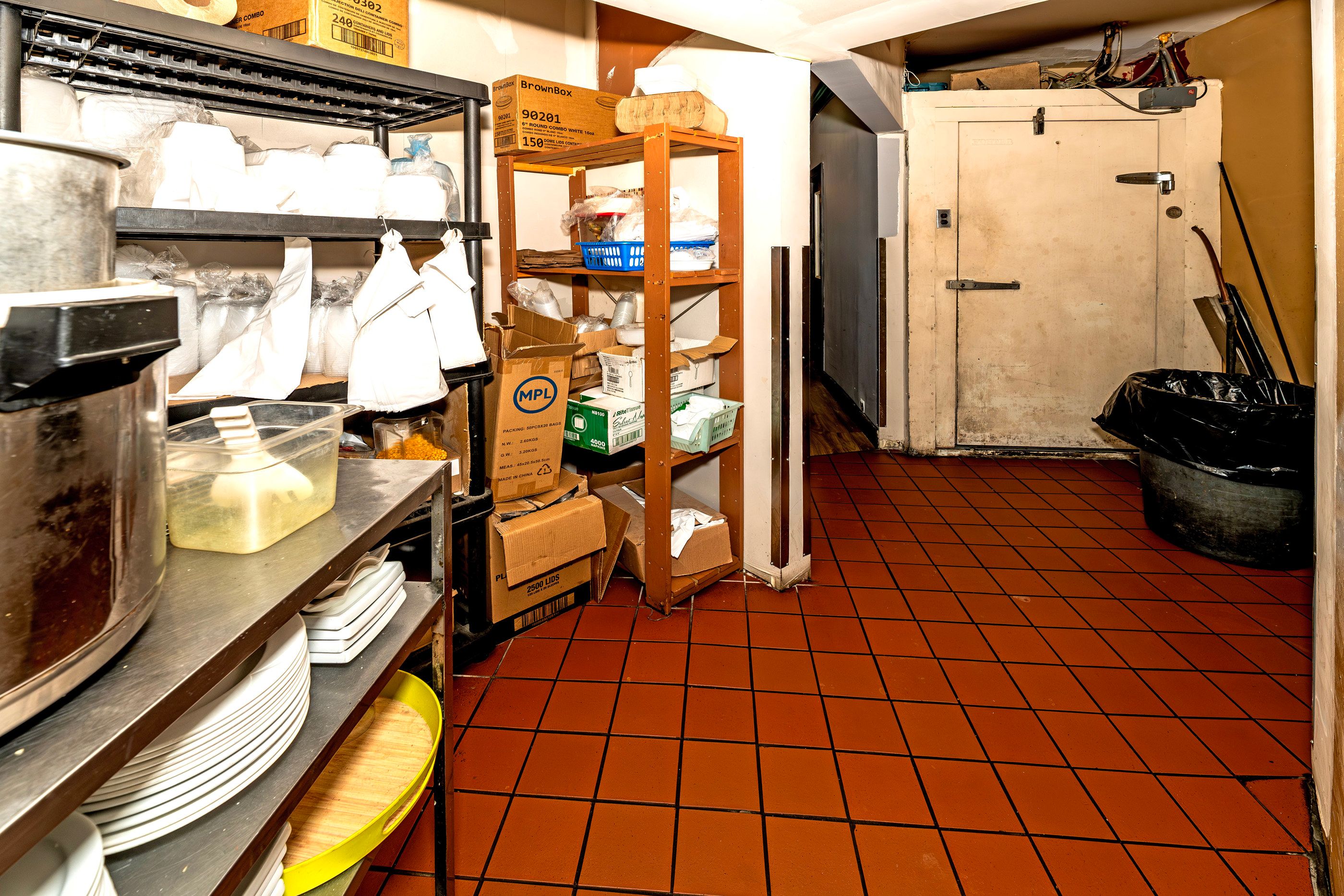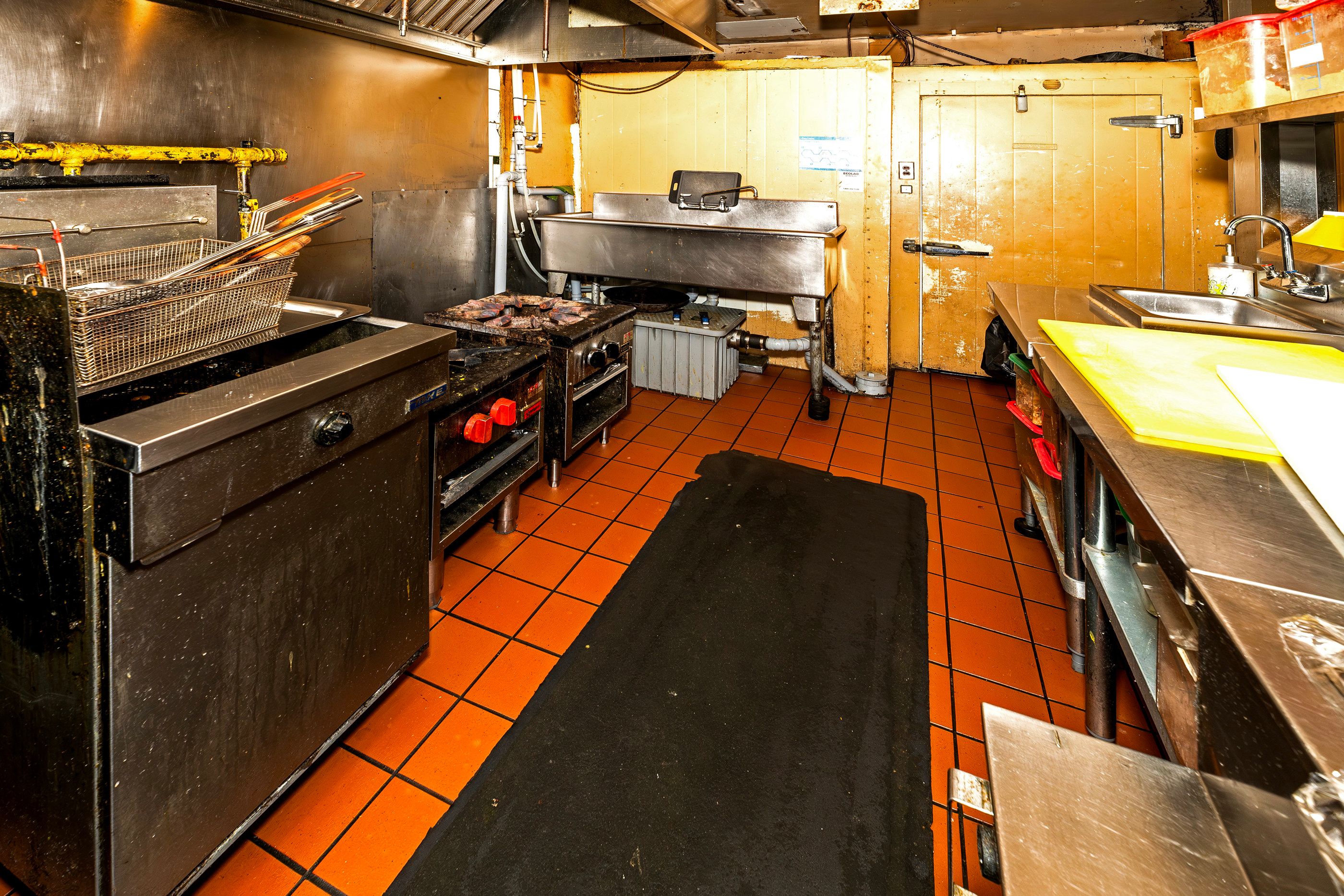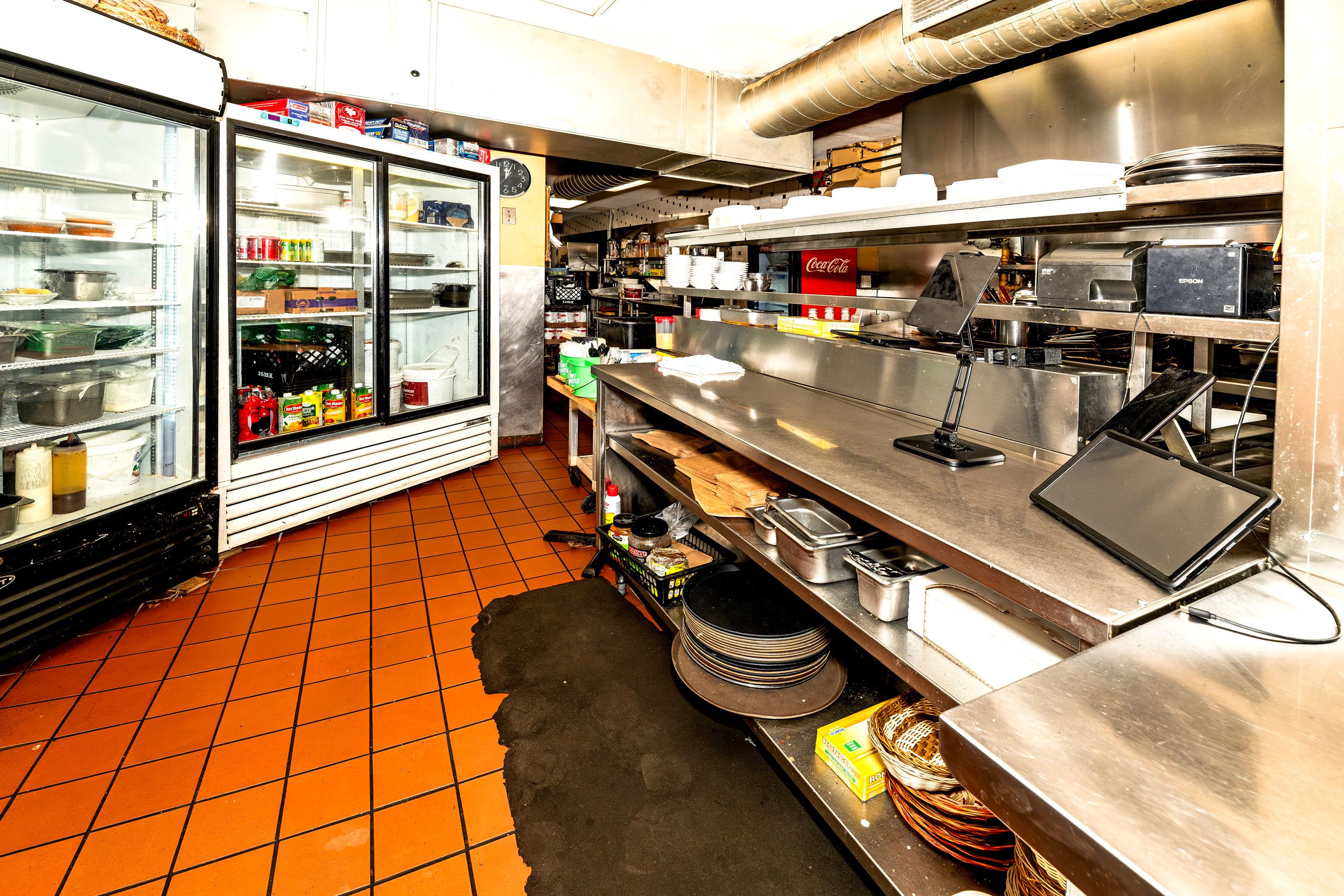 • Well-equipped commercial kitchen featuring an impressive 18-foot ceiling.