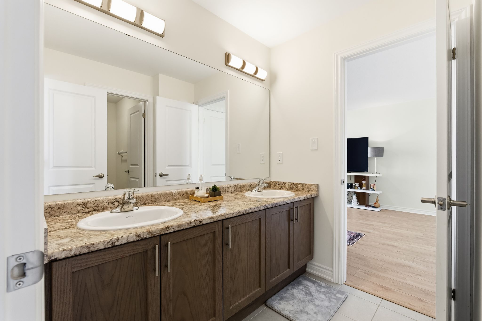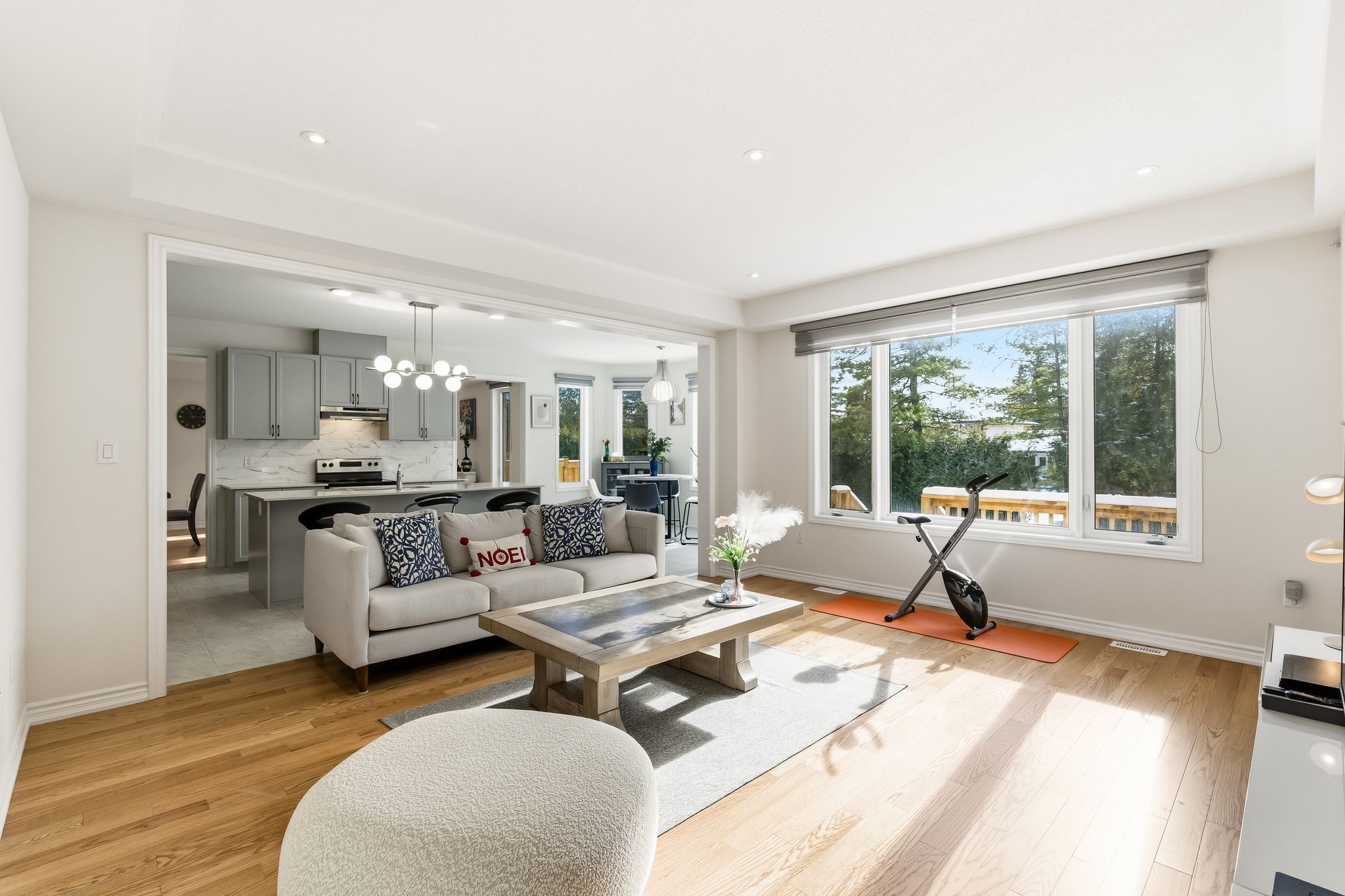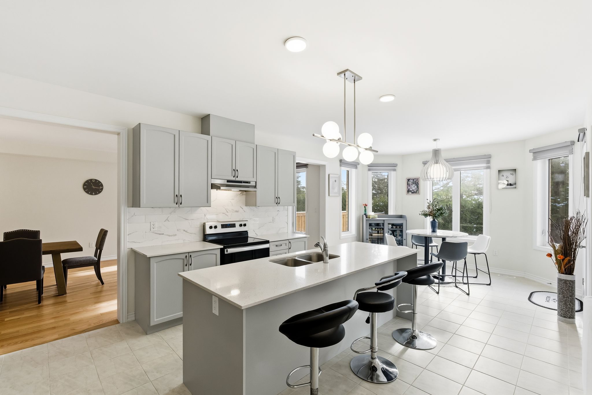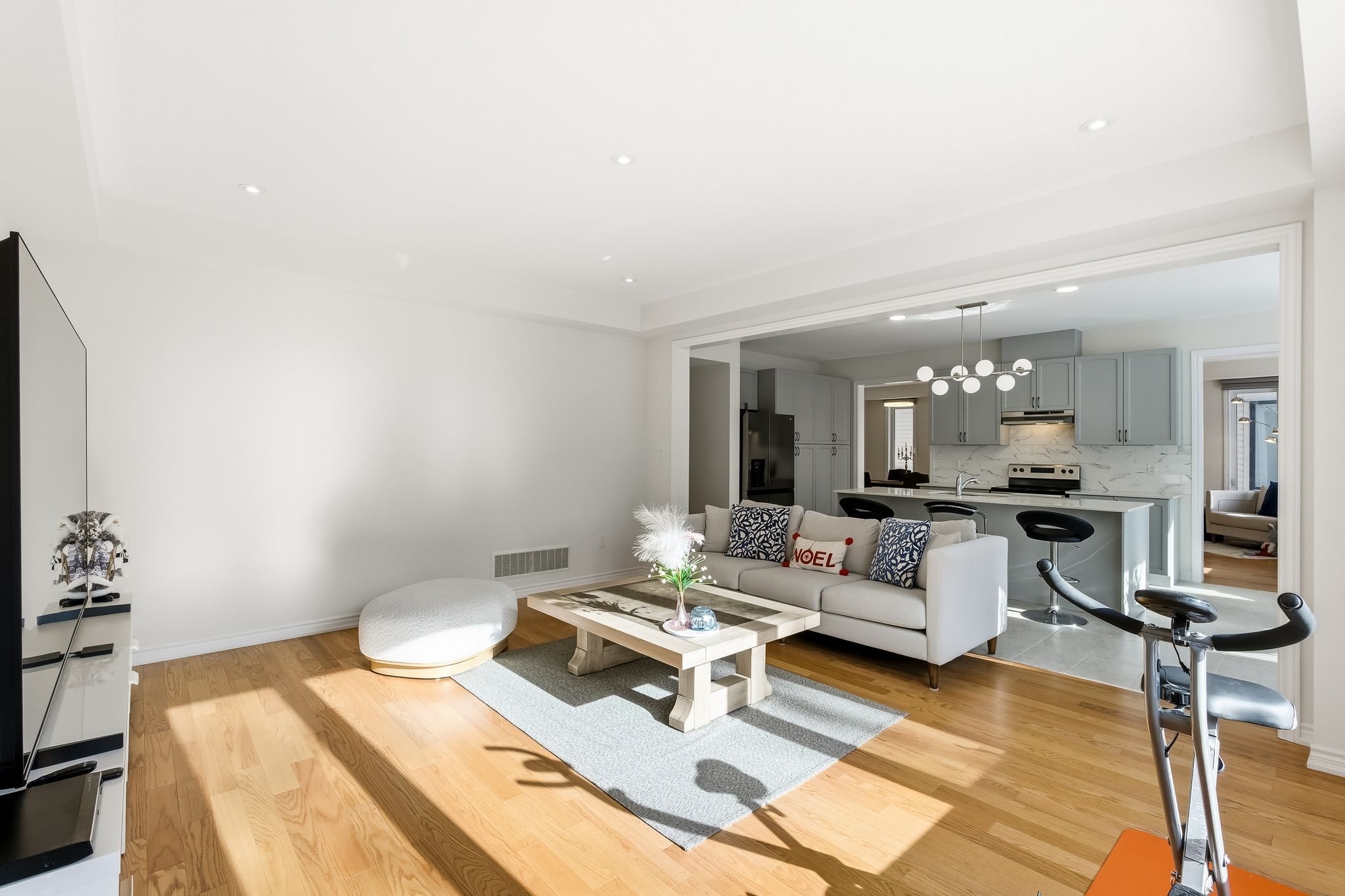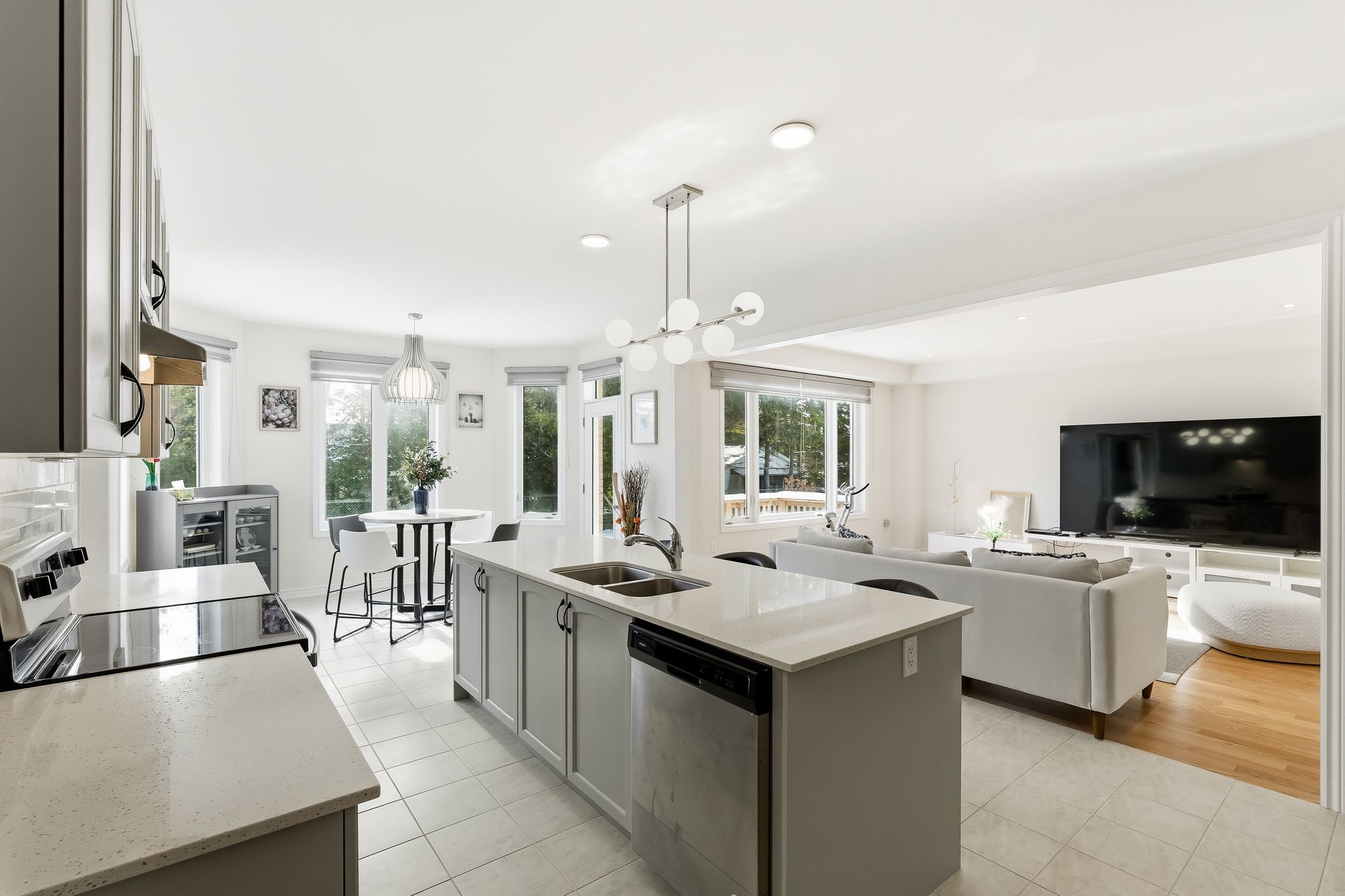 • Chef-inspired kitchen with quartz countertops and open-concept layout.