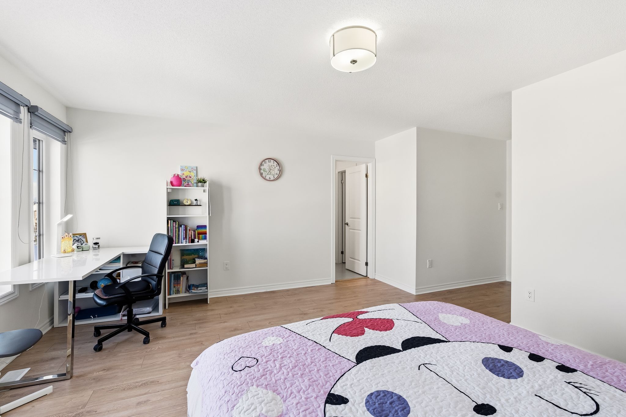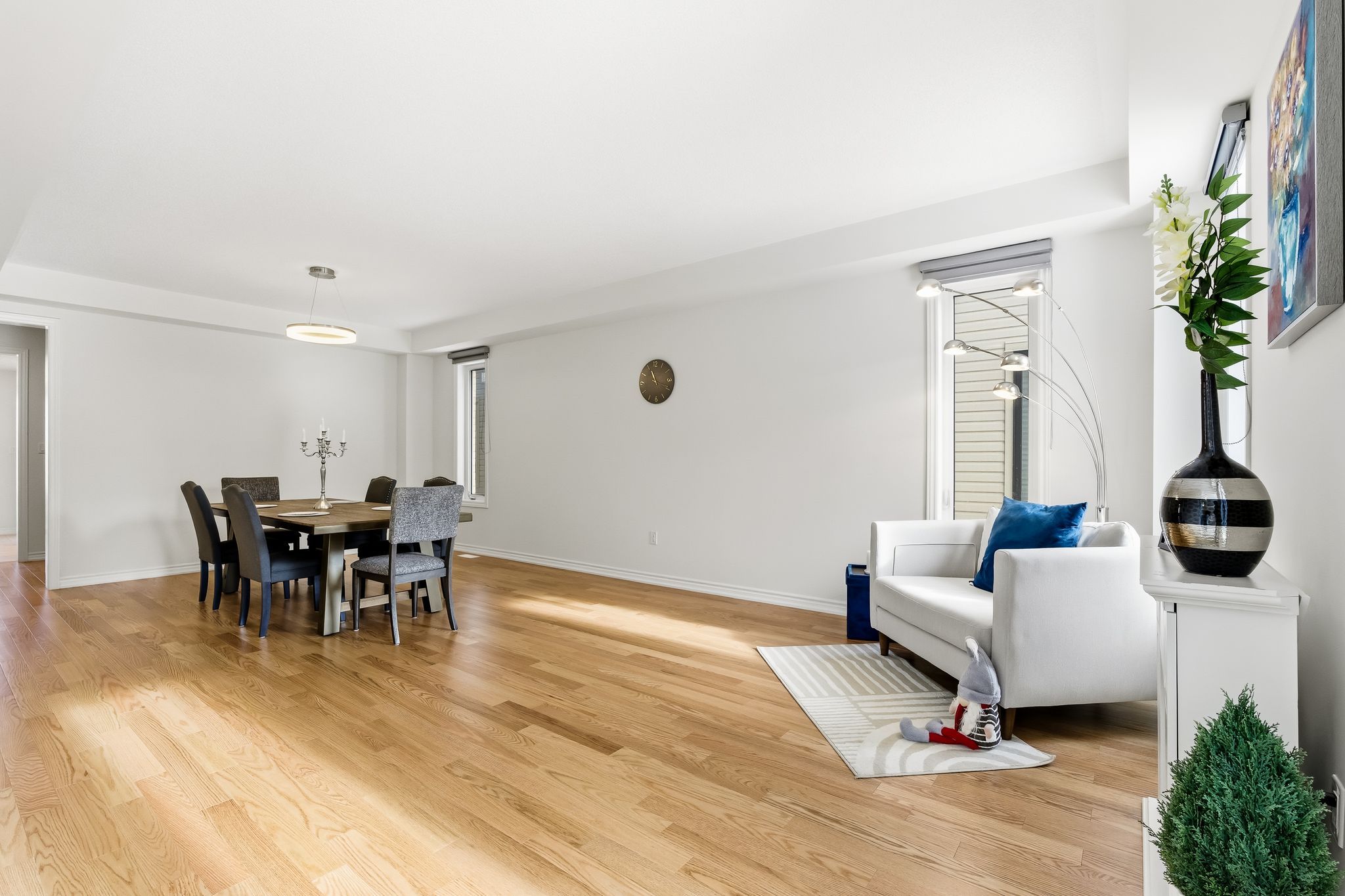 • Elegant design featuring 9-ft ceilings and hardwood floors throughout.