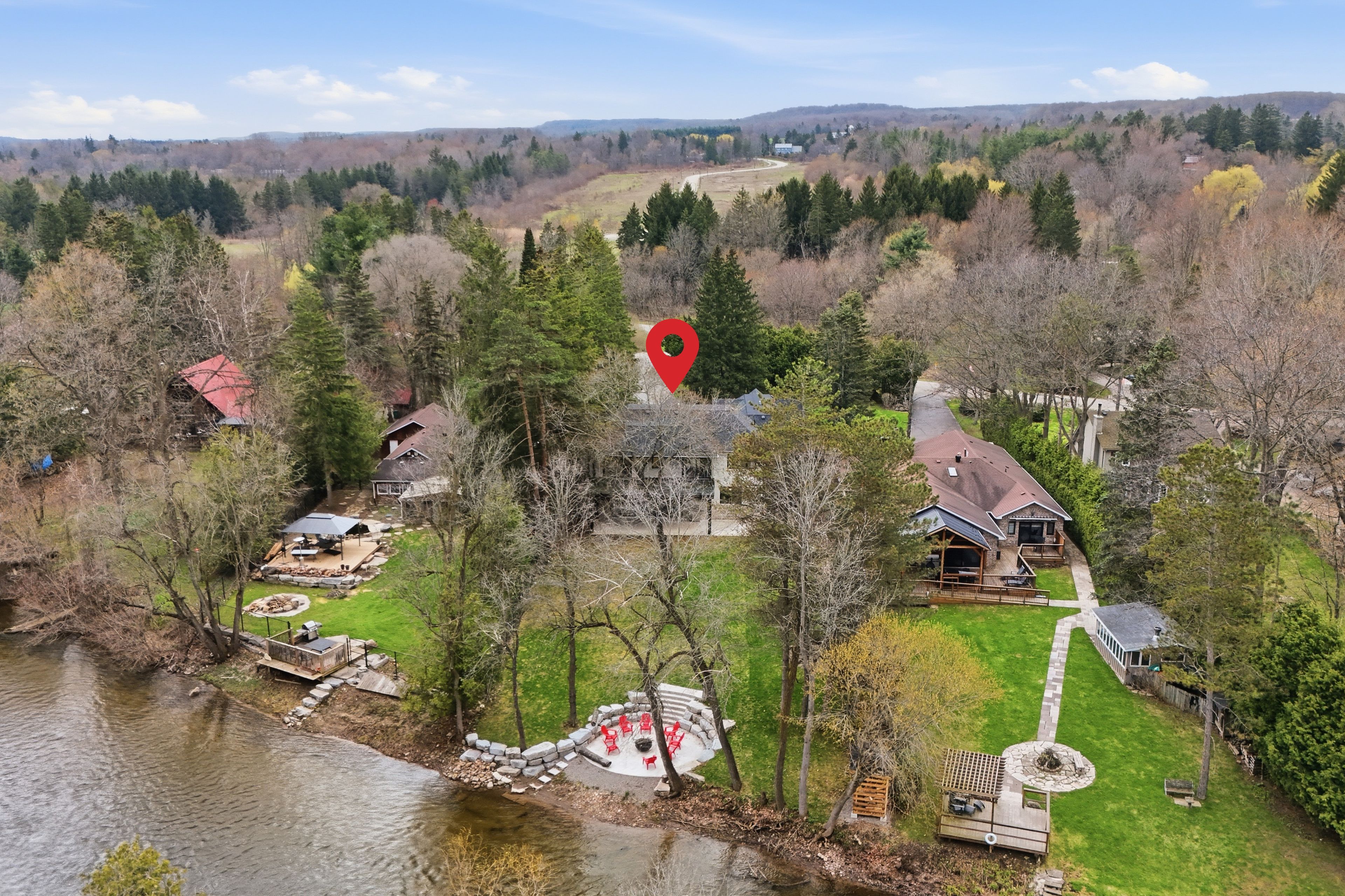 Welcome to 39 credit road - a truly exceptional custom-built estate tucked away on a quiet dead-end street in the charming village of cheltenham. Set on a rare 370-foot deep lot, spanning almost an acre of breathtaking property backing directly onto the credit river, this one-of-a-kind home offers the perfect blend of privacy, luxury, and natural beauty. A long, private driveway sets the tone as you arrive, leading to an impressive residence designed for both everyday living and elevated entertaining. Inside, you'll find 3,500 sq. Ft. Of thoughtfully curated living space, featuring four spacious bedrooms and an expansive open-concept layout. Wide-plank white oak hardwood flooring flows throughout, adding warmth and sophistication to every room. The heart of the home is a stunning chef's kitchen, complete with premium thermador appliances, a large centre island with quartz countertops, custom cabinetry, and a spacious kitchen pantry with oak cabinetry, a true showpiece for those who love to cook and entertain. Everyday convenience is elevated with a functional mudroom offering direct access from the garage, along with a well-appointed laundry area. The home also features a bonus recreation space designed for ultimate comfort and entertaining, complete with a wet bar, secondary washer and dryer, and a fully integrated steam wardrobe, a luxurious addition. A standout feature is the expansive upper-level deck spanning nearly the entire width of the home, complete with sleek glass railings for unobstructed views of the stunning backyard. It's the perfect spot to enjoy your morning coffee or unwind while taking in the peaceful, natural surroundings. Seamless indoor-outdoor living is achieved with oversized custom sliding doors that open to a covered porch, creating the perfect setting for al fresco dining. The backyard is nothing short of spectacular. This is more than a home, it's a lifestyle property that must be experienced in person to be fully appreciated.