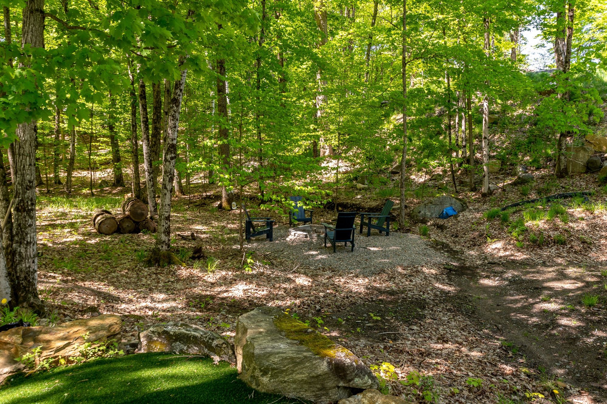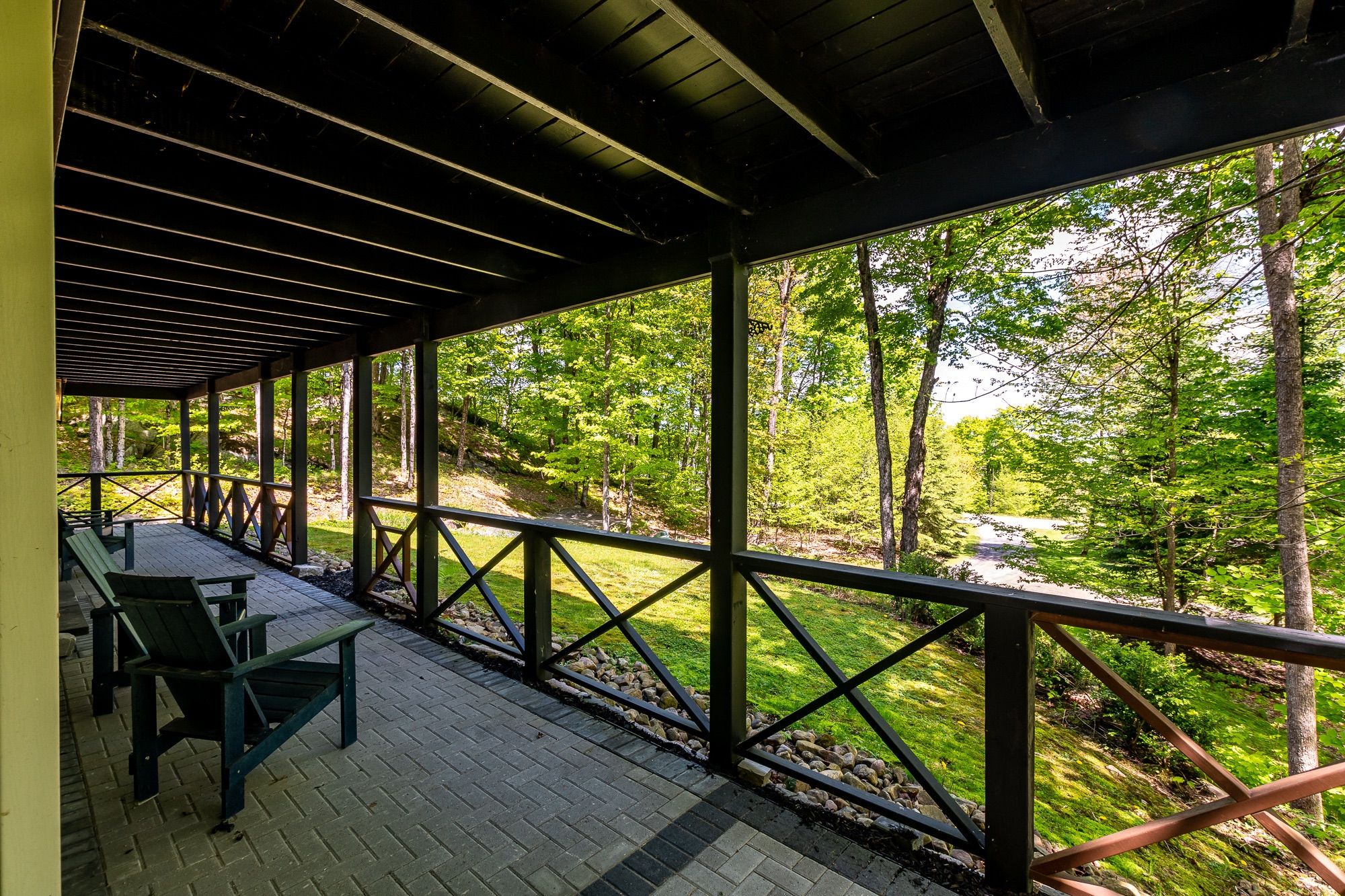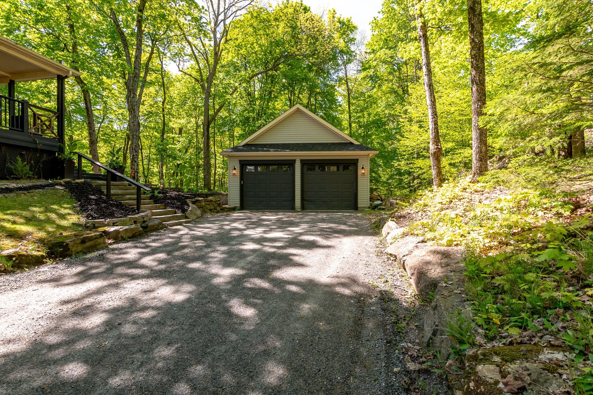 Tucked into the peaceful woodland heights community, this striking executive home offers the perfect blend of privacy, space, & refined living. A meandering driveway winds past lush, irrigated gardens, arriving at a home that immediately impresses with its stately wraparound porch, abundant parking, & detached double garage. Surrounded by tall trees, this property is ideal for those seeking a quiet retreat just minutes from town conveniences. Inside, the home spans 3 thoughtfully designed levels. The main floor is bright & inviting, with large windows drawing the surrounding woods in from every angle. The living room, anchored by a classic wood-burning fireplace, opens to generous dining & office spaces, all flowing effortlessly into a showpiece kitchen. Perfect for the passionate cook or the frequent host, it features an oversized island with a prep sink & teppanyaki grill, a stove with propane cooktop, pot filler tap, granite countertops, & tons of room for gathering with friends & family. A screened-in porch offers a peaceful transition between indoors & out, while the expansive wraparound porch invites you to linger & take in the captivating view of peninsula lake, beautifully framed by mature trees. A convenient 2pc powder room completes the main floor. Upstairs, 2 bright guest bedrooms, currently merged, share a 4pc bath. The spacious primary suite offers a private retreat with a 5pc ensuite & a large dressing room that could easily convert to a 4th bedroom. The finished walkout basement adds even more versatility, with a large recreation room, home gym (or 5th bedroom), laundry, a 2pc washroom, & ample storage. Step outside & practice your short game on the private putting green, enjoy evenings around the fire pit, or unwind beside the tranquil water feature. Just minutes from multiple golf courses, a ski resort, & the nearby 140 ac nature sanctuary with 4 km of trails. This property offers the perfect backdrop for a life well-lived, indoors & out.