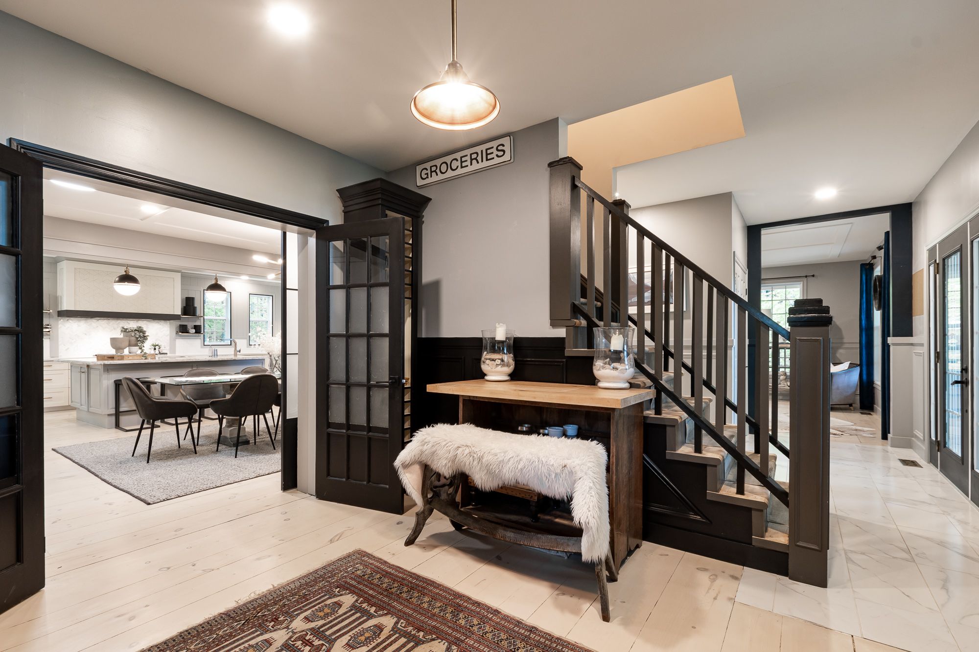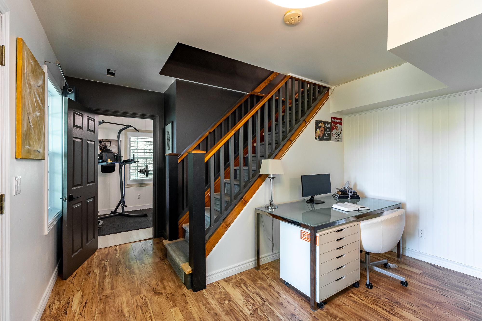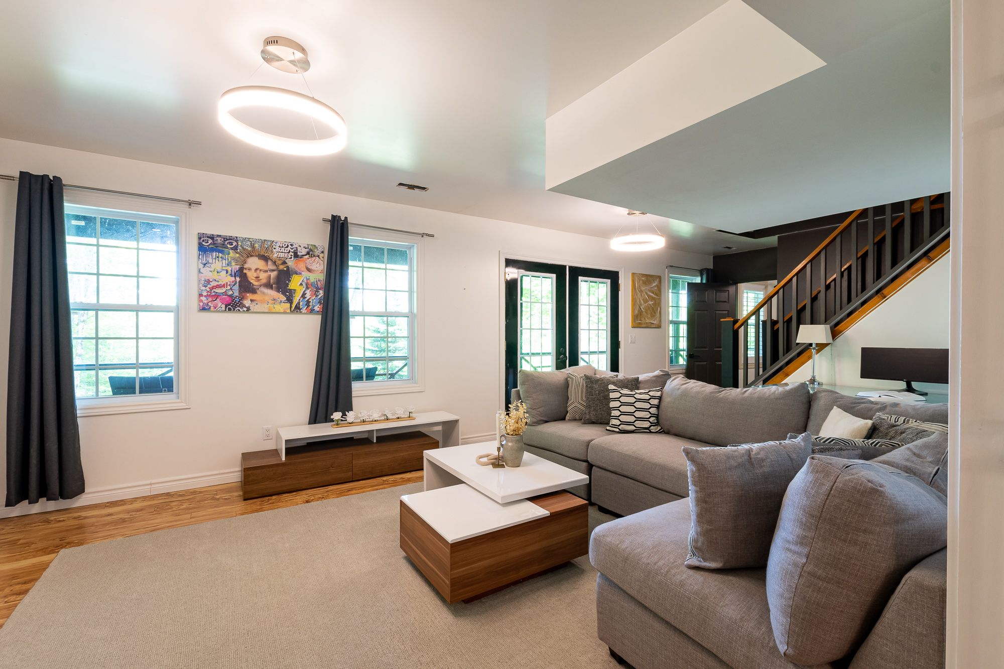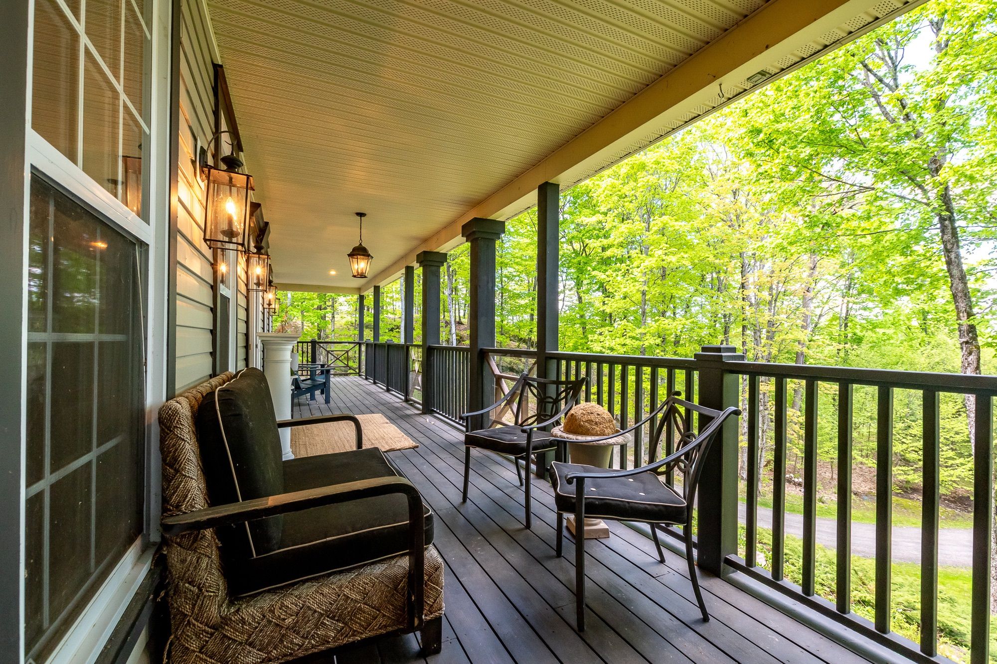 Tucked into the peaceful woodland heights community, this striking executive home offers the perfect blend of privacy, space, & refined living. A meandering driveway winds past lush, irrigated gardens, arriving at a home that immediately impresses with its stately wraparound porch, abundant parking, & detached double garage. Surrounded by tall trees, this property is ideal for those seeking a quiet retreat just minutes from town conveniences. Inside, the home spans 3 thoughtfully designed levels. The main floor is bright & inviting, with large windows drawing the surrounding woods in from every angle. The living room, anchored by a classic wood-burning fireplace, opens to generous dining & office spaces, all flowing effortlessly into a showpiece kitchen. Perfect for the passionate cook or the frequent host, it features an oversized island with a prep sink & teppanyaki grill, a stove with propane cooktop, pot filler tap, granite countertops, & tons of room for gathering with friends & family. A screened-in porch offers a peaceful transition between indoors & out, while the expansive wraparound porch invites you to linger & take in the captivating view of peninsula lake, beautifully framed by mature trees. A convenient 2pc powder room completes the main floor. Upstairs, 2 bright guest bedrooms, currently merged, share a 4pc bath. The spacious primary suite offers a private retreat with a 5pc ensuite & a large dressing room that could easily convert to a 4th bedroom. The finished walkout basement adds even more versatility, with a large recreation room, home gym (or 5th bedroom), laundry, a 2pc washroom, & ample storage. Step outside & practice your short game on the private putting green, enjoy evenings around the fire pit, or unwind beside the tranquil water feature. Just minutes from multiple golf courses, a ski resort, & the nearby 140 ac nature sanctuary with 4 km of trails. This property offers the perfect backdrop for a life well-lived, indoors & out.