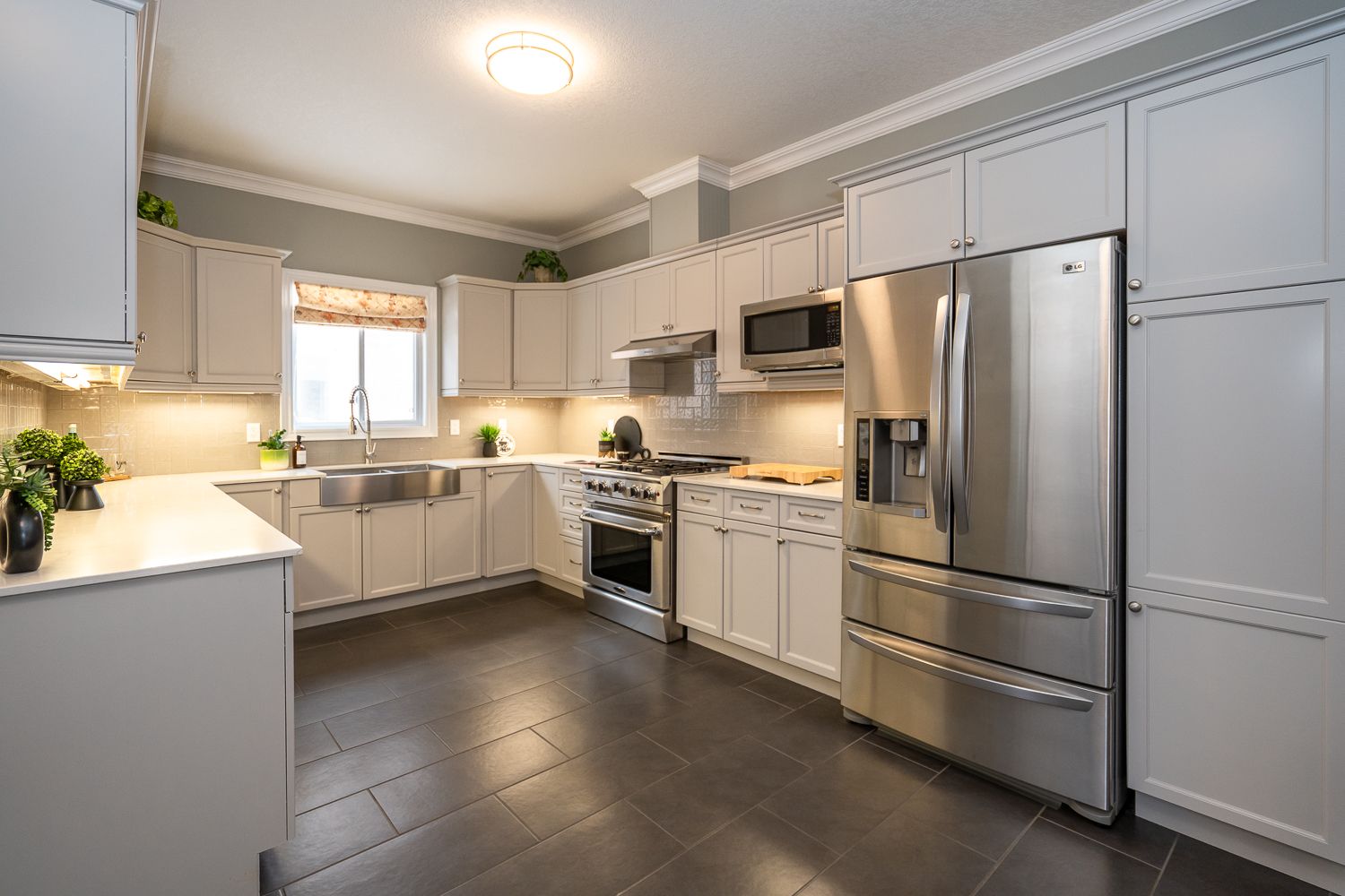 Welcome to this move-in condition bungalow on an oversized mature treed premium sized lot. This extended "black ash" model is much bigger than it looks from the outside and offers beautiful custom upgrades thru-out the entire home and property. The main floor has 9ft ceilings, high profile baseboards, crown molding and beautiful hardwood flooring. An upgraded and extended kitchen featuring quartz counters, backsplash, stainless steel appliances, under cabinet lighting, valance molding, pantry cupboard, dining area and separate large formal living room. Spacious bedroom sizes including the primary bedroom with a walk-in closet and 5pc ensuite. Added conveniences to this level include a main floor laundry room, entrance from home to garage and a separate side entrance down to the lower level for a fantastic in-law potential. The walk-out lower level offers a huge family room with cozy fireplace, 3pc bathroom with walk-in shower and heated flooring plus a walkout to the absolutely beautiful yard boasting a 2-tiered cedar deck, pergola, stone patio, meticulously manicured and maintained lawn, stone walkways and perennial gardens. The lower level also offers loads of storage space and lots of room for an additional bedroom if needed and easily converted to an in-law suite. Enjoy over 2000sqft between the main floor & above grade finished bsmt area providing tons of living space for you and your family! Desirable west end location close to public transit, medical centre, library, alder rec centre, shopping, dining and amenities.