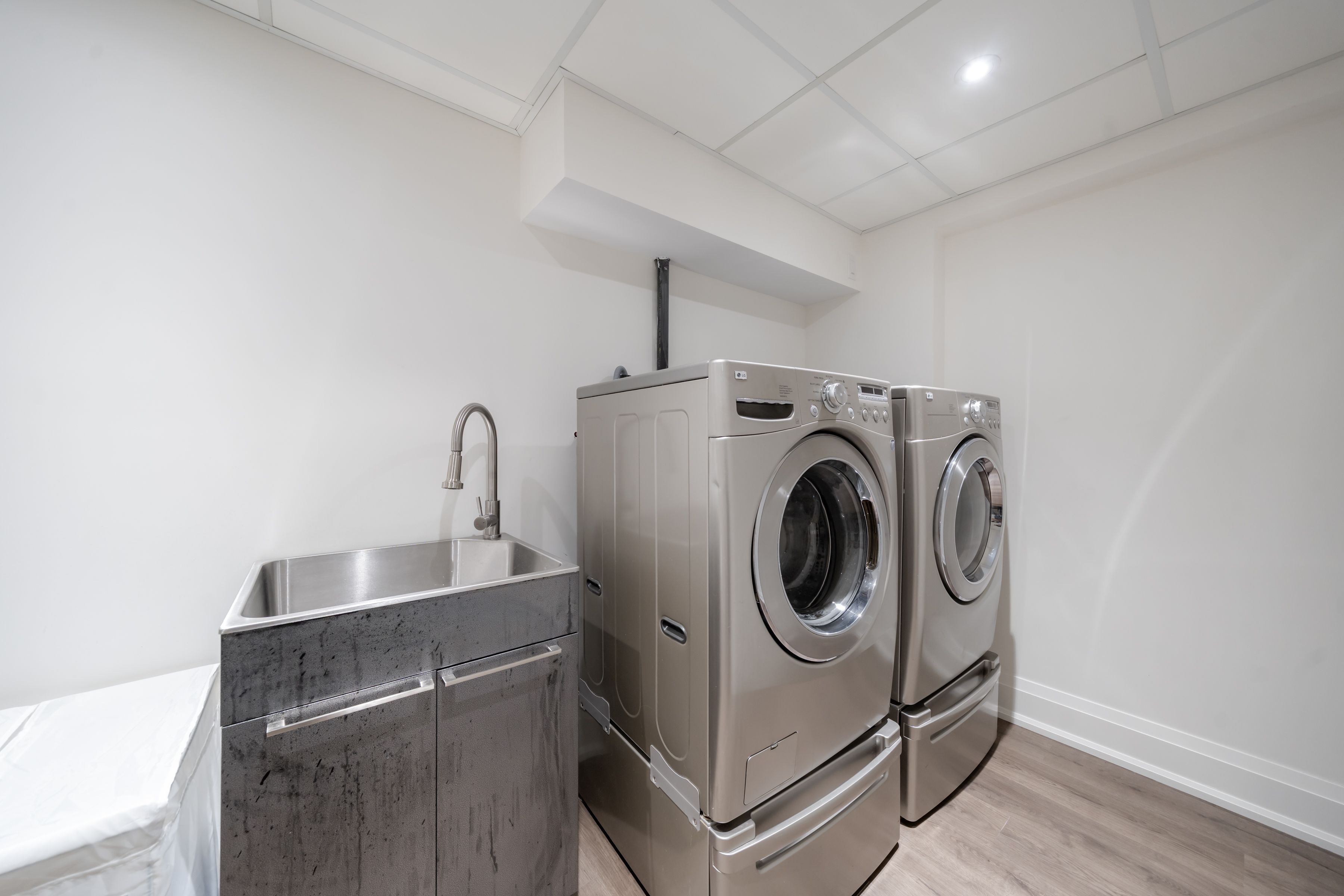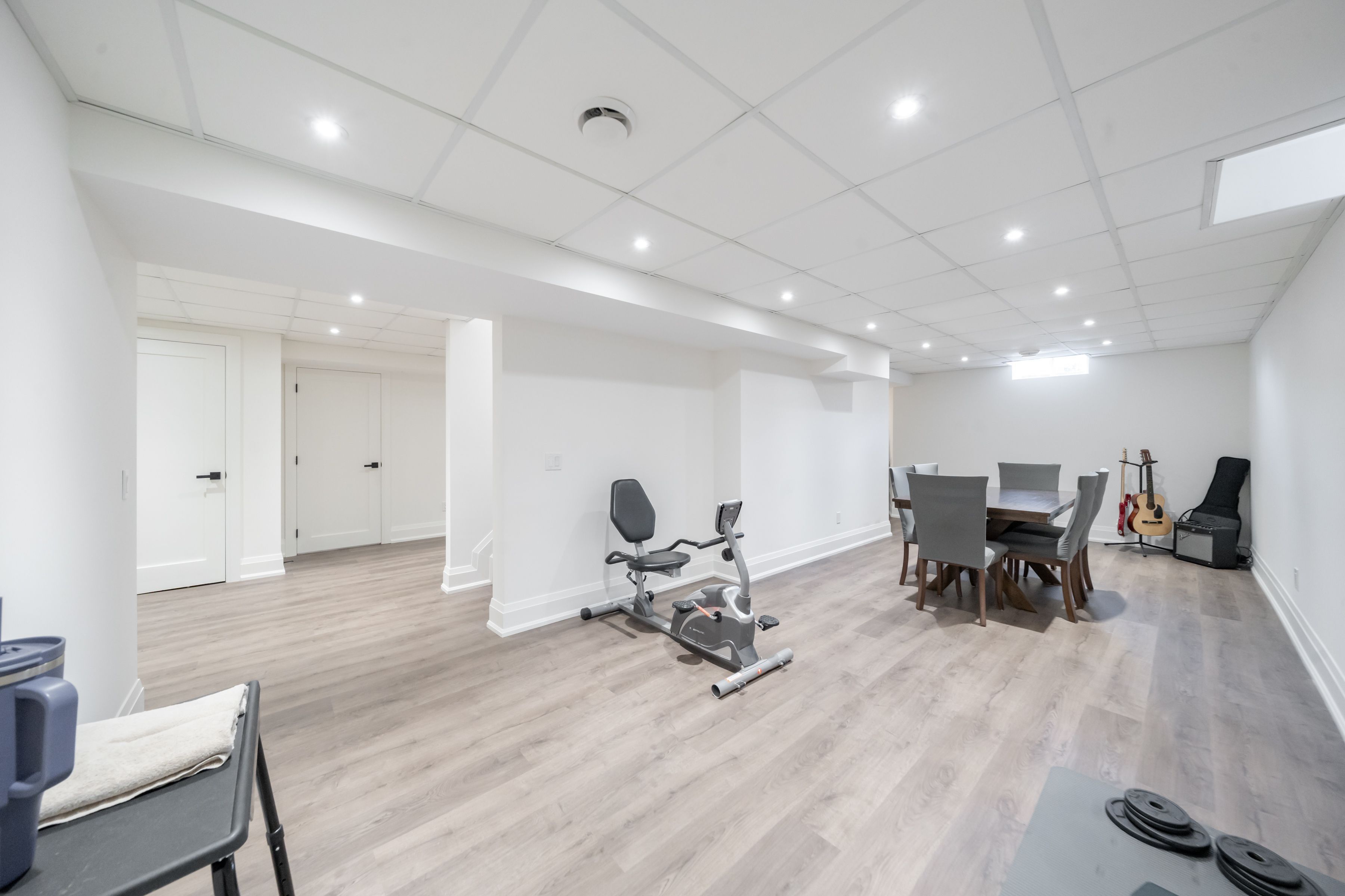 • Finished basement with luxury vinyl flooring and custom built-in office space.