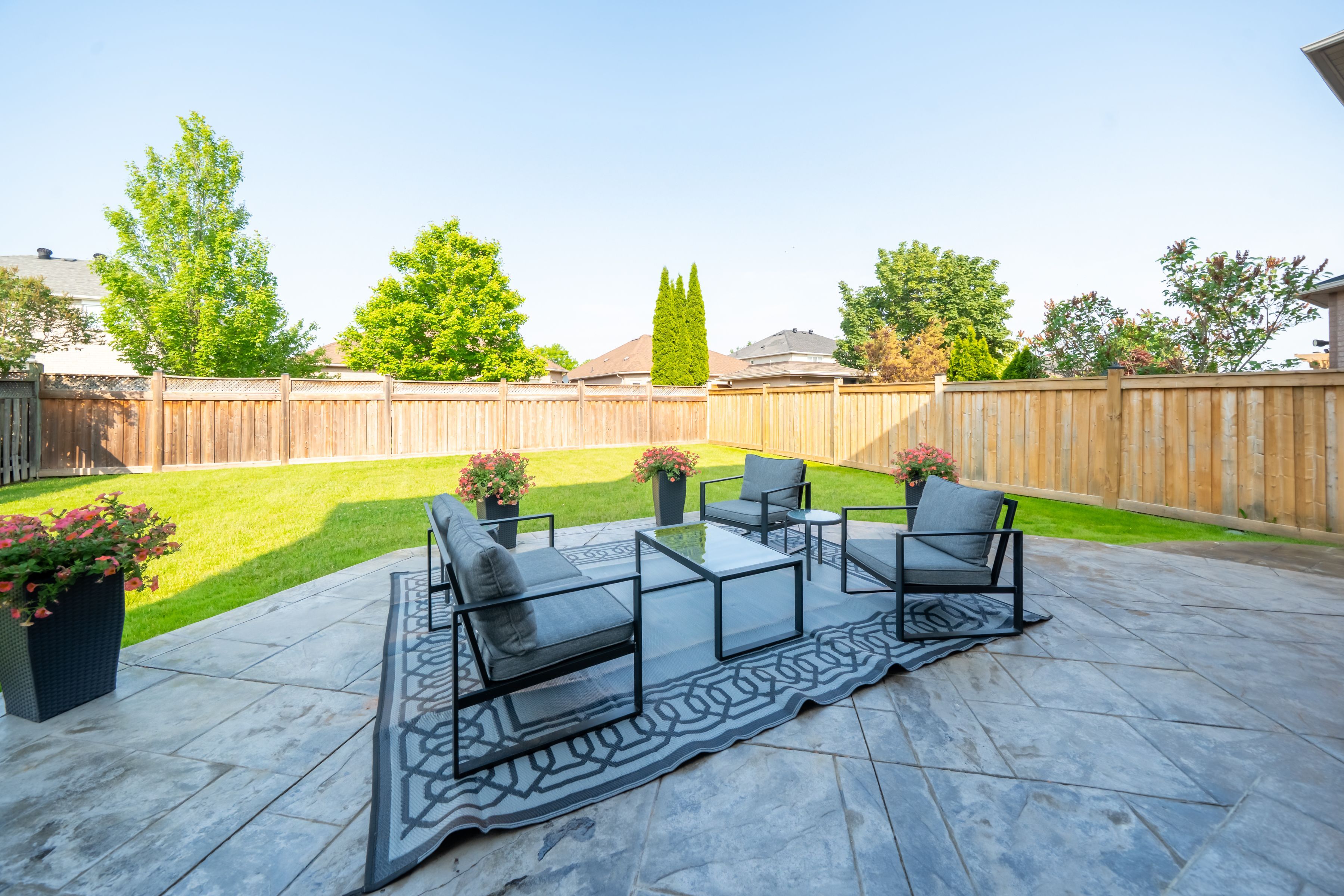• Professional landscaping and exterior features like patterned concrete and in-ground sprinklers.