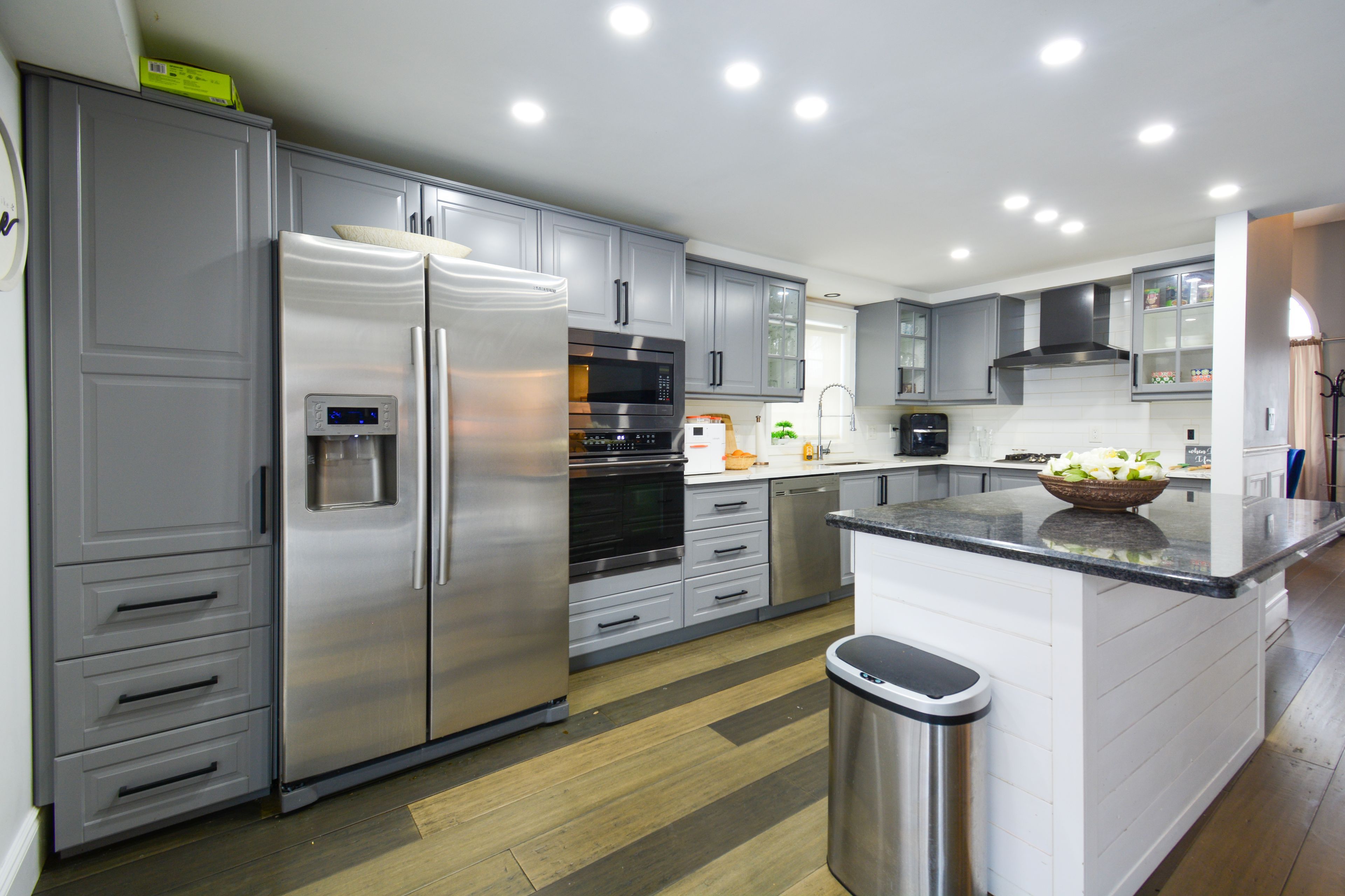 • Updated kitchen opening to a cozy living room and spacious dining area.