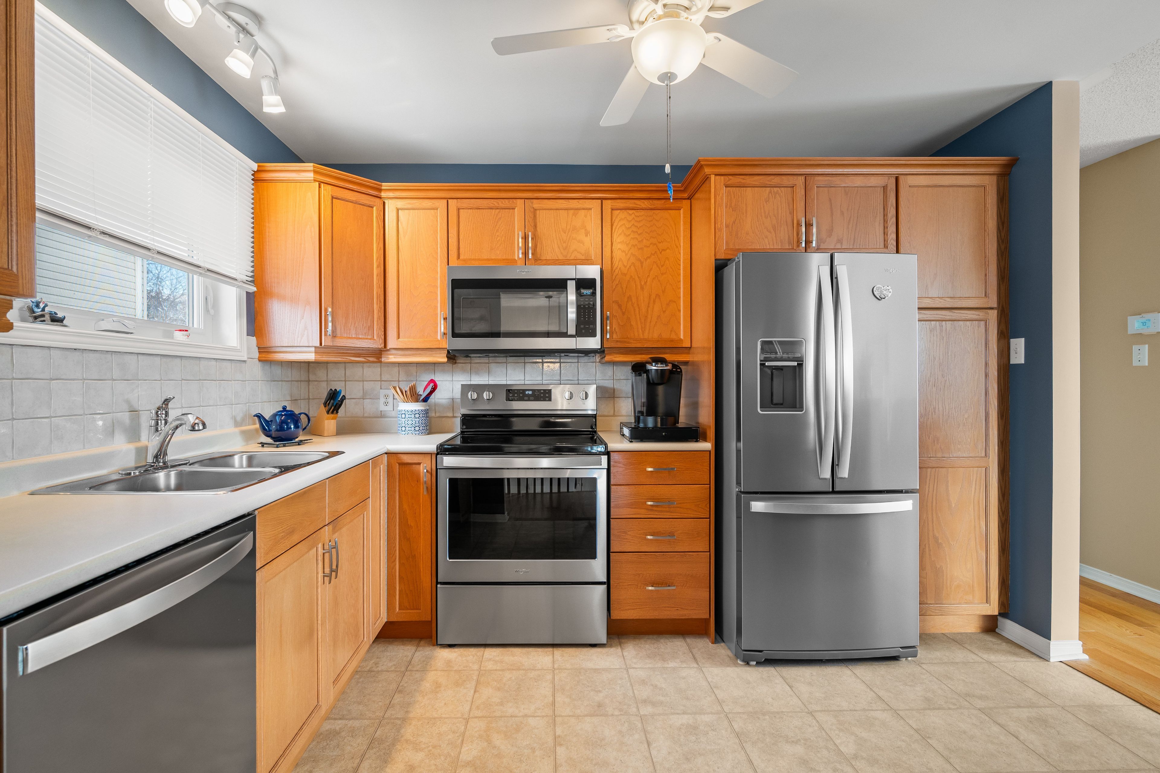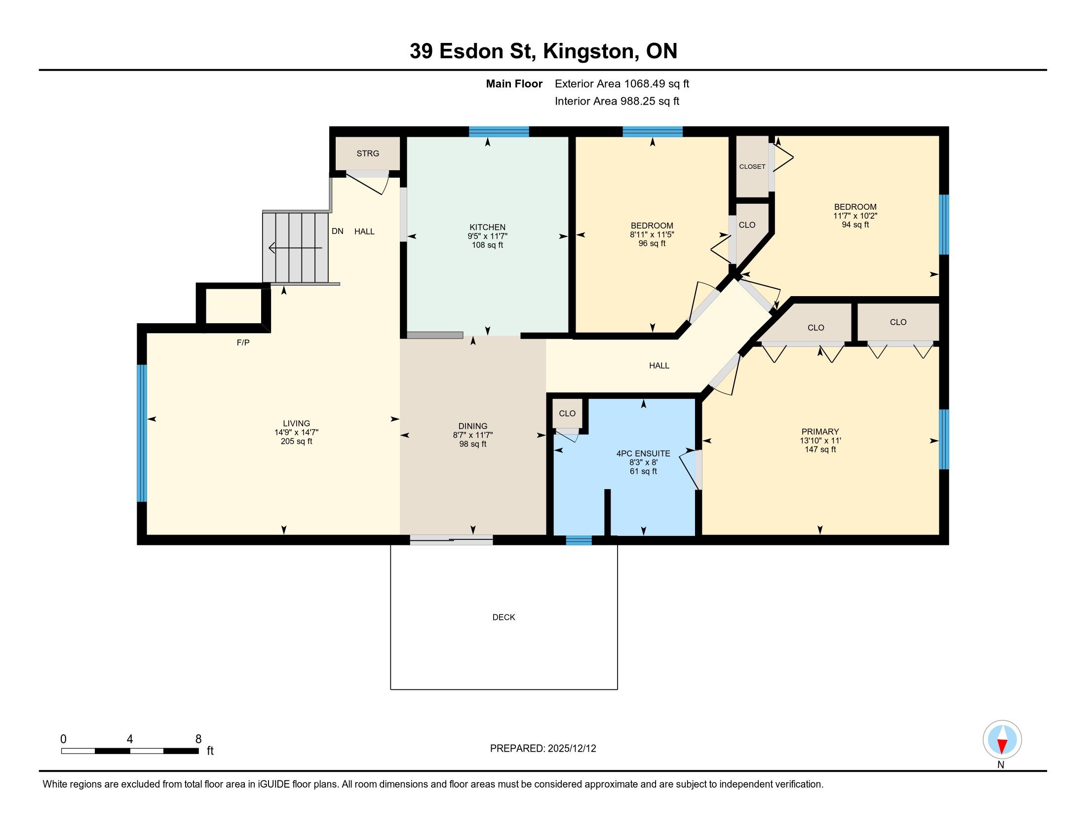 Discover the perfect blend of comfort and quality in this immaculate, detached single-family home. Just a 5 minute drive to the 401, steps to snider park and public transportation, 39 esdon street is nestled in a quiet suburban neighbourhood with easy access to many north end amenities, all while being only ten minutes from downtown kingston. Built in 1998, this property radiates pride of ownership, offering a "move-in ready" experience for the discerning buyer. With approximately 1,048 square feet on the main level, the home is defined by its warm and inviting atmosphere. As you enter, you are greeted by the tidy foyer and gleaming hardwood floors that flow seamlessly through the main living spaces. The front living room and dining spaces both have abundant natural light and an electric fireplace can be found near the front of the living room, adding a touch of warmth and elegance. The dining room boasts a sliding patio door leading out to a side deck; a convenient perch for barbecuing dinners and entertaining friends and family. The kitchen space is perfectly polished with a double sink, breakfast counter and newer stainless steel appliances. The hallway leads to three well-appointed bedrooms and a main 4-piece bath that also has access from the primary bedroom. One of the property's standout features is the finished lower level. Heading downstairs, there is the added convenience of having direct access out to the single car garage. The rec room also features a separate back entrance that provides direct access to the backyard, offering the possibility of an in-law suite in the future. The fully fenced backyard is peaceful and well-maintained and comes equipped with a garden shed for extra storage. This charming 3 bedroom, 1 and a half bath is a practical choice for those seeking a quiet community lifestyle with the ease that comes with elevated bungalow living.