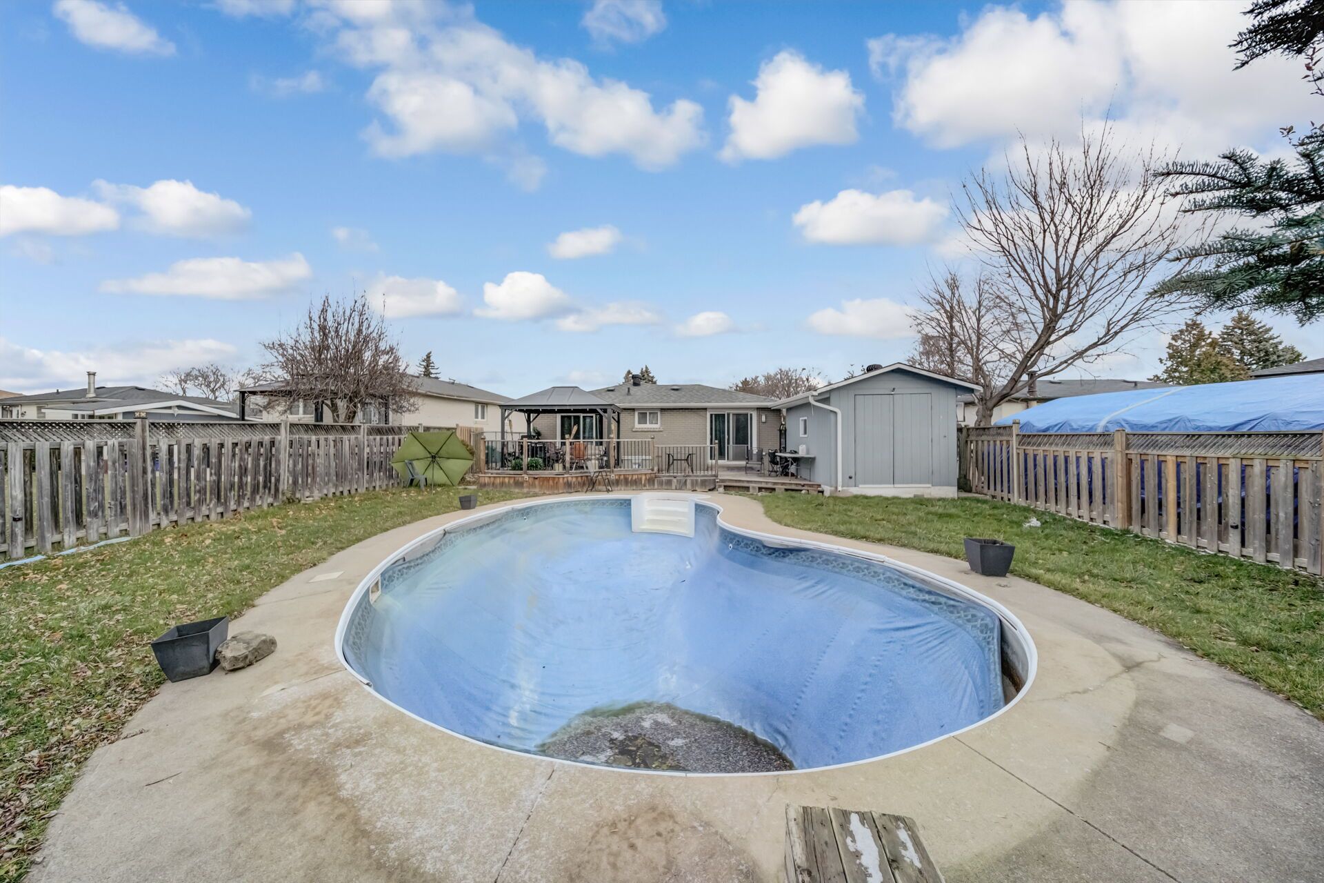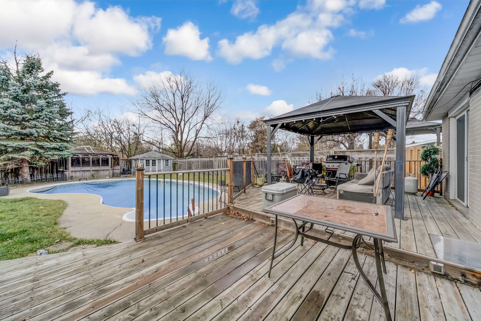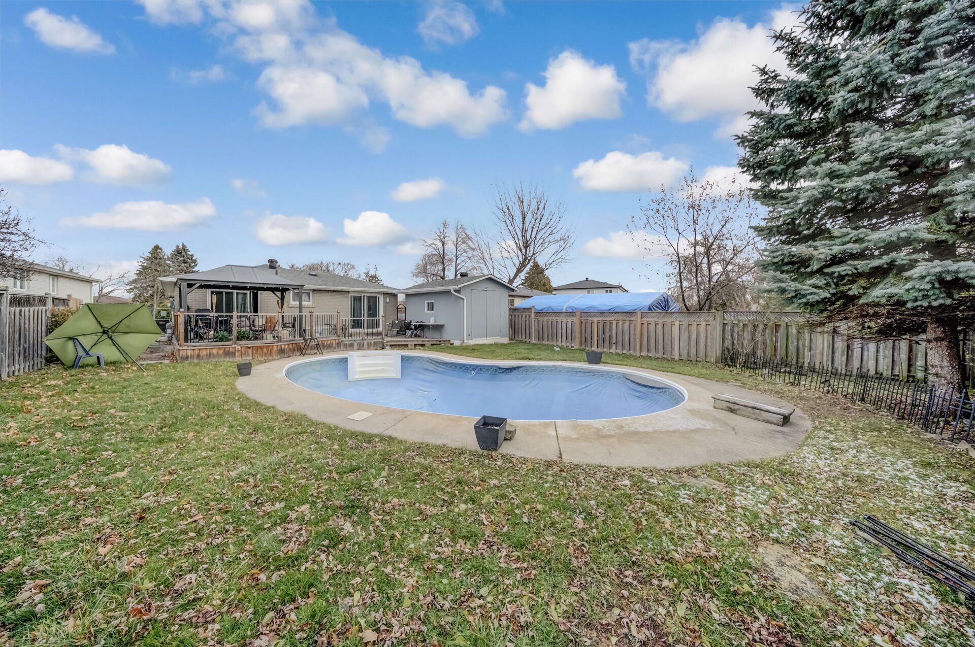 Welcome to this stunning home located in a highly sought-after neighborhood, offering the perfect blend of comfort, functionality, and resort-style living. Featuring parking for up to eight vehicles, this property is ideal for extended families or those who love to entertain. The main level boasts a bright and spacious living and dining room combination, an upgraded modern kitchen, and three generously sized bedrooms-two of which include sliding glass doors that lead directly to your backyard oasis. Step outside and enjoy your private retreat complete with an inground pool, a 10x12 gazebo perfect for outdoor dining, and a hot tub with a custom enclosure for year-round relaxation. The basement is newly renovated and ideal for in-law living, offering a brand-new kitchen, a four-piece bathroom, one bedroom, and a large recreation area. Additional features include a 12x16 detached motorcycle garage, ideal for storage, tools, or recreational equipment. This beautiful property is the perfect mix of modern and outdoor luxury-an entertainer's dream and a rare opportunity this desirable area. Roof 18, furnace 20, water heater 20, ac 20, driveway 18, basement windows 18, pool liner 17