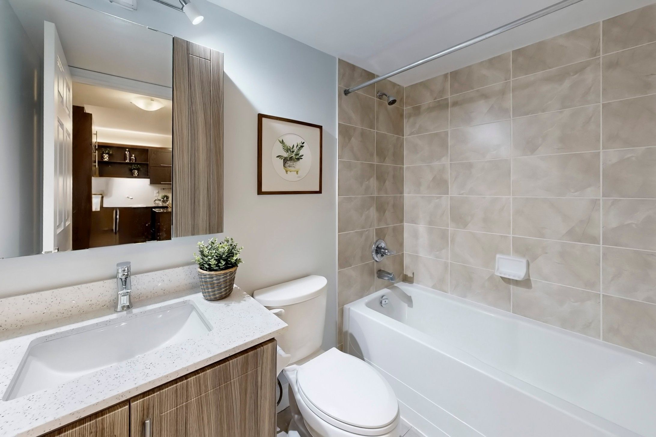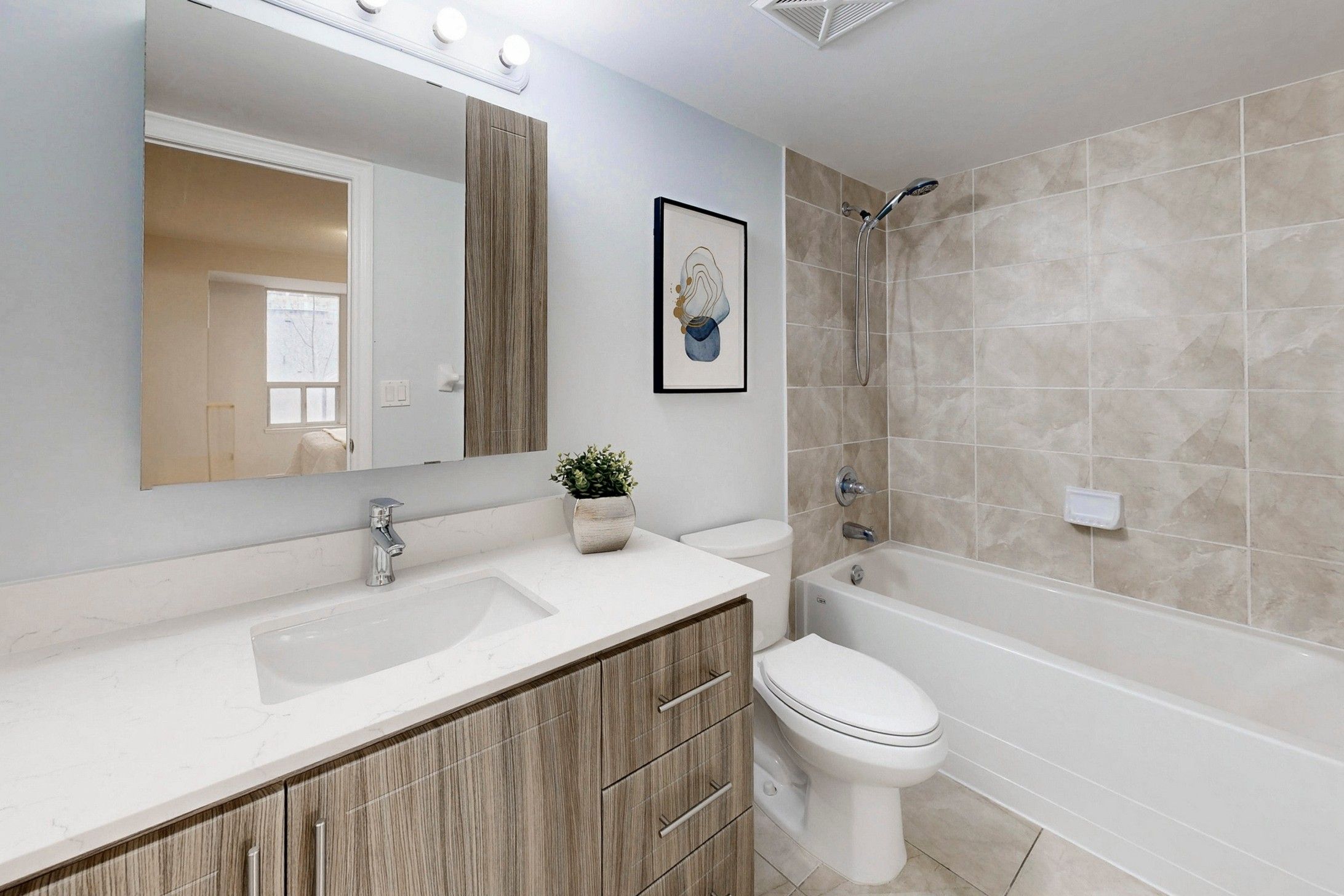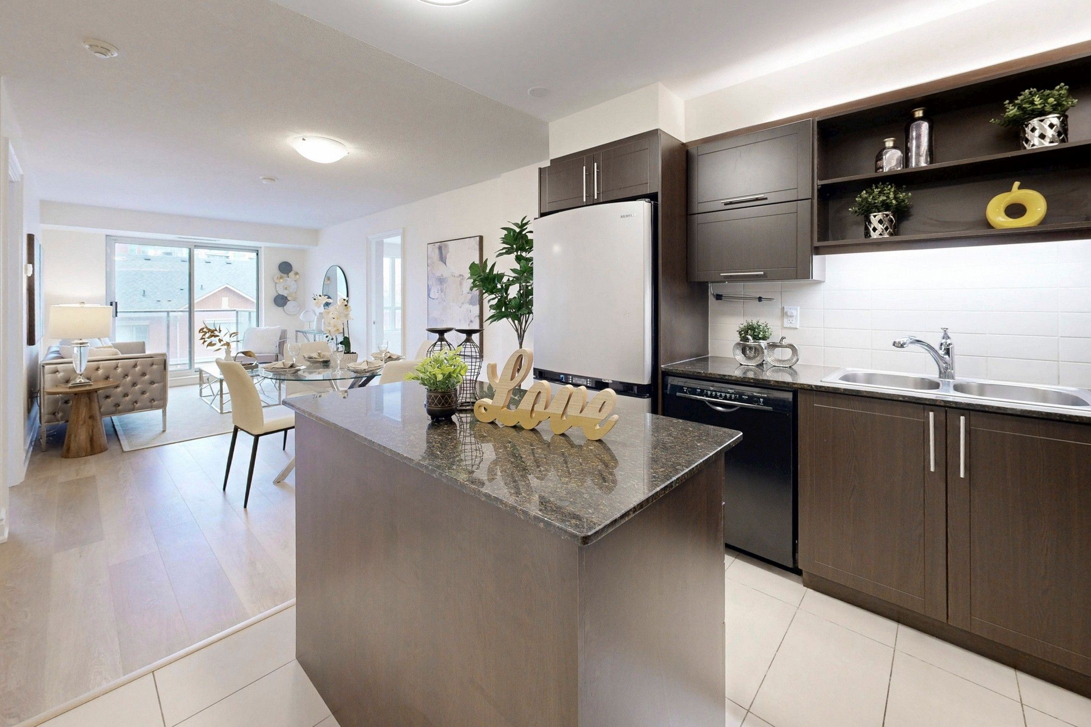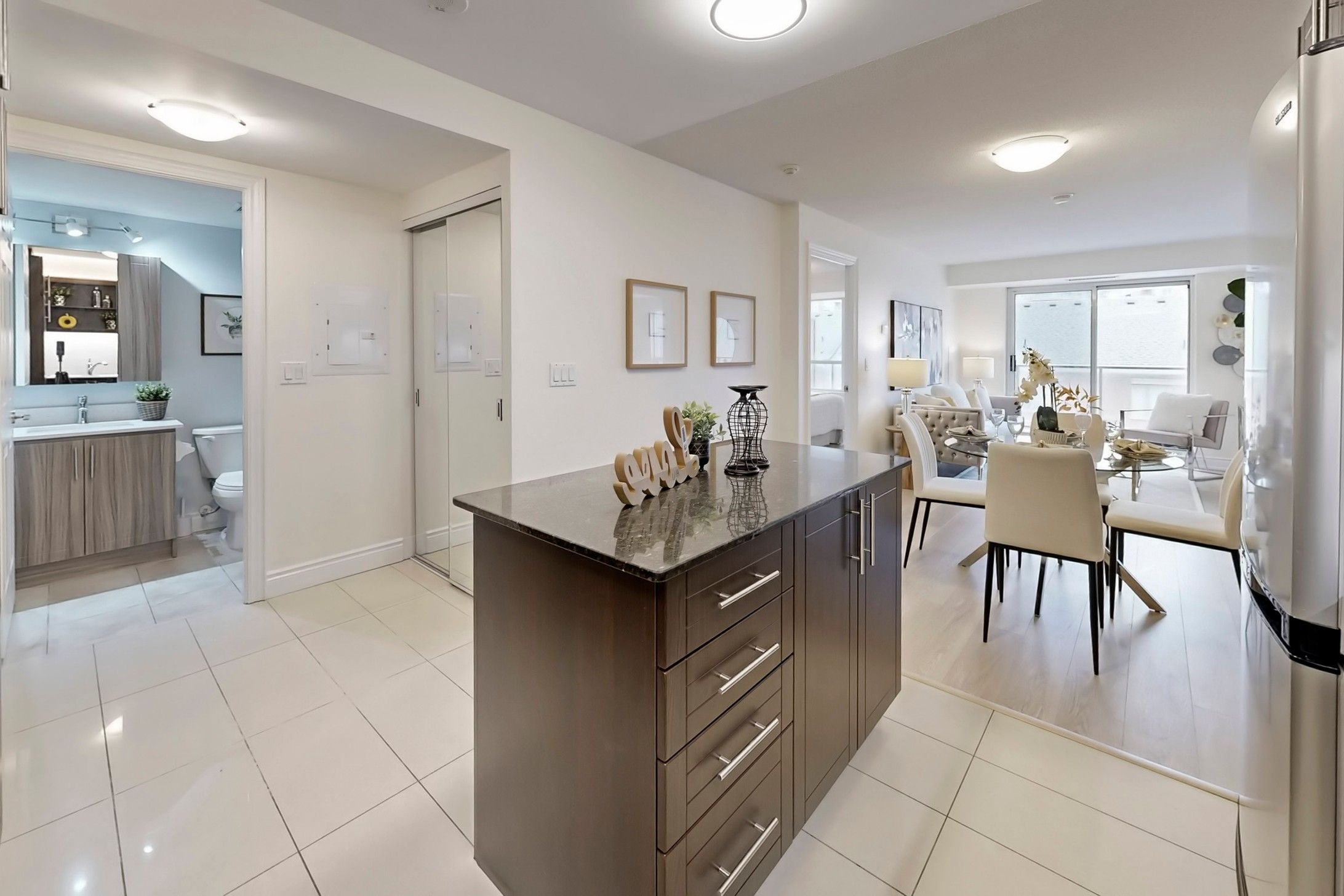 * beautifully renovated 2 bedrooms unit with split bedrooms and 2 bathrooms (815 sf + 95 sf balcony) * bright & spacious unit with functional floor plan * brand new laminate floor throughout * modern open concept kitchen overlooking the living & dining areas * new doors in kitchen cabinetry * new vanity cabinets with new plumbing in two bathrooms * updated light fixtures * this building is fully equipped with indoor pool, steam sauna, gym, billiards room, party room and media room, 24 hrs concierge, visitor parking, guest suites, etc. * walking distance to cafes, restaurants, and the upcoming t&t supermarket * easy access to highway 407 and highway 7 *