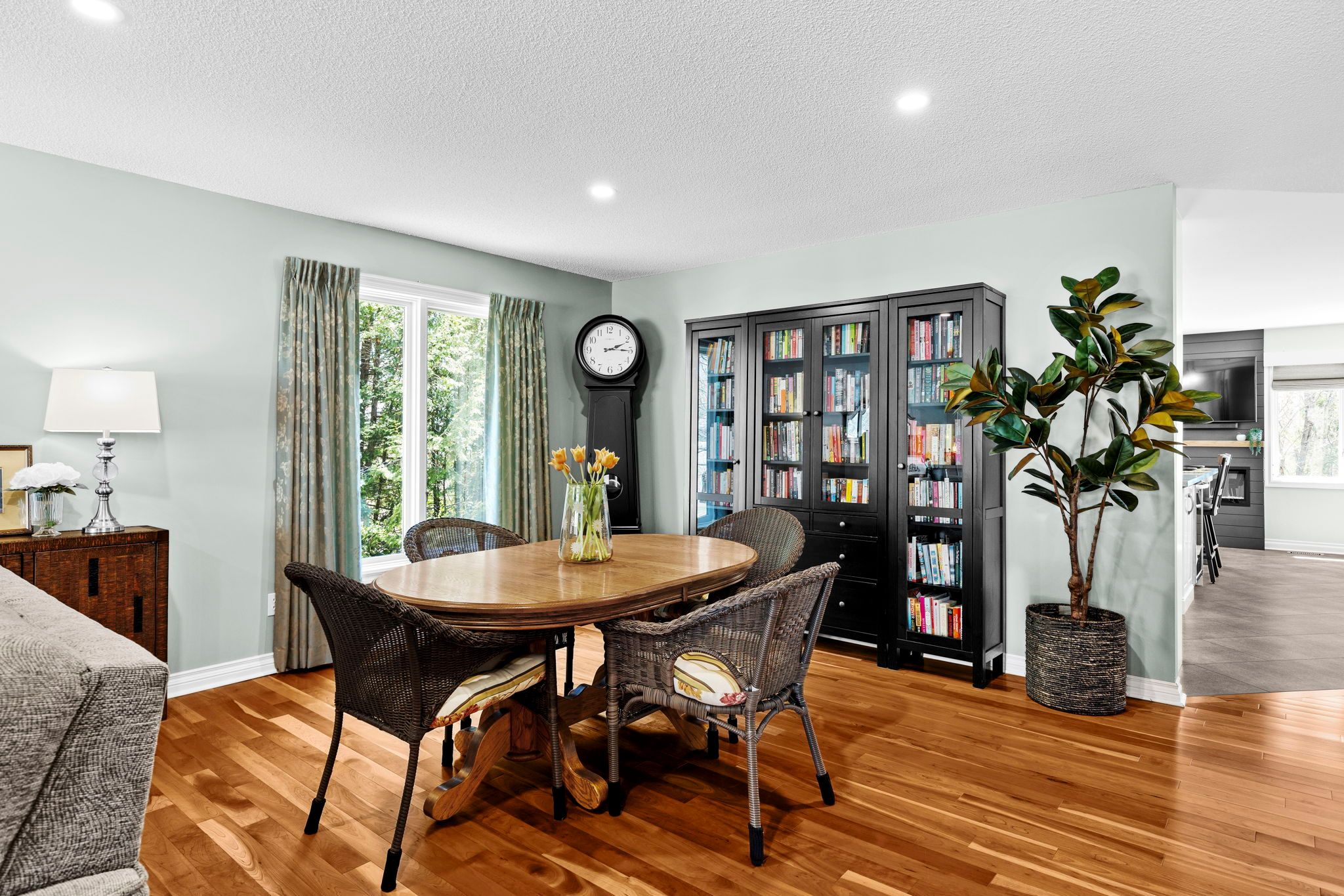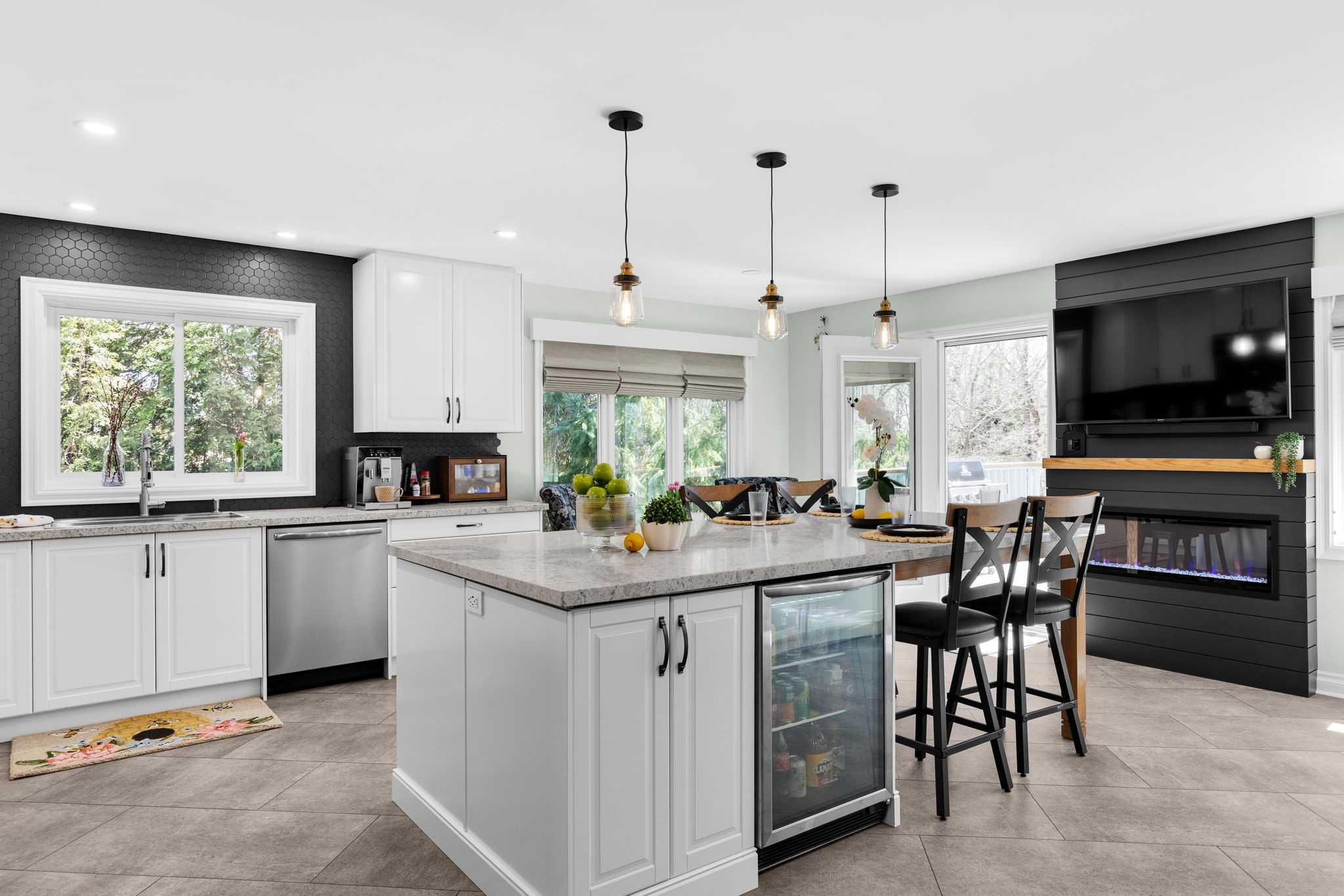 Welcome to a home that feels like a page out of a muskoka daydream - set in a sought-after, mature neighbourhood where kids play outside, neighbours greet you with a smile and a wave, and evening dog walks are part of the daily rhythm. Step inside to a warm, inviting main floor featuring gleaming hardwood floors and an abundance of natural light. At the heart of the ome is an absolutely stunning gourmet kitchen, completely renovated within the last 12 months with exceptional taste and mindfulness. Designed for gathering, it highlights quartz countertops, extensive cabinetry, and a massive centre island with seating for four or more. A striking fireplace feature wall with an electric fireplace adds both style and ambiance, while a walkout leads to the rear deck - perfect for summer bbqs and effortless entertaining. The main level offers two bedroom, including a peaceful primary retreat with a beautifully refurbished ensuite. A natural gas fireplace in the main living area creates a cozy space to unwind year-round. Downstairs, the fully furnished walkout basement expands your living space witha third bedroom, third bathrom, a spacious rec room ideal for movie nights, and plenty of storage. Practical features include an attached double garage with inside entry to a convenient laundry/mudroom - perfect for busy muskoka living. Outside, the impeccably maintained yard and gardens are supported by an irrigation system, keeping everything lush throughout the summer months. Enjoy a lifestyle tht truly embraces the outdoors - walk to the nearby fairy vista trail, visit the neighbourhood park just down the street, or treat yourself to ice cream at kawartha dairy. With several lakes, golf courses, and skiing at hidden valley highlands ski area just minutes away, every season brings new ways to enjoy muskoka.