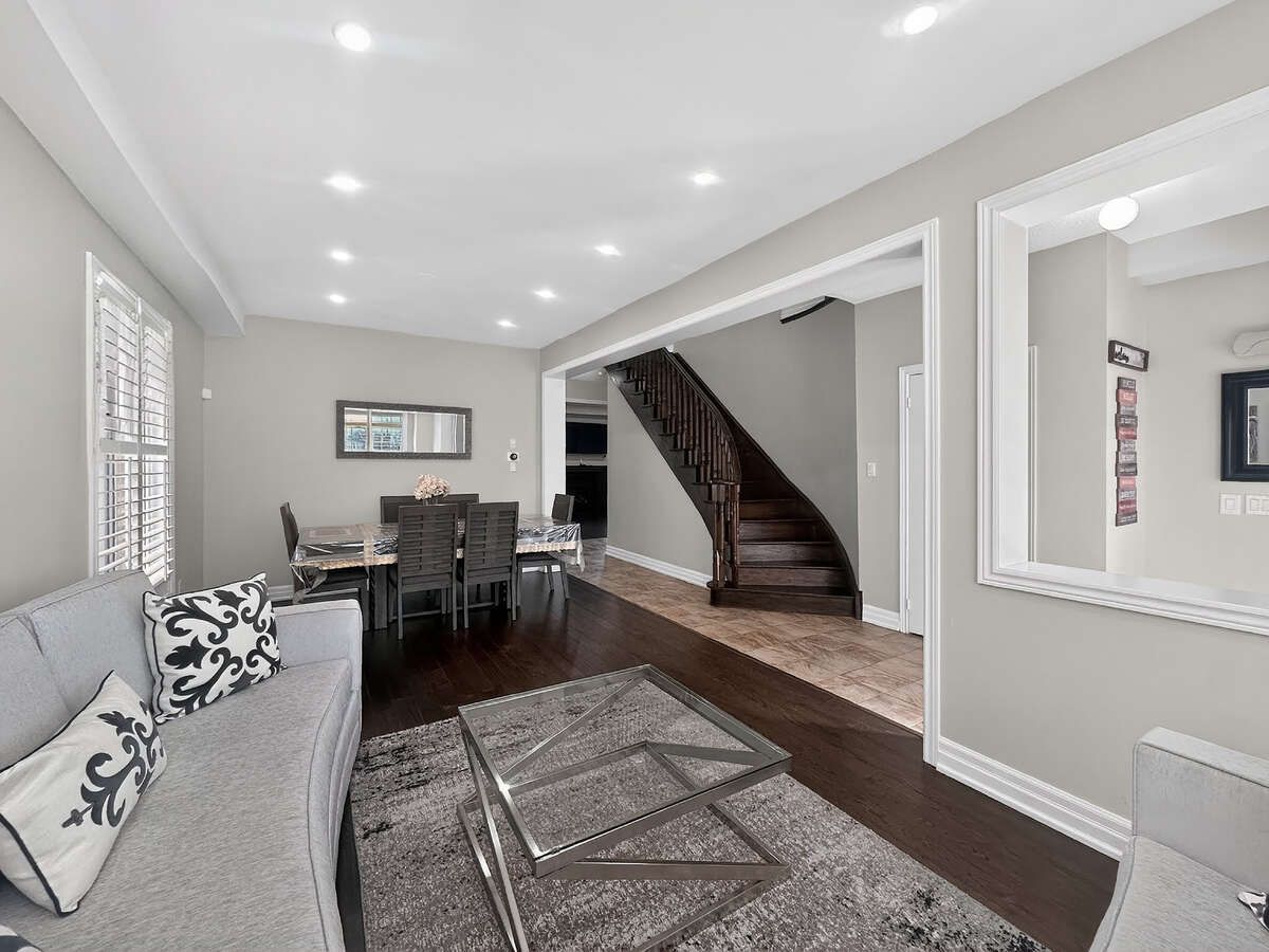 *** visit the realtor website for further information about this listing *** stunning 4+3 bedroom detached home with legal basement apartment! This spacious home offers a functional open-concept design with 9' ceilings and a grand double door entry. Modern upgraded kitchen with built-in appliances, complemented by pot lights throughout the house, hardwood floors, oak staircase, and california shutters. No sidewalk with an extended stamped concrete driveway. Enjoy a large private backyard and a generously sized primary bedroom with a walk-in closet. Separate builder-provided entrance to the legal basement adds excellent income potential. Located near schools, parks, transit, and shopping. A fantastic opportunity - don't miss it! Must see!! Extras - all existing appliances, 2 fridge, 2 stove, pot lights, 2 laundries (sep laundry in basement), legal separate entrance by builder!