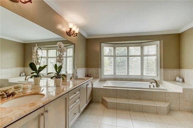 Magnificent custom built 4 brm house in prestigious area! Urban chic design! Apprx. 5300sqft of lux living space on a lrg pie-shaped lot widens to 90', mid depth apprx. 243'! Sunlid,immaculate,spacious,open concept liv/din. All bdrm w/ensu. Very large mstr brm w spa like 5pc ensuit & w/i closet,17'luxury foyer! Hi ceil in den area. Coffered ceilg, crown moldg. Bkyard w mature trees & interlocking driveway.