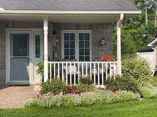 Stunning, mint condition end unit with all the extras! Enjoy the natural light from the extra windows, hardwood flooring, vaulted ceiling, beautiful upgraded eat in kitchen with quartz counters, loads of extra cupboards and lovely island, freshly painted, upgraded bathrooms (jet tub in one, gorgeous step in shower in the other) inside entry from extra deep drywalled garage, 2 bdrms, 2 bathrooms, unique very attractive division wall between dining and living room which features a walk out to deck overlooking nature with gas bbq connection, terrific awning and inground sprinklers. Enjoy the country meadows lifestyle! Play 9 holes at the on-site private golf course, take a dip in the inground pool and enjoy community activities! Come and see for yourself, this is one of the nicest units of it's kind! Don't miss this one, there's no work to do here, just move in and enjoy! Land lease fee $800/mo + land tax $40. 57/mo + structure tax $141. 82/mo = $982. 39 month for a new owner.