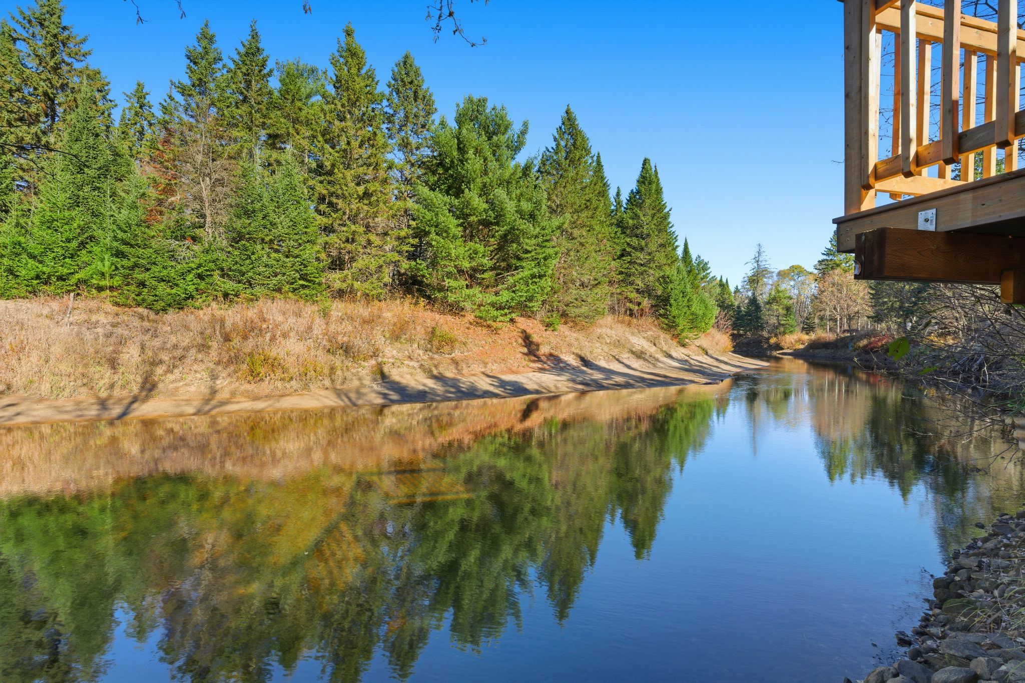 • Level lot with easy access to Big East River for water activities.