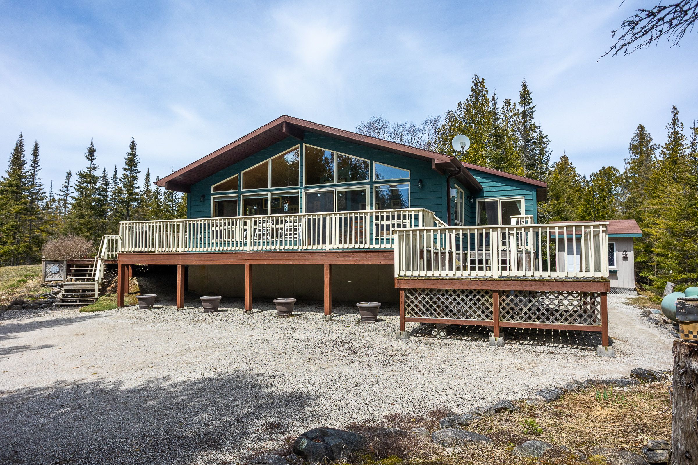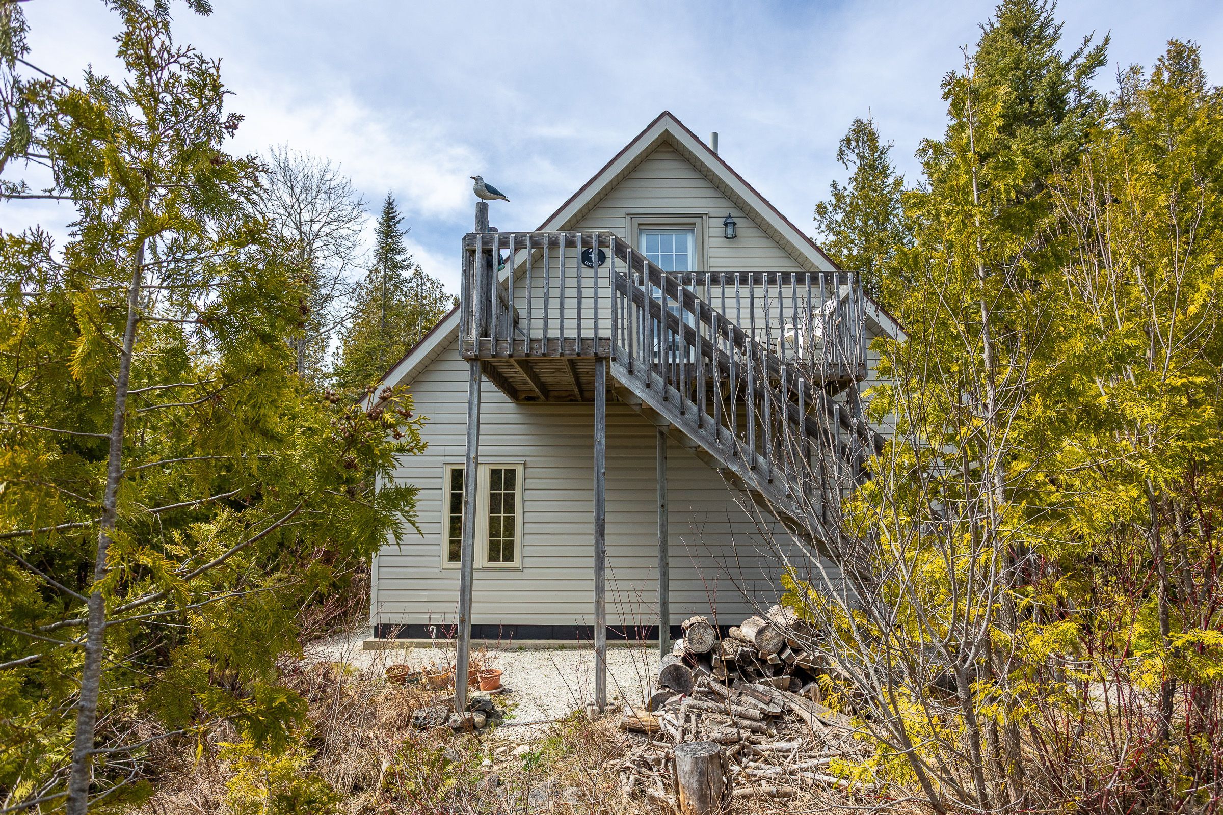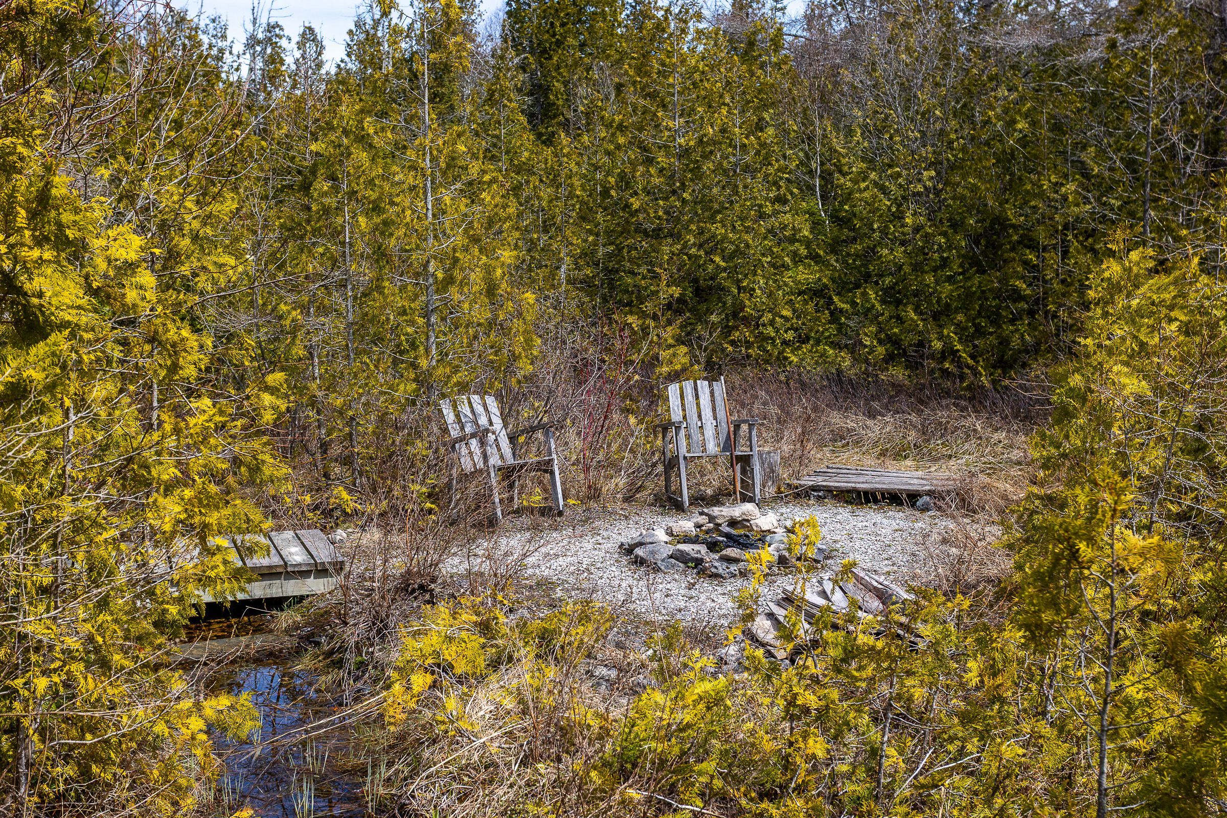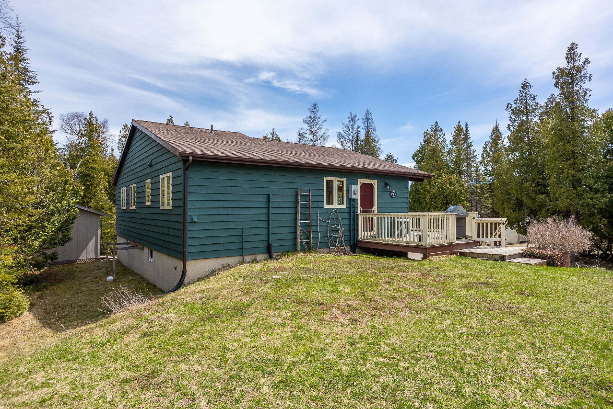 Set on a quiet 2. 1-acre wooded lot, this welcoming raised bungalow offers a wonderful balance of privacy, comfort and natural surroundings. The open-concept layout is well suited for everyday living and entertaining, highlighted by warm v-match pine walls and a spacious living room anchored by a cozy propane fireplace. A wall of windows brings in abundant natural light while capturing beautiful views of the western sky and unforgettable star-filled nights. The kitchen offers generous counter space and a practical layout that flows seamlessly into the main living areas. Two well-sized bedrooms provide comfortable accommodations, including a primary bedroom with patio door access to the side deck - an ideal spot to start the day with morning coffee while enjoying the sights and sounds of birds in the surrounding trees. A third bedroom has been thoughtfully reconfigured to include a convenient laundry area along with a dedicated office space. The 3-piece bathroom features a low-threshold walk-in shower for added ease and accessibility. Outside, a detached garage offers parking along with a workshop area, while the finished upper level provides bonus guest overflow space complete with a composting toilet. Lake access is only a short stroll down the road, perfect for launching a kayak or enjoying a refreshing swim on a warm summer day while listening to the waves rolling in from lake huron. Located just 15 minutes from tobermory and close to singing sands beach, bruce peninsula national park and many of the peninsula's most popular attractions, this property offers a peaceful setting with convenient access to everything the area has to offer.
