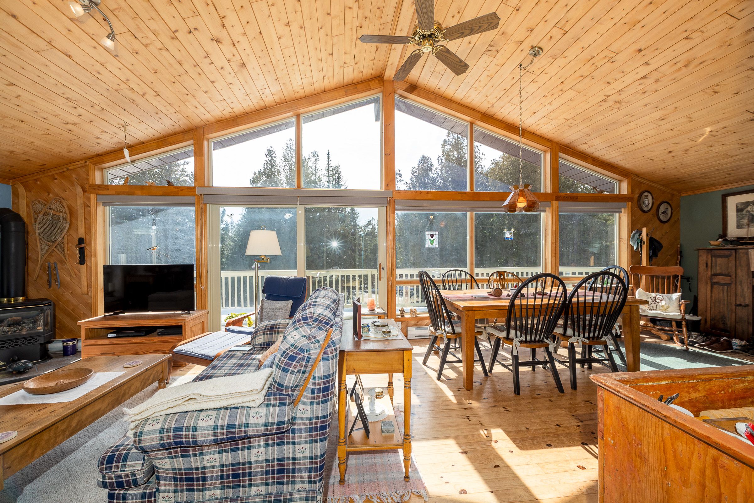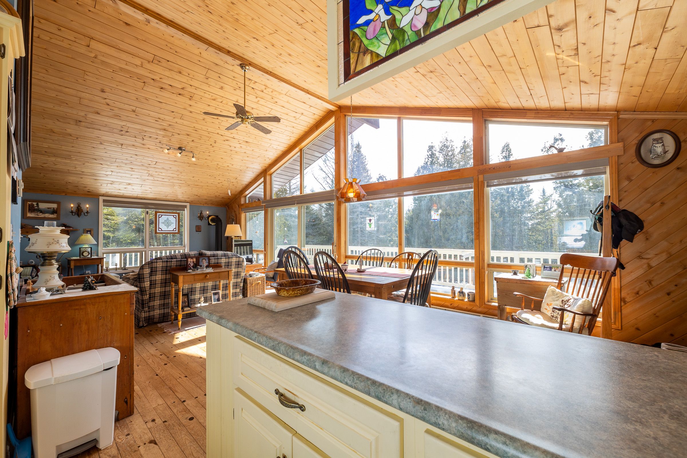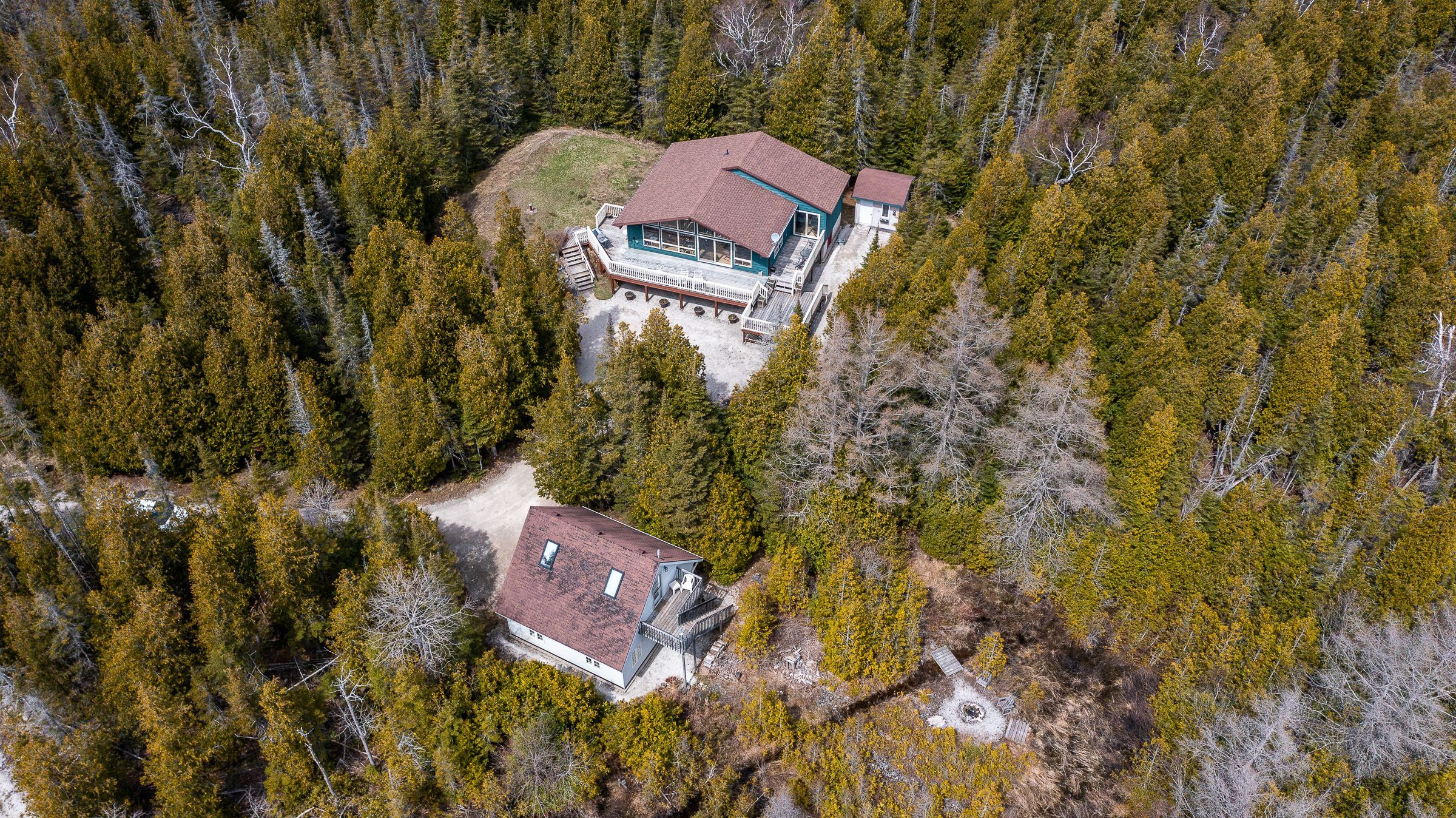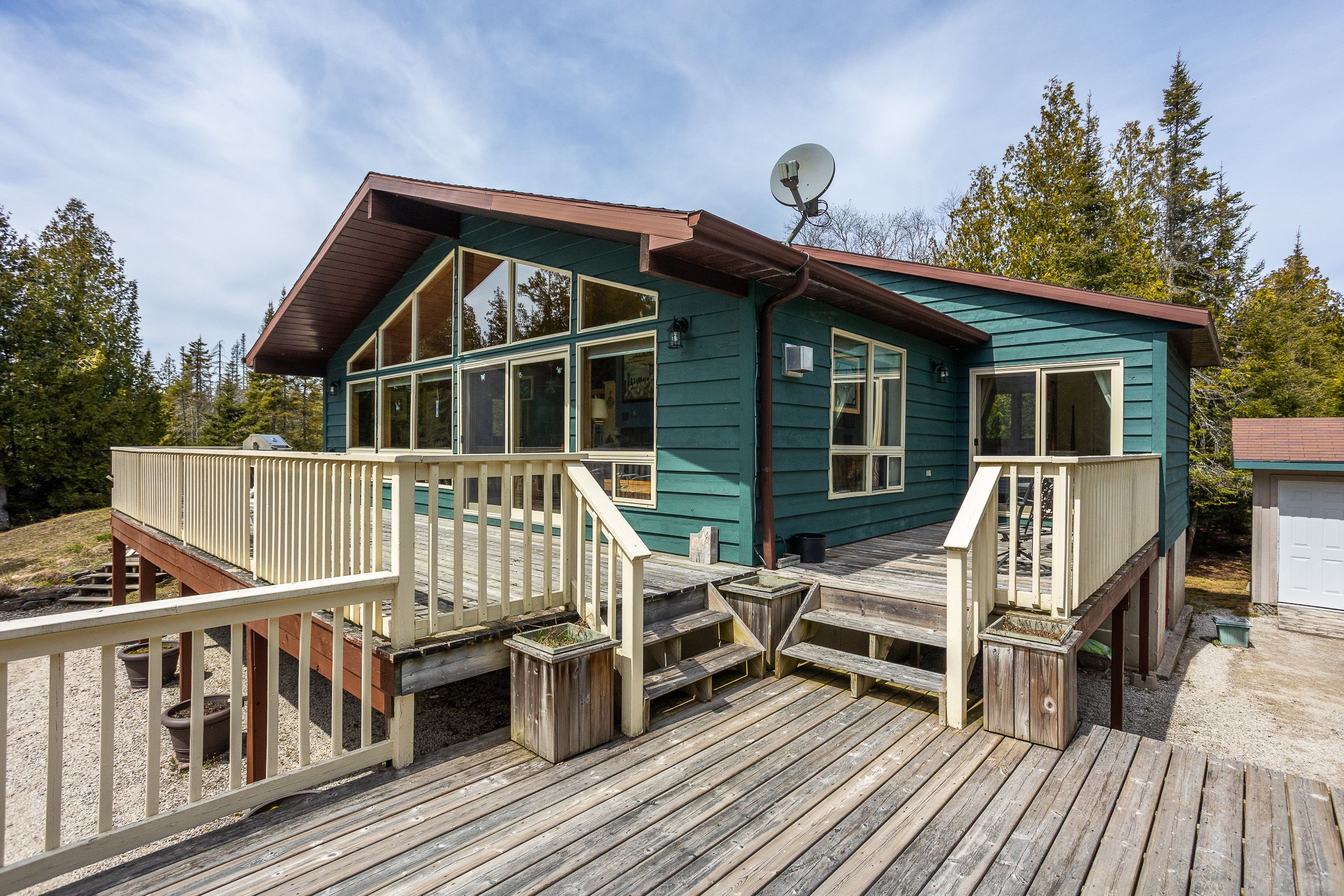 Set on a quiet 2. 1-acre wooded lot, this welcoming raised bungalow offers a wonderful balance of privacy, comfort and natural surroundings. The open-concept layout is well suited for everyday living and entertaining, highlighted by warm v-match pine walls and a spacious living room anchored by a cozy propane fireplace. A wall of windows brings in abundant natural light while capturing beautiful views of the western sky and unforgettable star-filled nights. The kitchen offers generous counter space and a practical layout that flows seamlessly into the main living areas. Two well-sized bedrooms provide comfortable accommodations, including a primary bedroom with patio door access to the side deck - an ideal spot to start the day with morning coffee while enjoying the sights and sounds of birds in the surrounding trees. A third bedroom has been thoughtfully reconfigured to include a convenient laundry area along with a dedicated office space. The 3-piece bathroom features a low-threshold walk-in shower for added ease and accessibility. Outside, a detached garage offers parking along with a workshop area, while the finished upper level provides bonus guest overflow space complete with a composting toilet. Lake access is only a short stroll down the road, perfect for launching a kayak or enjoying a refreshing swim on a warm summer day while listening to the waves rolling in from lake huron. Located just 15 minutes from tobermory and close to singing sands beach, bruce peninsula national park and many of the peninsula's most popular attractions, this property offers a peaceful setting with convenient access to everything the area has to offer.