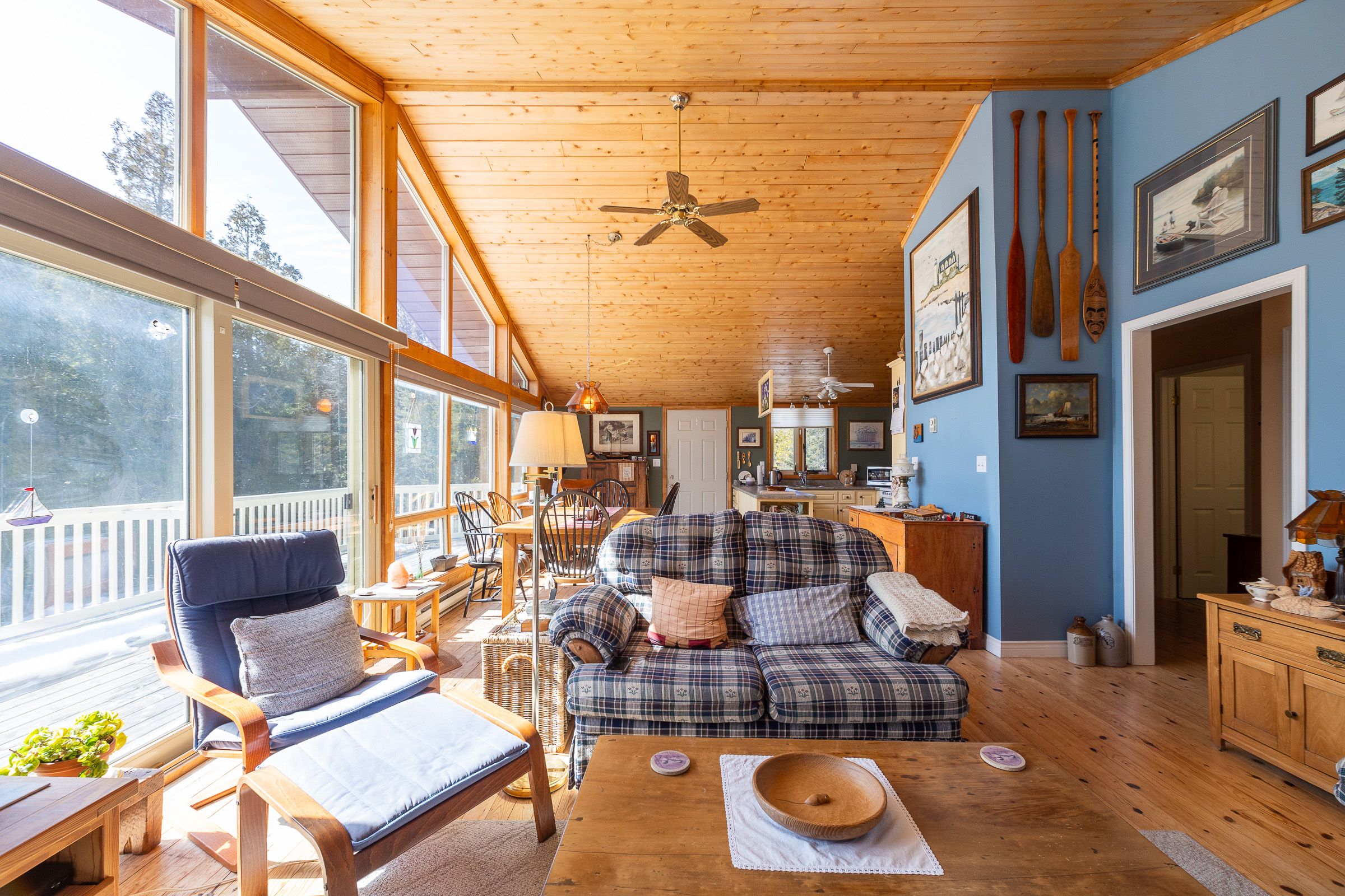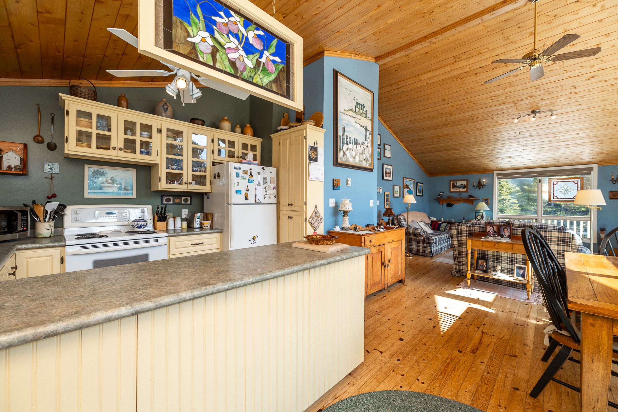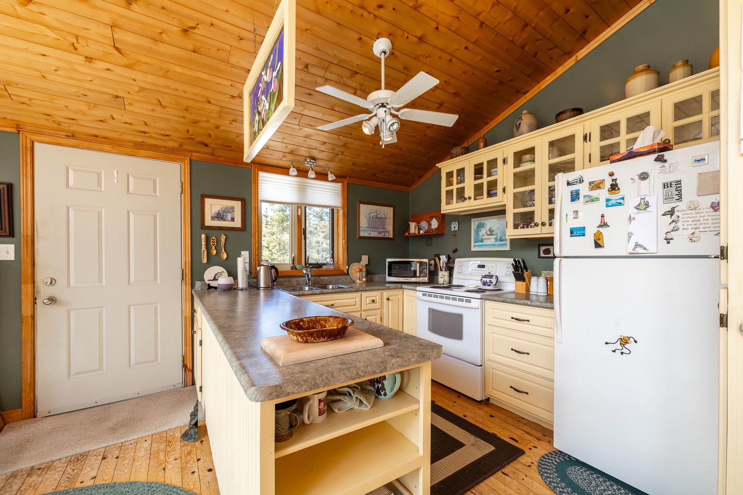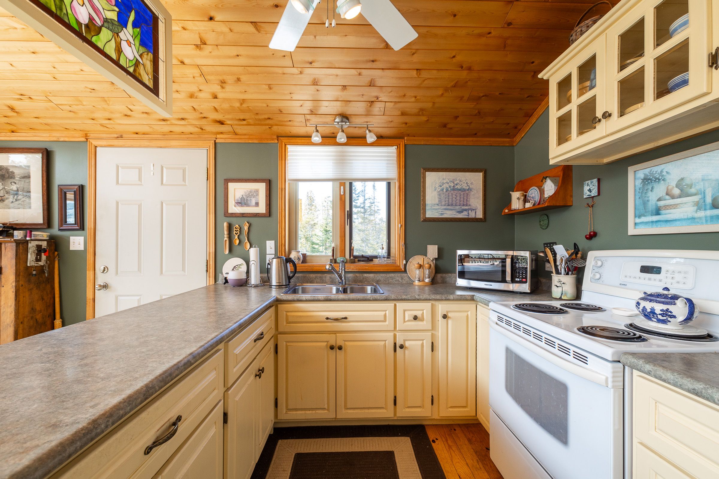 Set on a quiet 2. 1-acre wooded lot, this welcoming raised bungalow offers a wonderful balance of privacy, comfort and natural surroundings. The open-concept layout is well suited for everyday living and entertaining, highlighted by warm v-match pine walls and a spacious living room anchored by a cozy propane fireplace. A wall of windows brings in abundant natural light while capturing beautiful views of the western sky and unforgettable star-filled nights. The kitchen offers generous counter space and a practical layout that flows seamlessly into the main living areas. Two well-sized bedrooms provide comfortable accommodations, including a primary bedroom with patio door access to the side deck - an ideal spot to start the day with morning coffee while enjoying the sights and sounds of birds in the surrounding trees. A third bedroom has been thoughtfully reconfigured to include a convenient laundry area along with a dedicated office space. The 3-piece bathroom features a low-threshold walk-in shower for added ease and accessibility. Outside, a detached garage offers parking along with a workshop area, while the finished upper level provides bonus guest overflow space complete with a composting toilet. Lake access is only a short stroll down the road, perfect for launching a kayak or enjoying a refreshing swim on a warm summer day while listening to the waves rolling in from lake huron. Located just 15 minutes from tobermory and close to singing sands beach, bruce peninsula national park and many of the peninsula's most popular attractions, this property offers a peaceful setting with convenient access to everything the area has to offer.