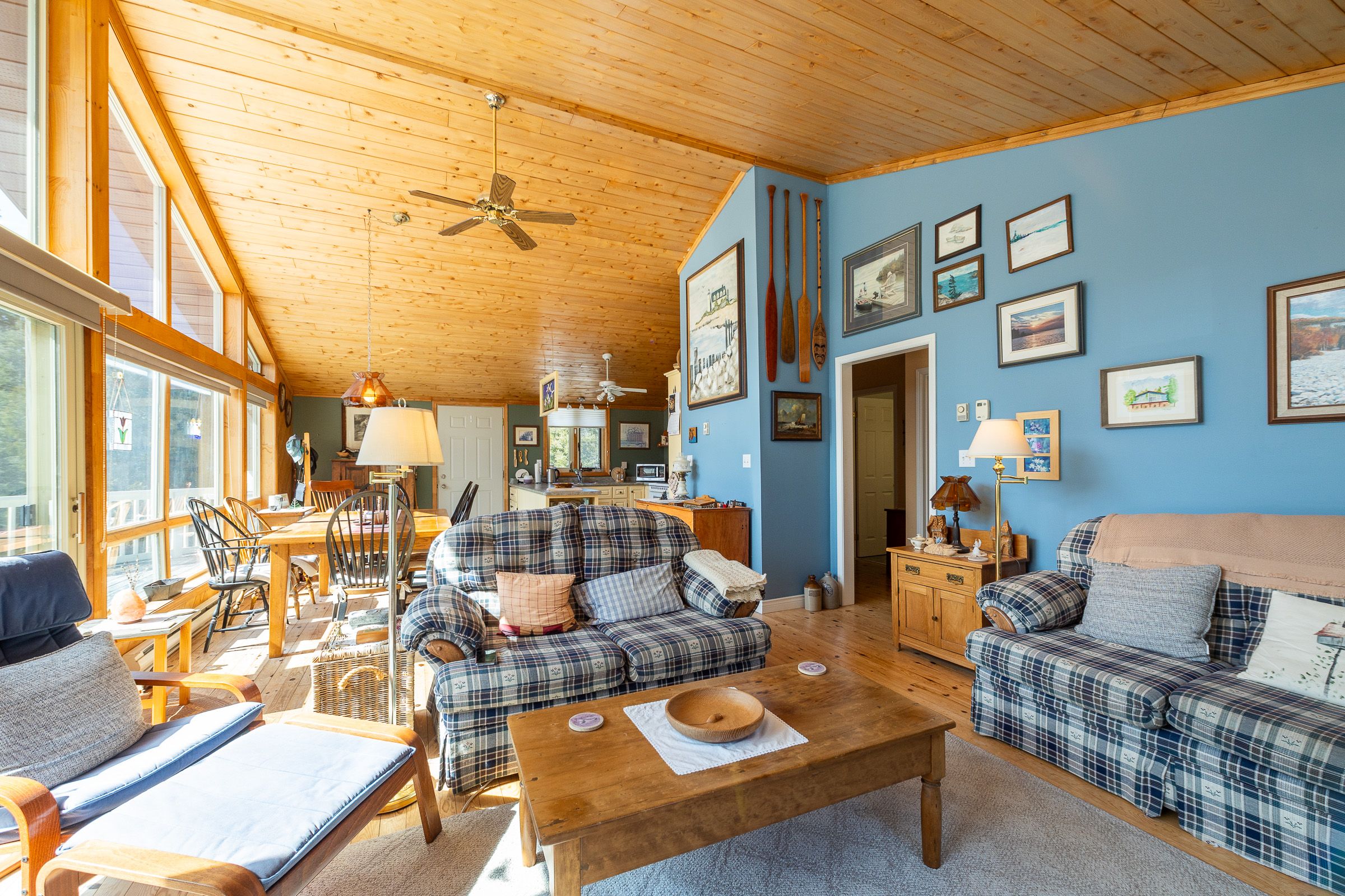 • Open-concept layout with abundant natural light and cozy fireplace.