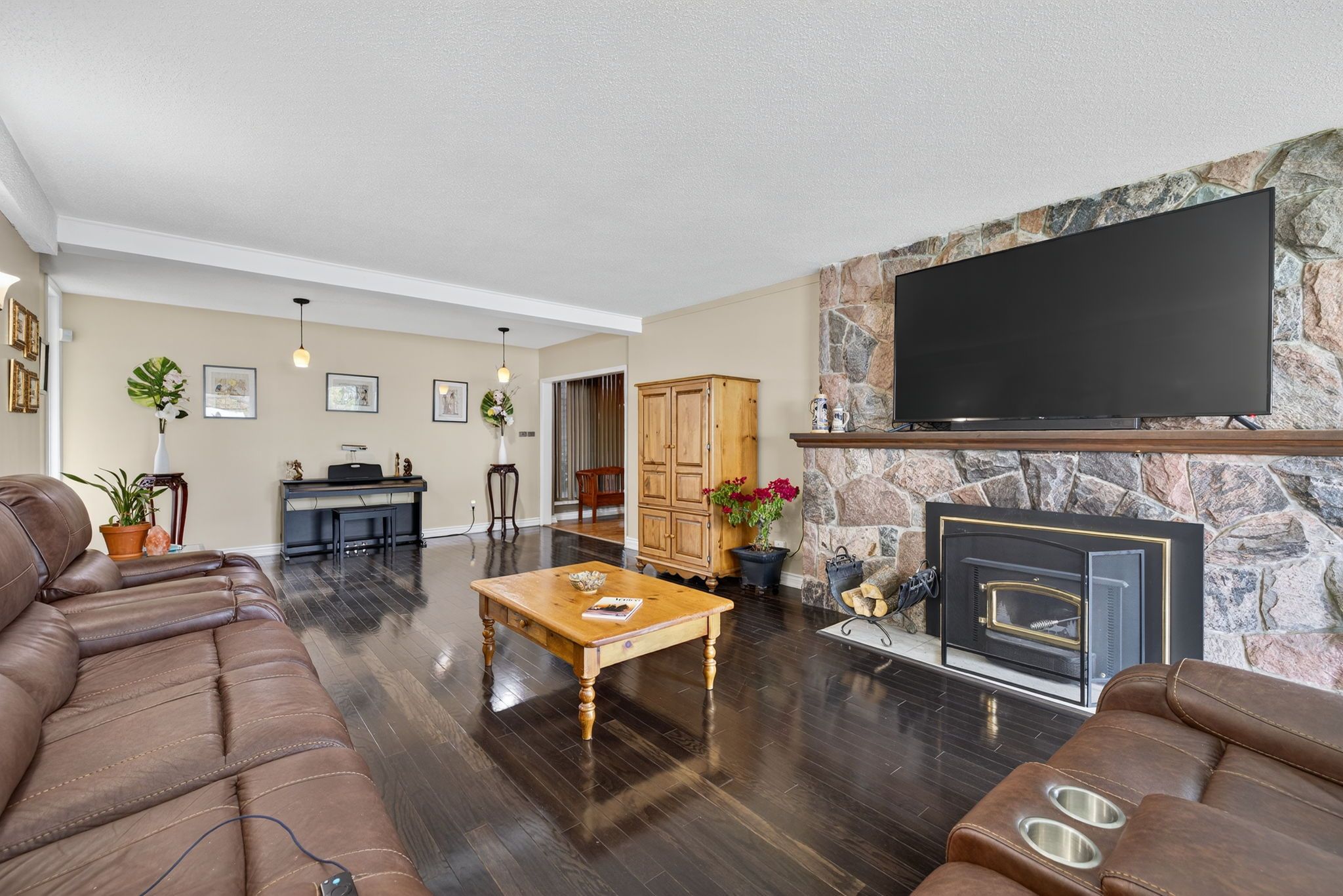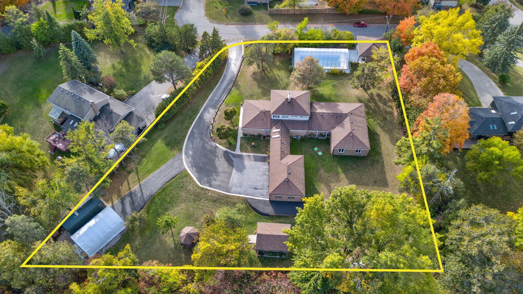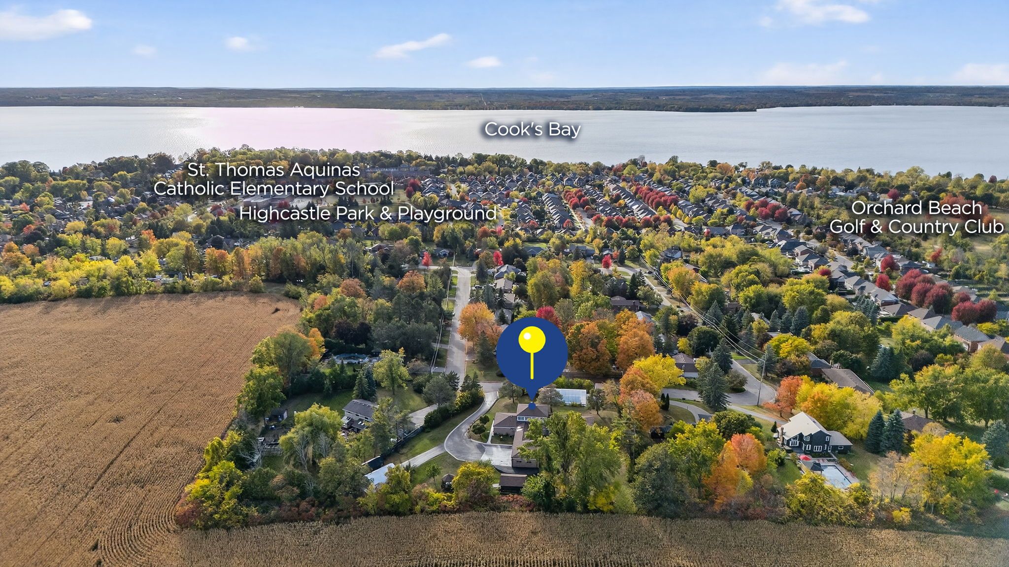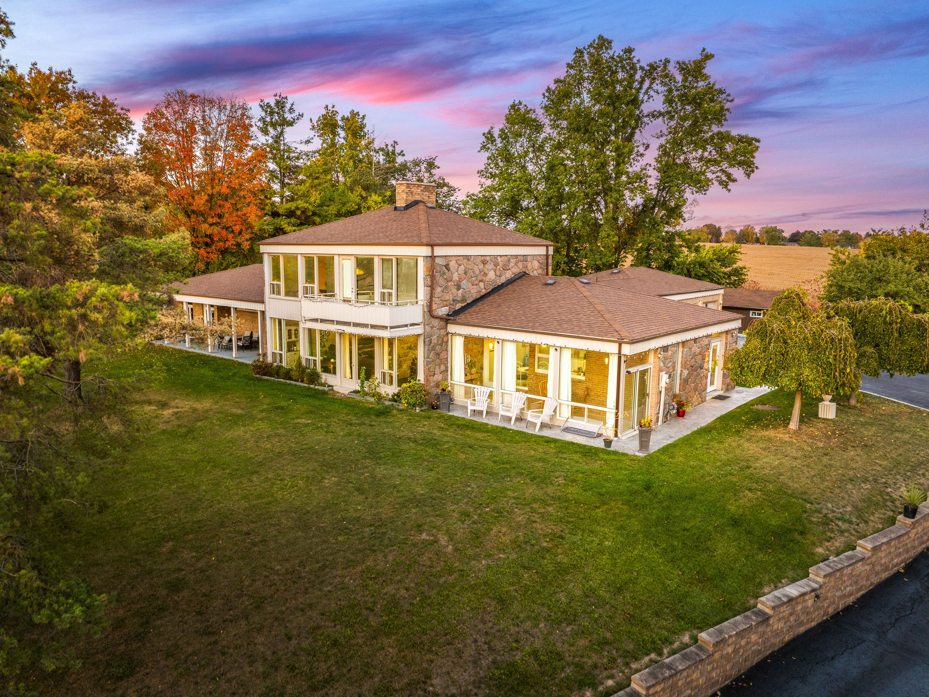 One of a kind estate home nestled on 1. 27 acres of private land with additional 1,200 sqft 1 bedroom guest house, 20 x 40 ft covered inground pool, & 600 sqft detached garage with hydro! Over 3,500+ sqft in main home features covered porch leading to living room with hardwood heated flooring, beautiful stone layered wood fireplace, & floor to ceiling windows throughout! Formal dining room is perfect for hosting on any occasion, & is conveniently central between the kitchen & living room with a walk-out to the backyard. Spacious eat-in kitchen features quartz counters, stainless steel appliances, tile flooring, & lots of additional cabinet space. Plus walk-out to the sunroom & enjoy your morning cup of coffee. 4 spacious bedrooms complete the right wing of the home, primary bedroom features large double closet, & 5 piece ensuite with double sink, soaker tub, & glass shower! 3 additional bedrooms with shared 5 piece bathroom & large closets. Upper level rec room is the perfect hangout space with 2nd fireplace & walk-out to balcony! Finished basement includes 5th bedroom & tile flooring. Convenient main level laundry room with sink, separate entrance, & additional storage spaces. Guest house features full kitchen, living area, bedroom, 4 piece bathroom, separate laundry & full unfinished basement! Perfect 2nd living space to rent or extended family to stay! Triple car garage & 15 additional driveway spaces. Plus 2nd driveway leads to portable garages for extra storage. No neighbours behind, & tons of additional green space perfect for summer bbq's, hosting, or grow your garden! A truly unique home that needs to be seen! Ideal location nestled hilltop with breathtaking views on quiet cul de sac, just minutes to cooks bay, orchard beach golf & country club, schools, parks, restaurants, grocery stores, shopping, & easy access to highways!