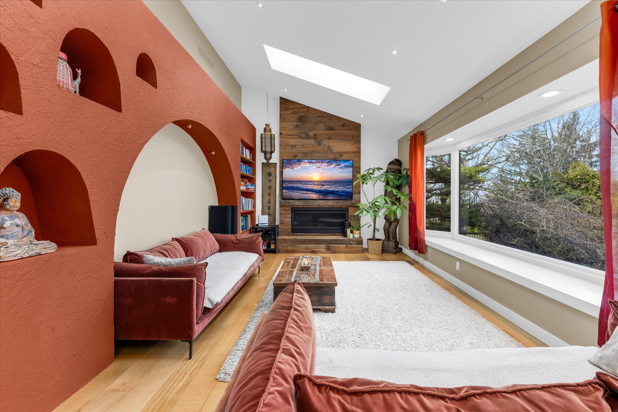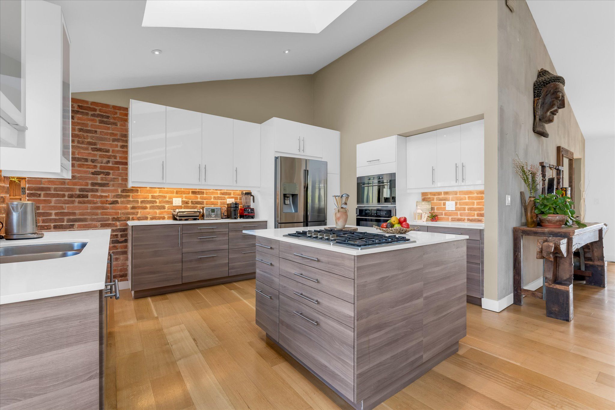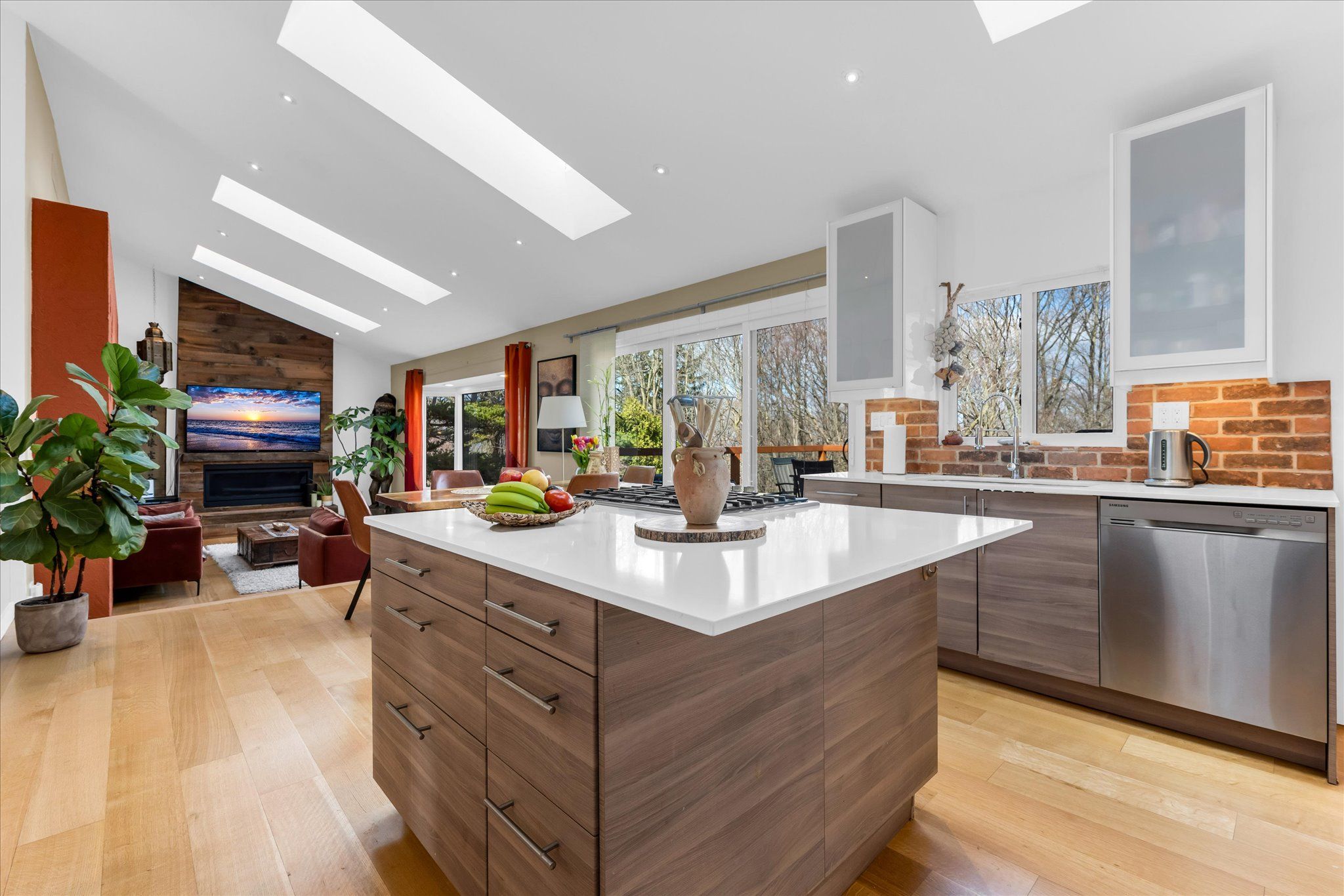 • Custom kitchen and renovated bathrooms provide modern convenience.