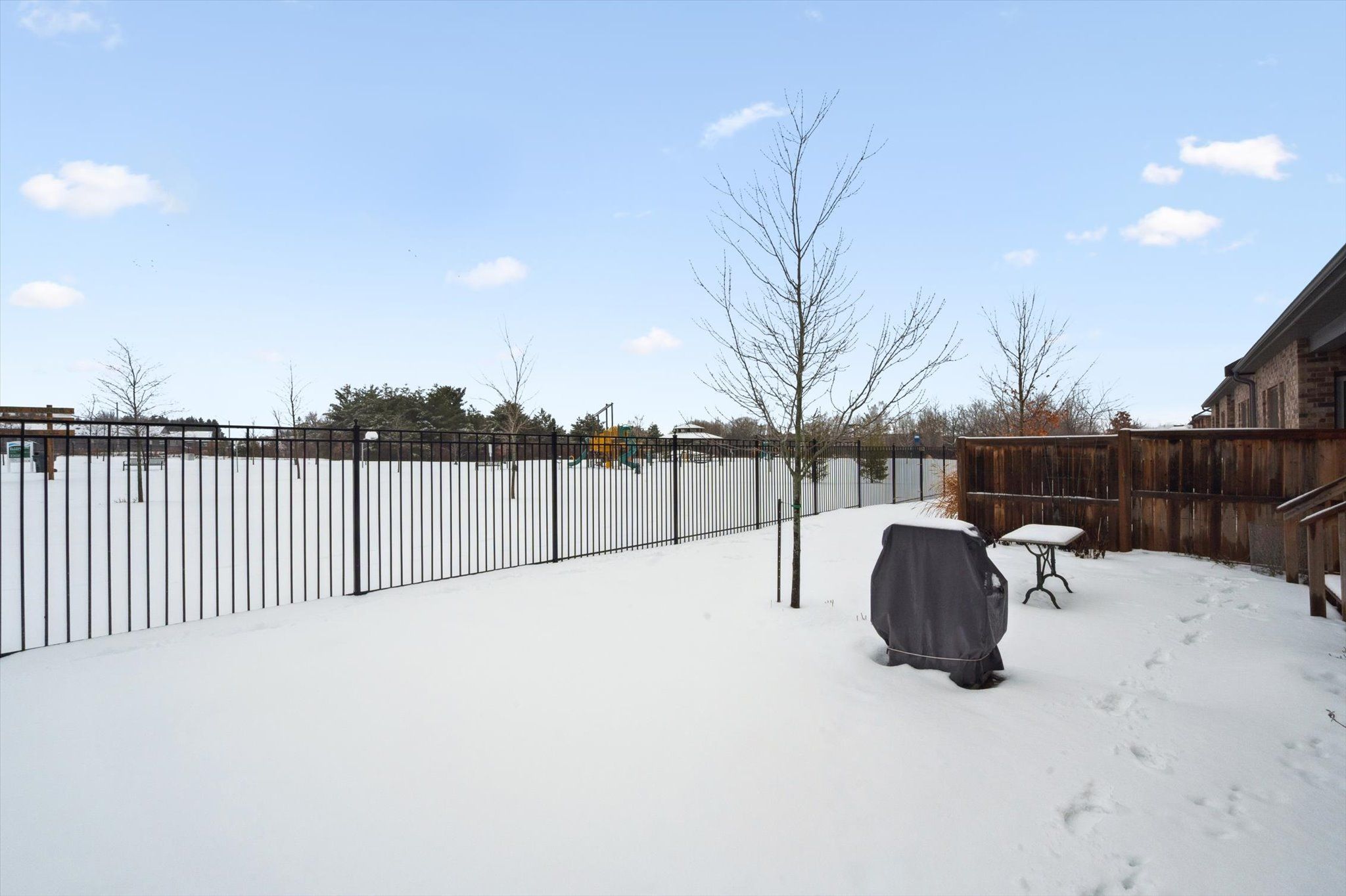 • Patio perfect for relaxing while watching kids play in the park.