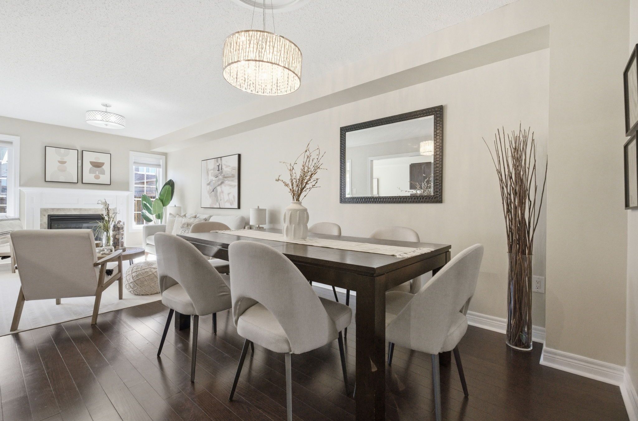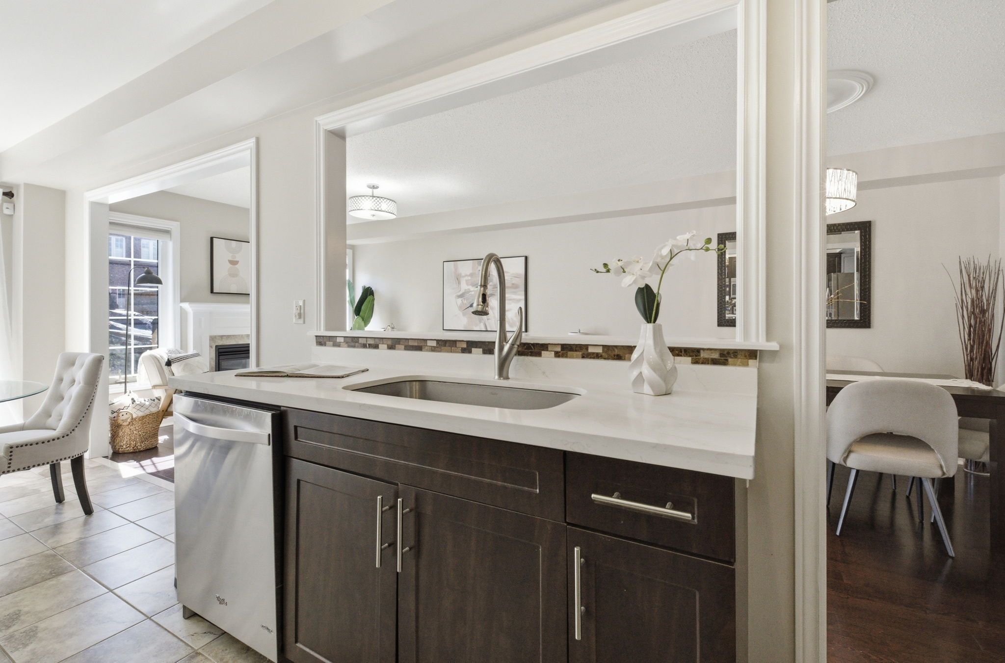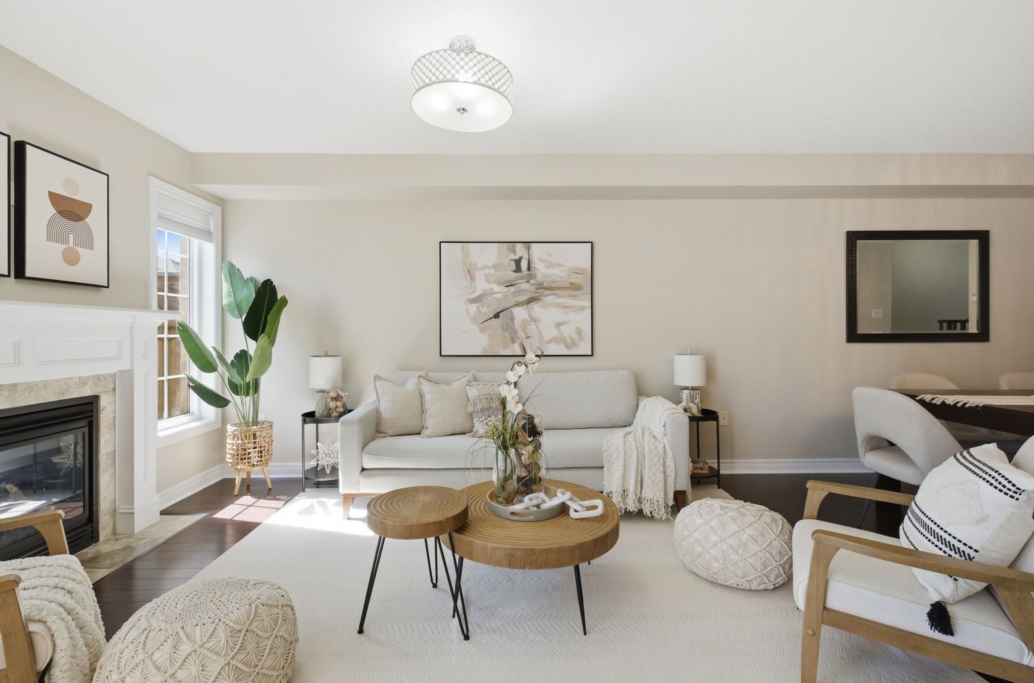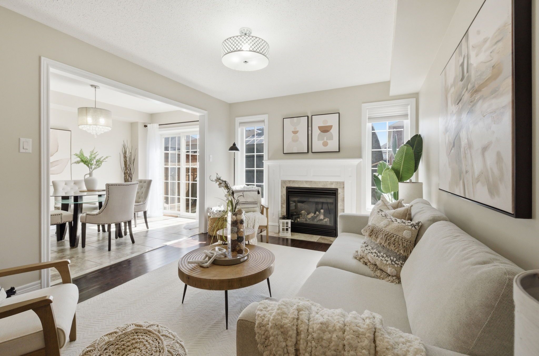 • Open main floor with a cozy fireplace and dedicated dining area.