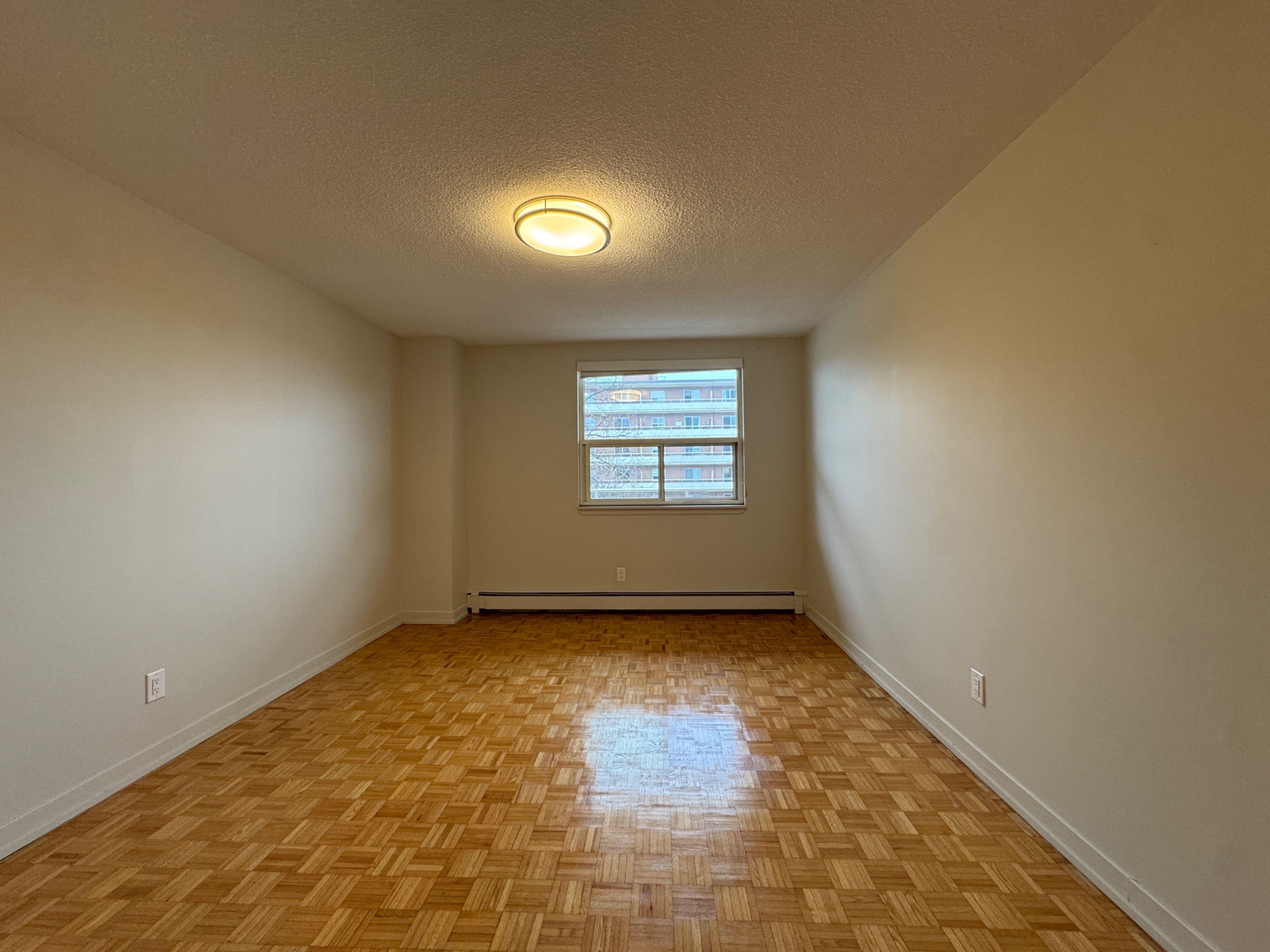 • Updated one-bedroom unit with an open concept living space and balcony.