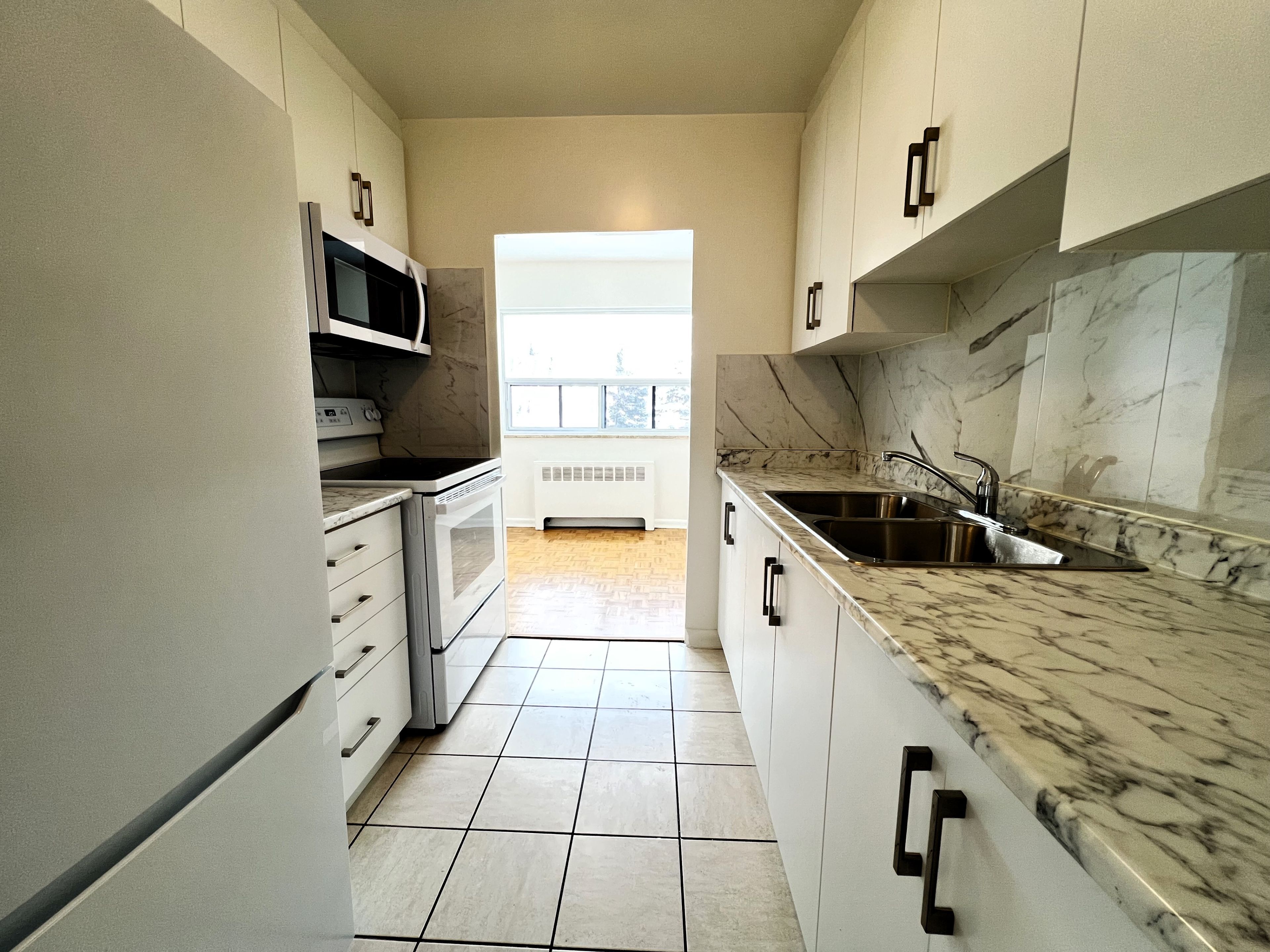 Unbeatable etobicoke location meets updated living in this bright 2-bedroom upper-level suite at 39 leduc dr. Perfectly positioned just off the 401 at islington with seamless access to highways 400, 427, and qew, you are only 10 minutes from pearson airport, woodbine entertainment, and major malls. This ultra-convenient pocket is steps to ttc bus service and a short walk to retail hubs like walmart, costco, lcbo, canadian tire, and grocery stores. This refreshed, carpet-free apartment features its own private balcony-ideal for morning coffee or fresh air. The interior shines with a brand-new kitchen with sleek appliances, a refreshed 4-piece bathroom, fresh paint, and classic parquet floors. A functional layout delivers a true dining area and oversized closets offering rare storage space not found in newer builds. Large windows in every room flood the space with natural light. Perfect for friends or extended family: a second 2-bedroom unit is also available on the lower level of this well-managed building. Rent includes heat and water; hydro is metered separately so you only pay for what you use. On-site coin laundry is available, plus several laundromats are nearby. Optional monthly add-ons (subject to availability): outdoor parking ($135), garage parking ($195), and storage locker ($65). Contact listing agent for current availability. A solid, clean, and well-located etobicoke escape with the balcony perks everyone is chasing.