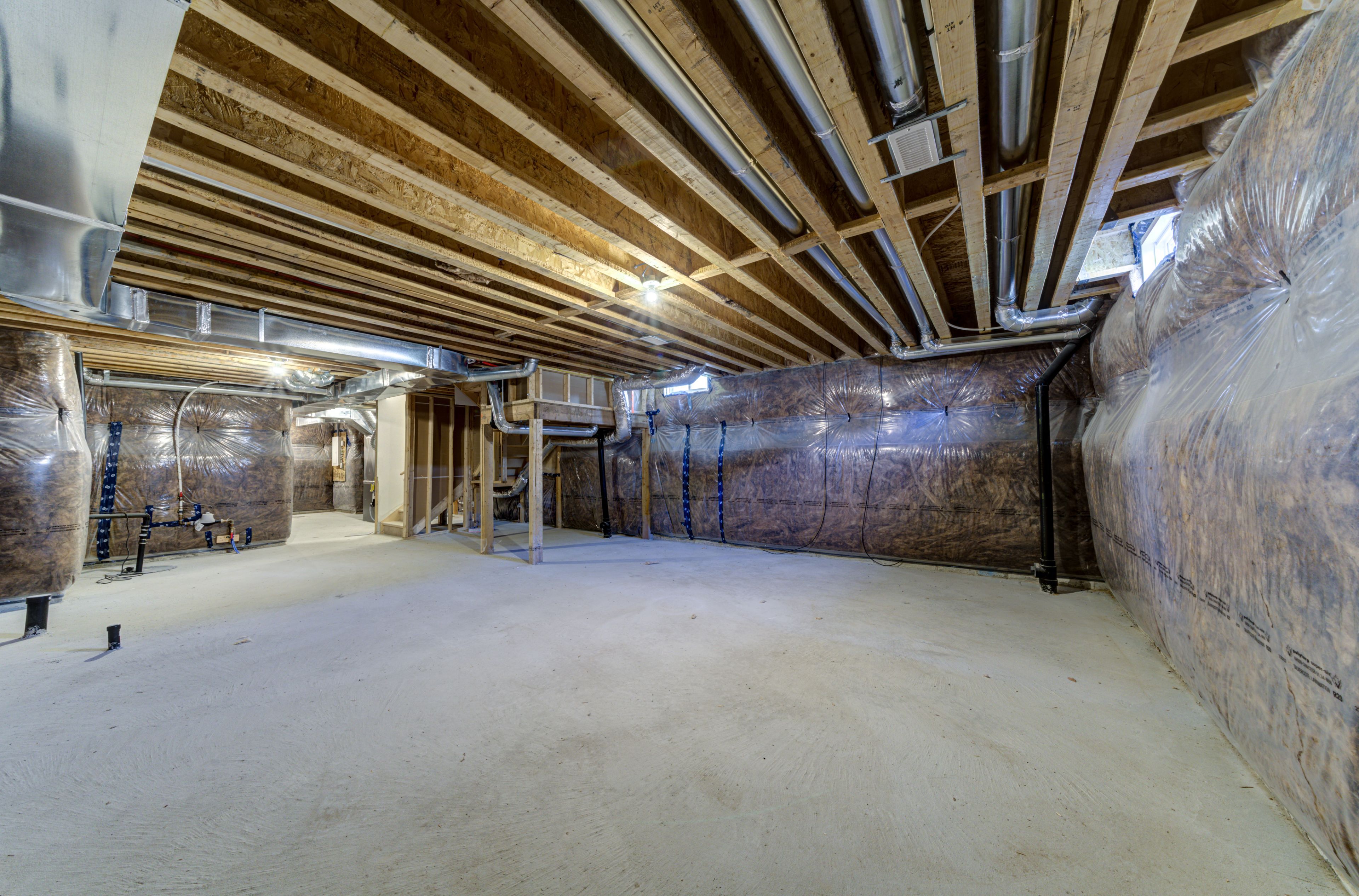 • Unfinished basement with bathroom rough-in for future customization.